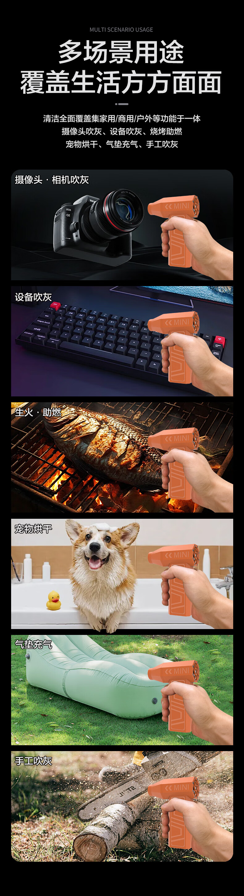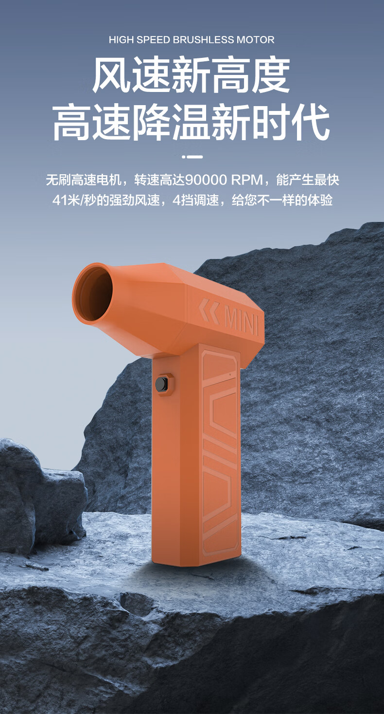 Syouran wireless rechargeable hair dryer dust violent fan turbocharged powerful dust collector handheld car hair dryer dust gun dust blower brushless mini violent small fan violent blower orange