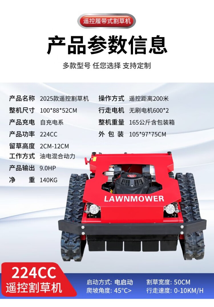 Nongjuyuan 2025 new crawler type off-road all-terrain remote control lawn mower robot automatic weeder hoe lawn mower export version (customized)