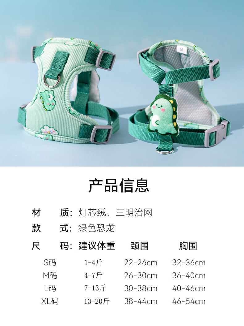 Dog Leash Harness Small Dog Teddy Bichon Pet Vest Type Cat Rope Puppy Dog Walking Rope Dog Chain Green L Code Recommended 7-13 Jin Jin equals 0.5 kg