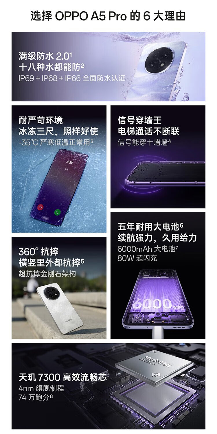 OPPO 15% national subsidy A5 Pro 5G fully waterproof signal wall penetration 360 anti-fall 6000mAh five-year durable large battery 5G smartphone rock black 8+256GB official standard configuration