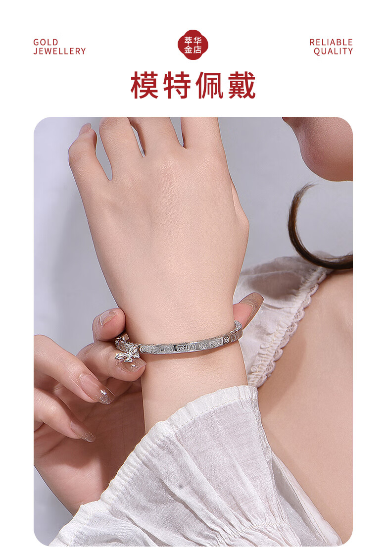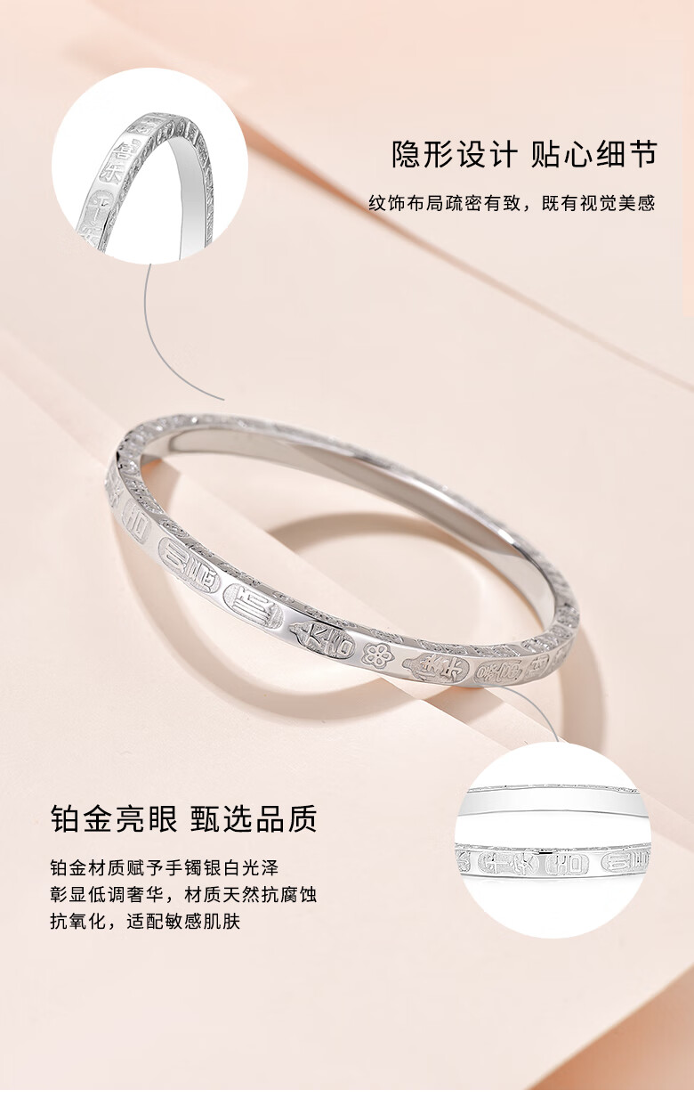 Cuihua pt950 platinum auspicious words bracelet platinum simple and versatile bracelet as a birthday gift for girlfriend and wife platinum auspicious words bracelet about 31g #58