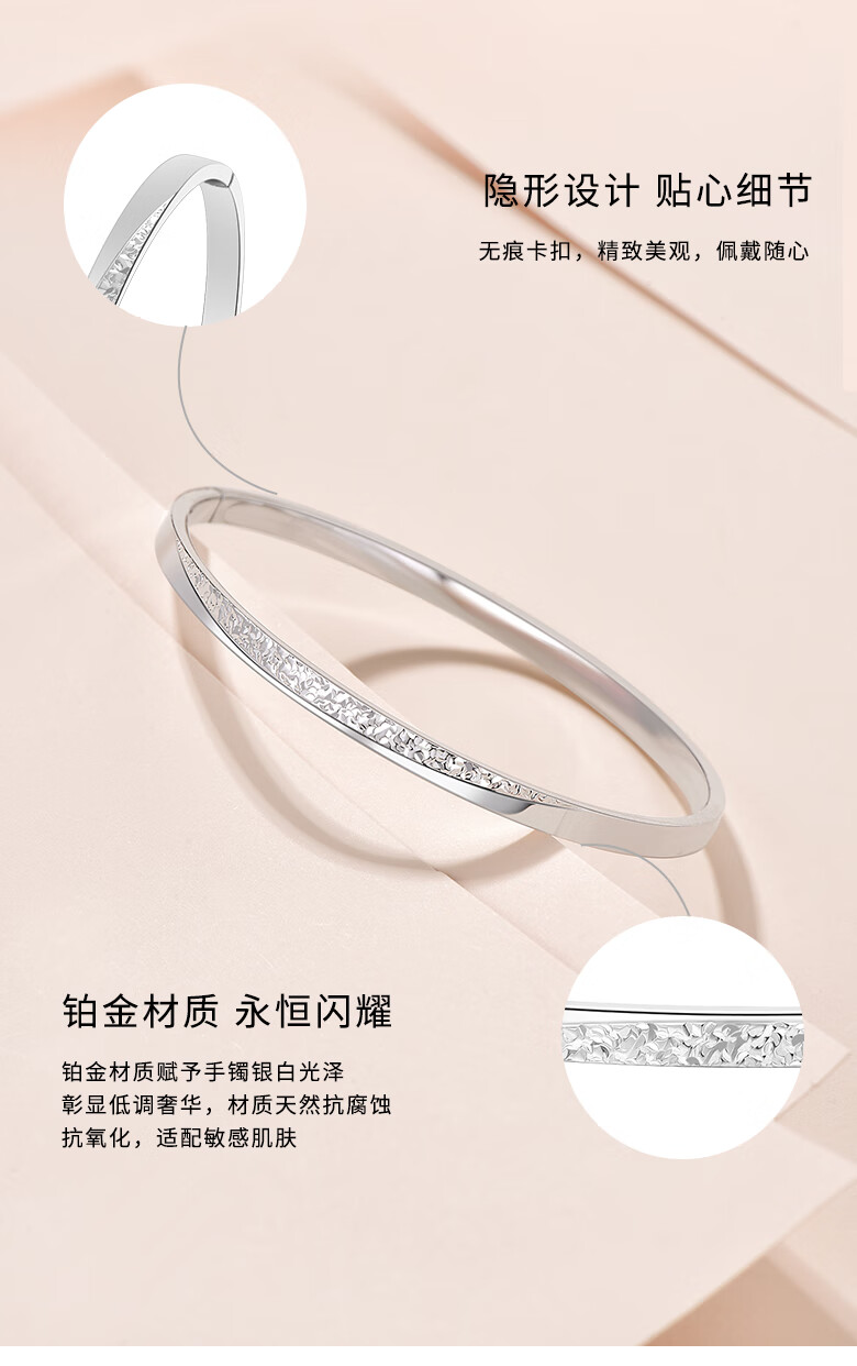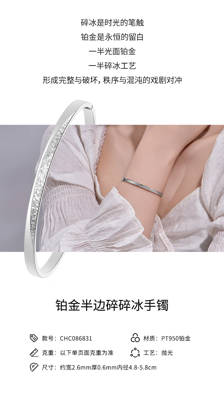 Cuihua pt950 platinum crushed ice bracelet women's invisible bayonet bracelet for girlfriend and wife's birthday gift platinum crushed ice bracelet about 12g