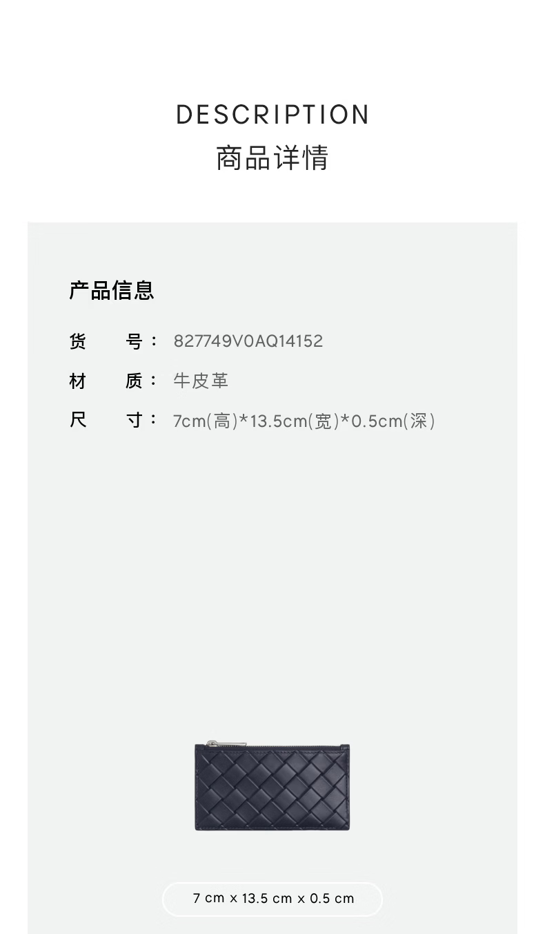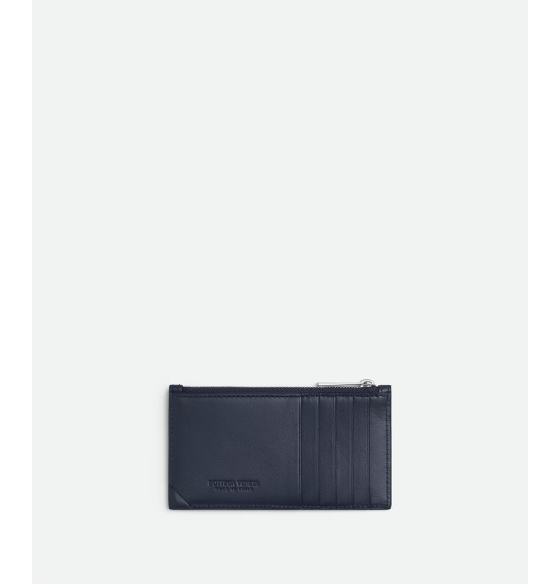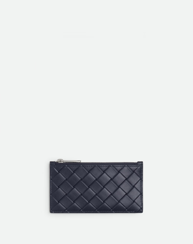 Bottega Veneta BV gift new men's STAMP woven zipper card holder for boyfriend, deep blue, one size fits all