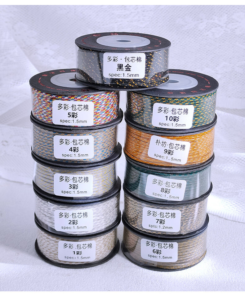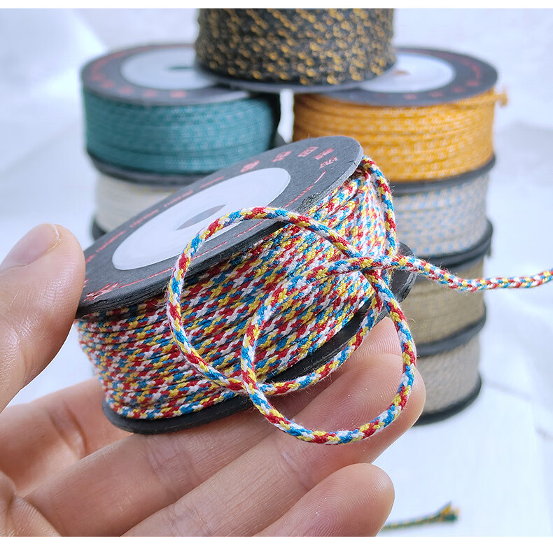 Veena silk colorful cotton rope play thread Bodhi rope core-spun cotton bracelet rope bracelet rope braided rope bracelet thread Pufang black gold/1.5mm/about 14 meters 1 roll