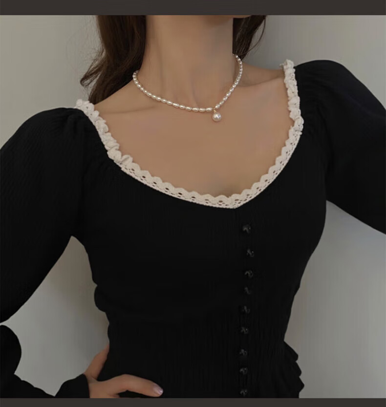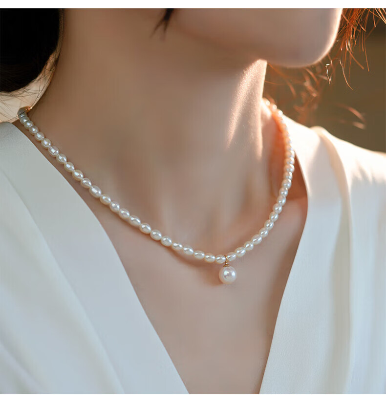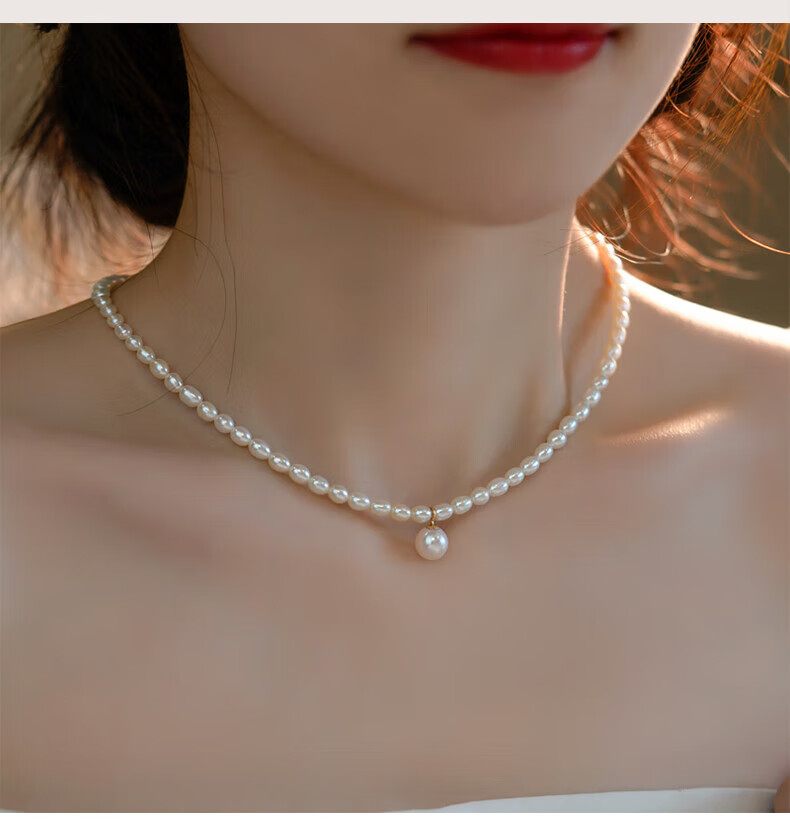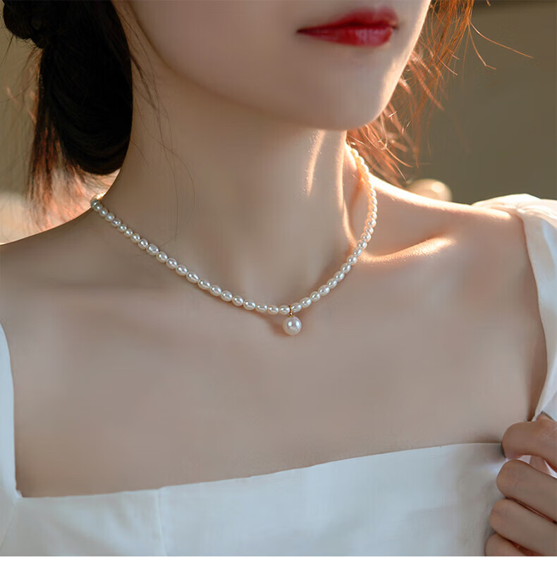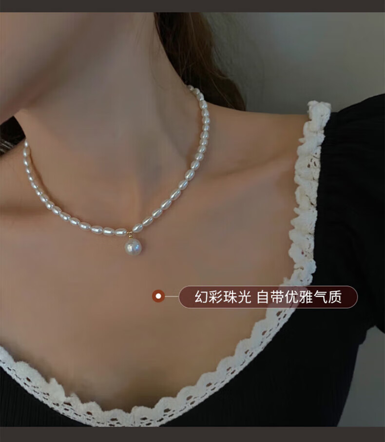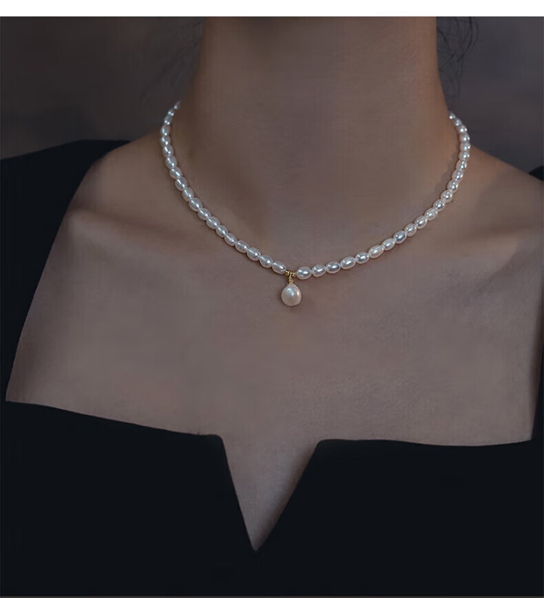 COULN KIN Freshwater Pearl Necklace Young Women Fashion Light Luxurious New Pendant Birthday Valentine's Day Gift for Girlfriend Simple Freshwater Pearl Necklace