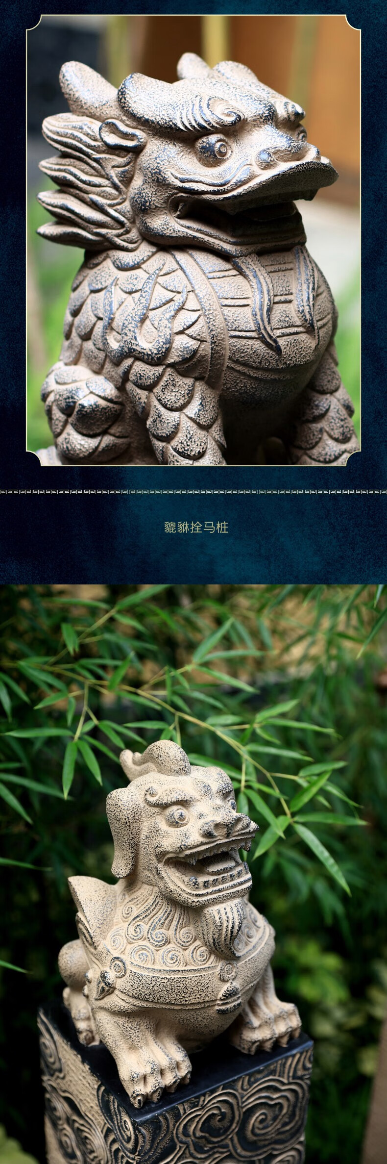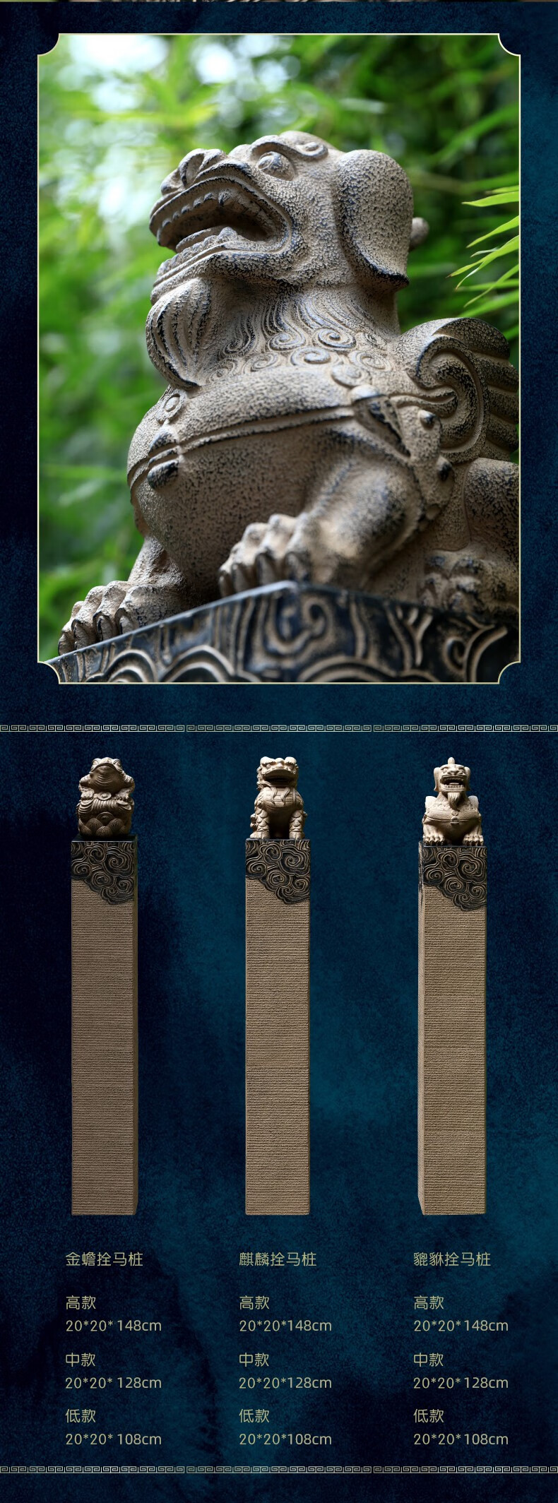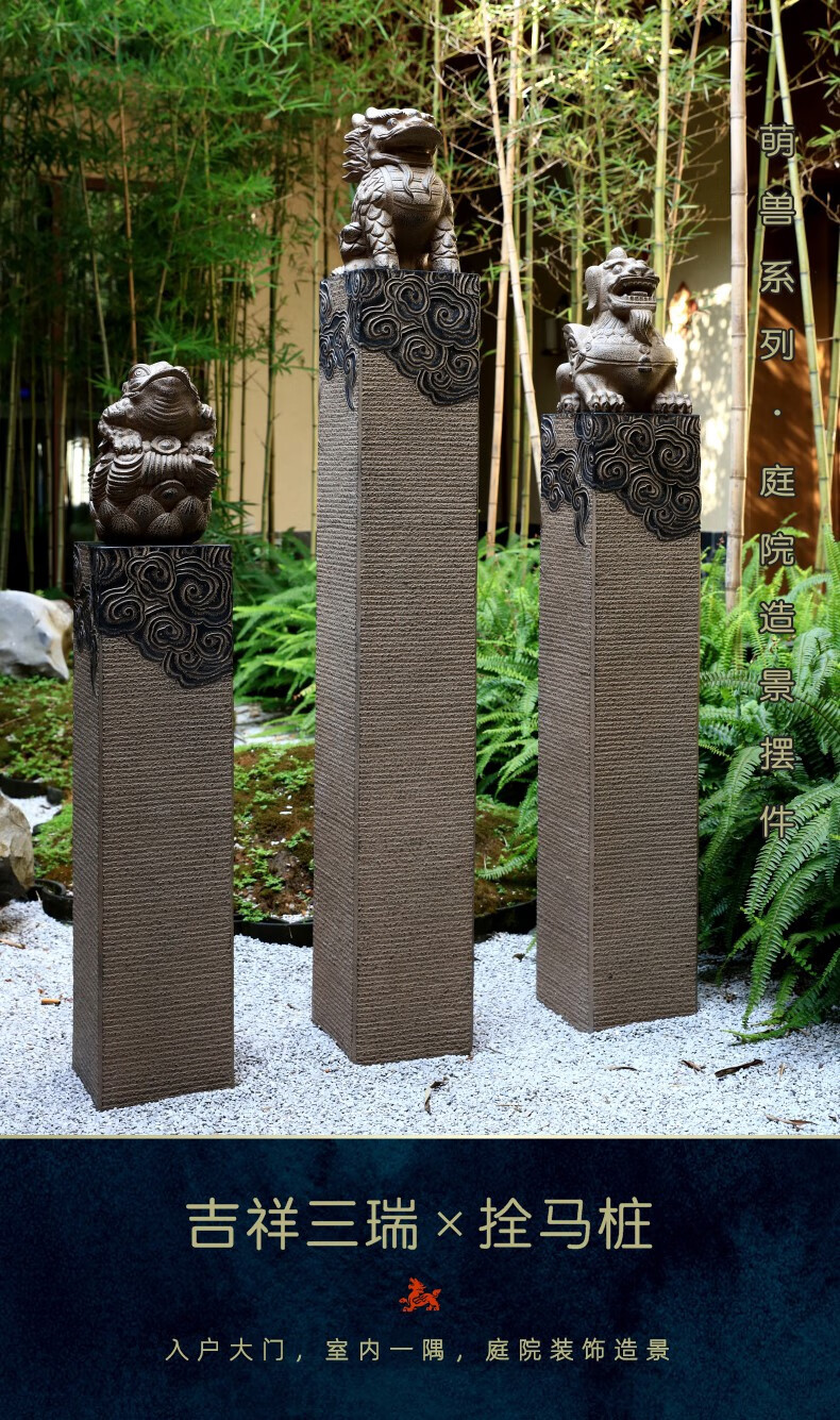 Horse-tethering stake stone carving Pixiu antique horse-tethering pillar Kirin door ornaments courtyard garden layout landscaping decorative column Kirin 108cm