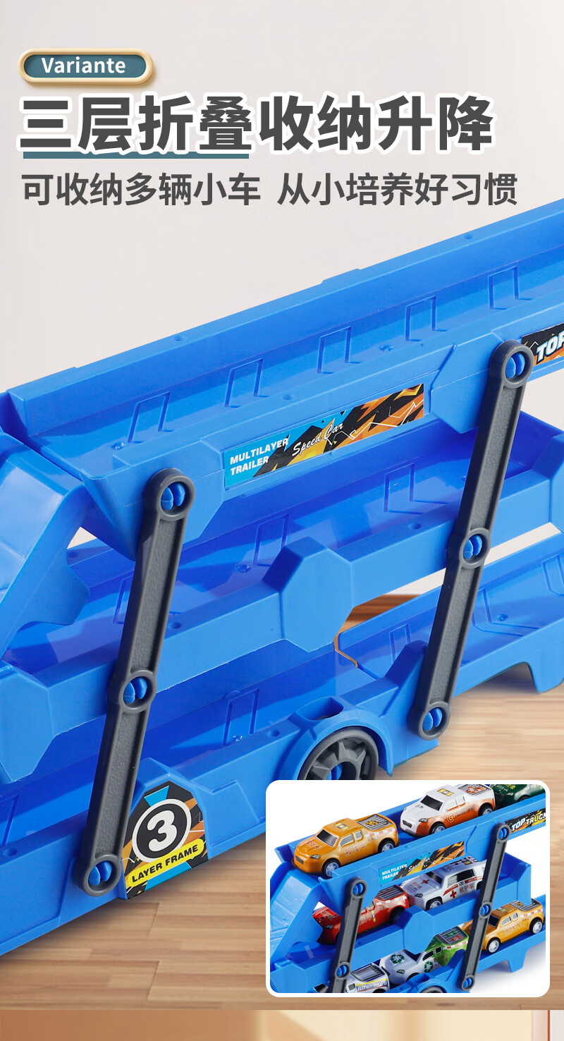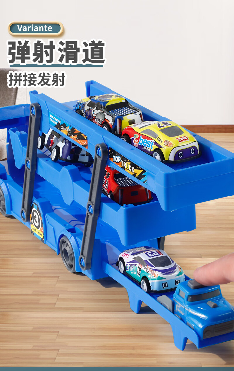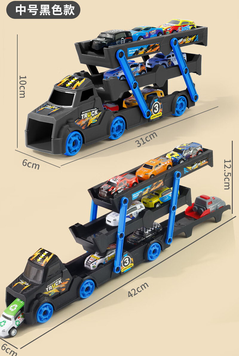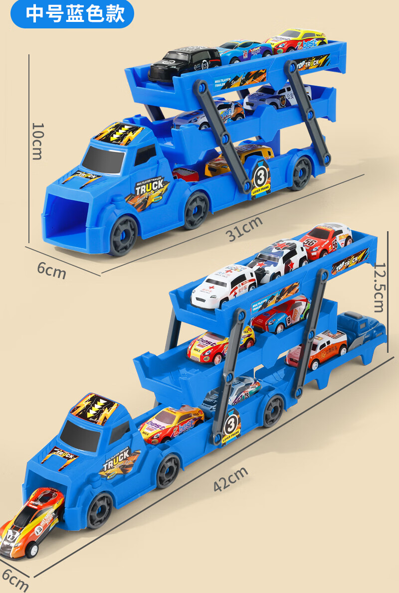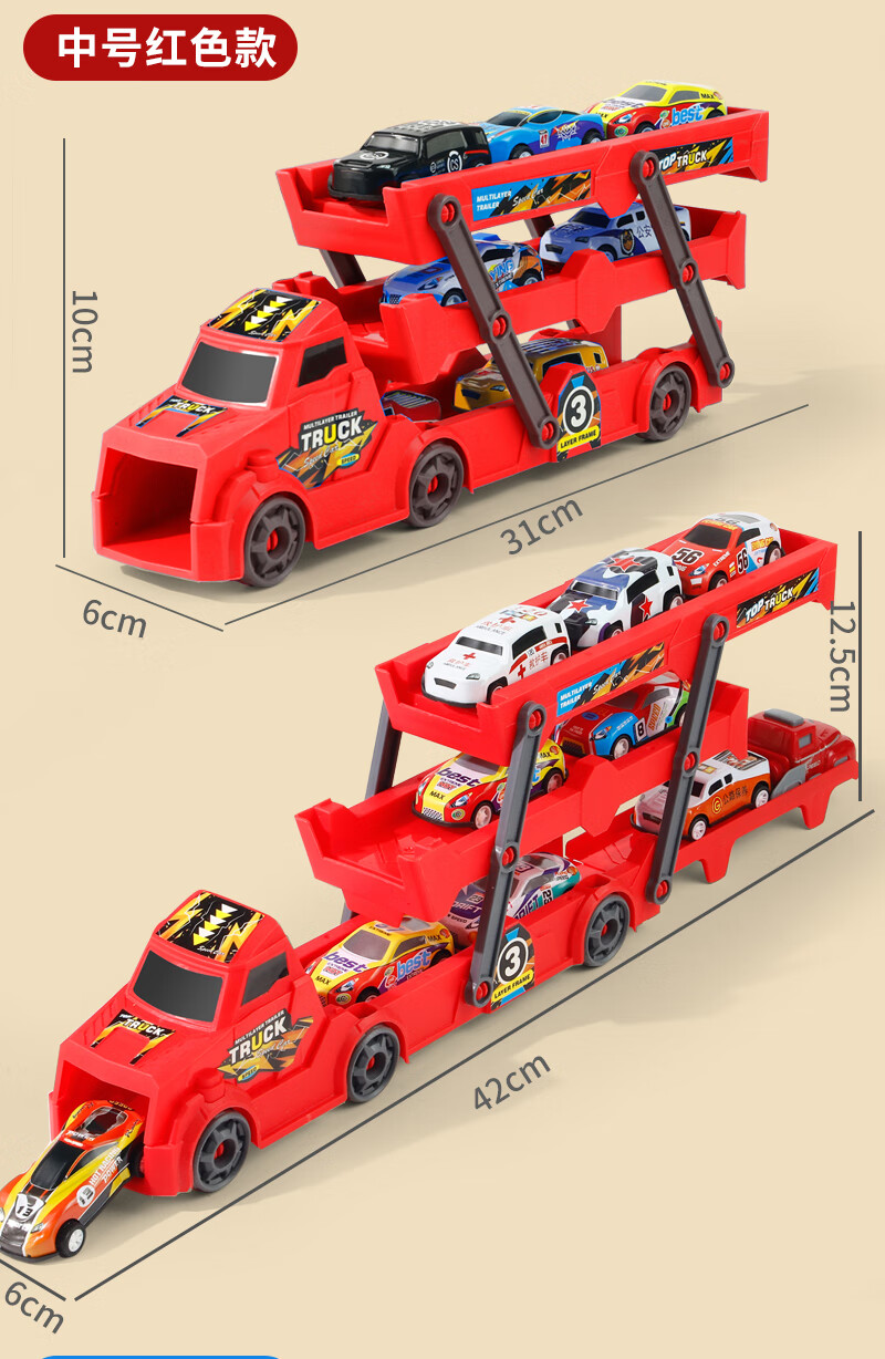 Bei Zhilu children's toy car boy inertia trailer transport large truck 3 to 6 years old baby track ejection alloy car a 42CM medium red three-layer ejection car +18