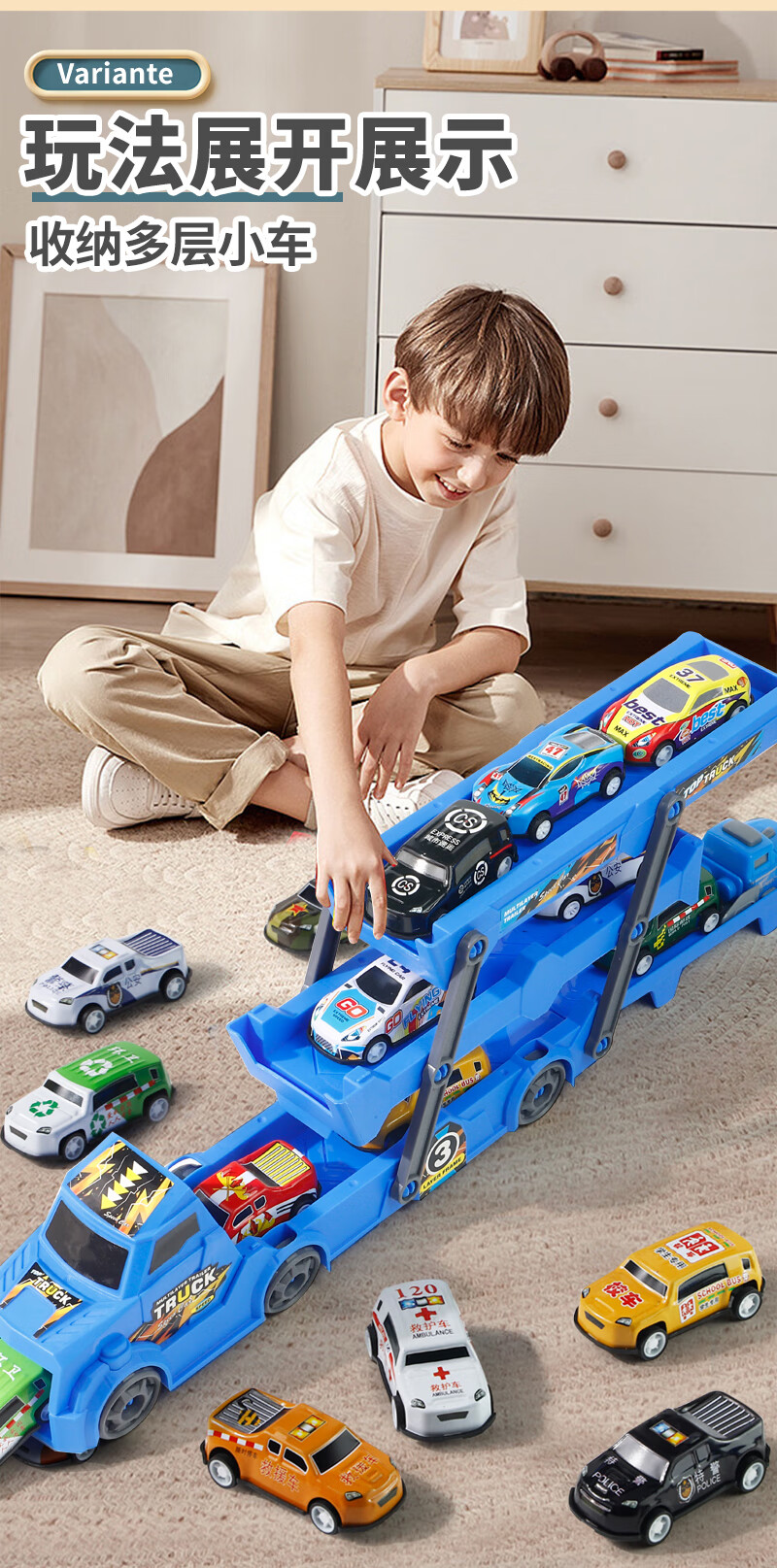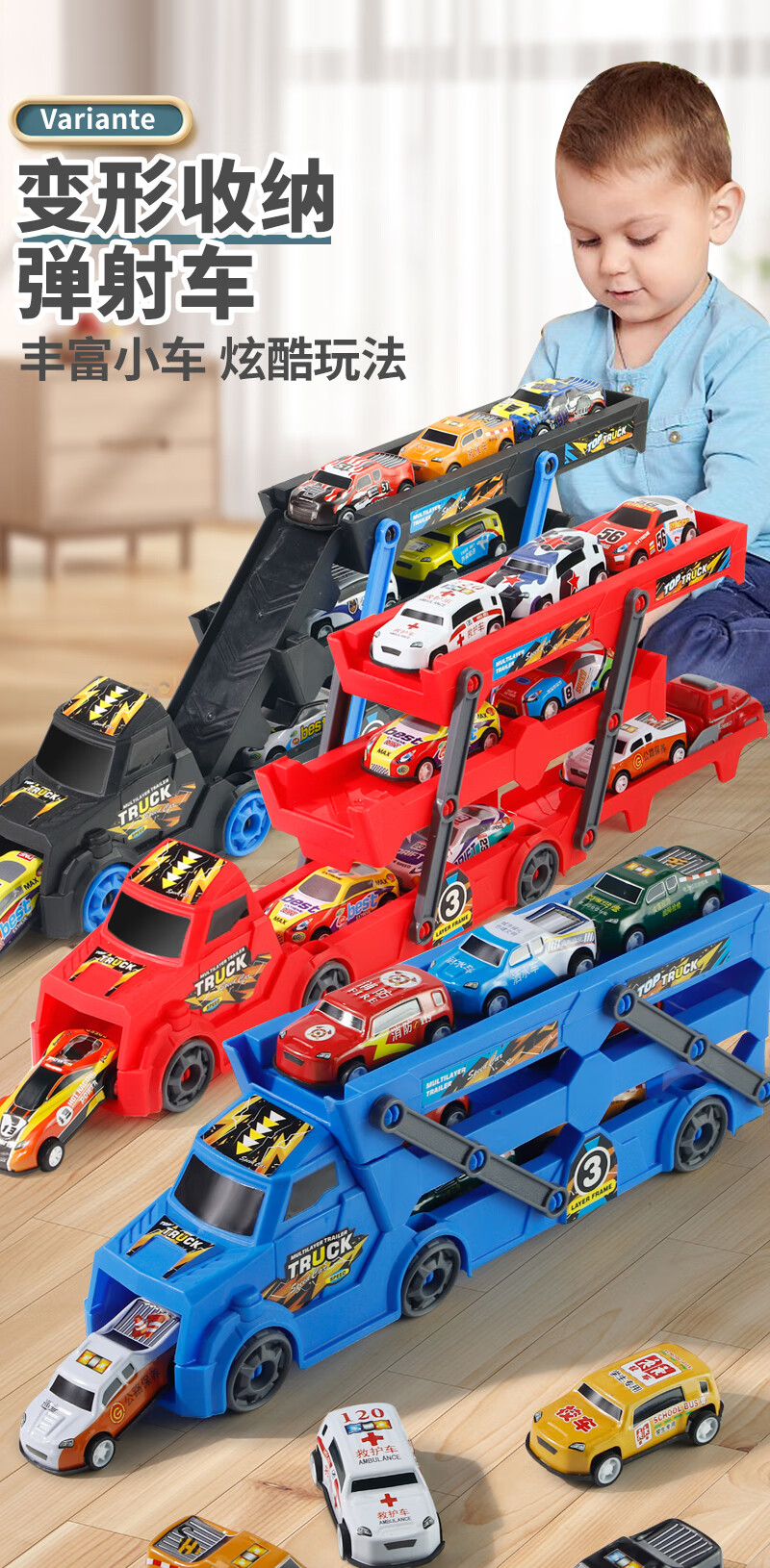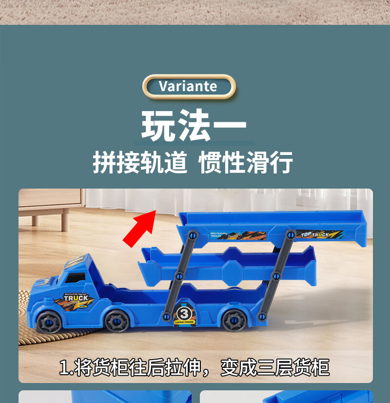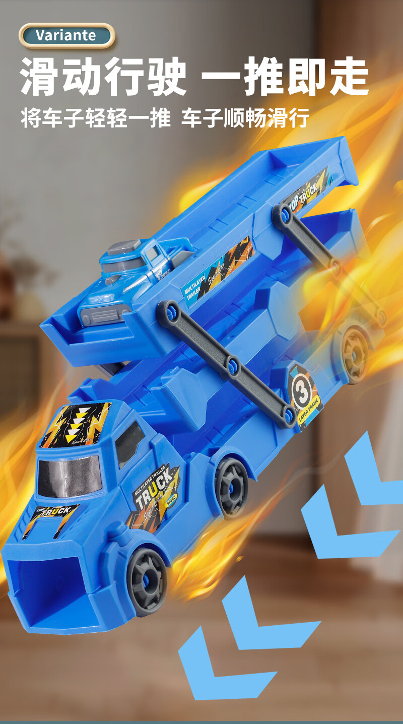 Bei Zhilu children's toy car boy inertia trailer transport large truck 3 to 6 years old baby track ejection alloy car a 42CM medium red three-layer ejection car +18