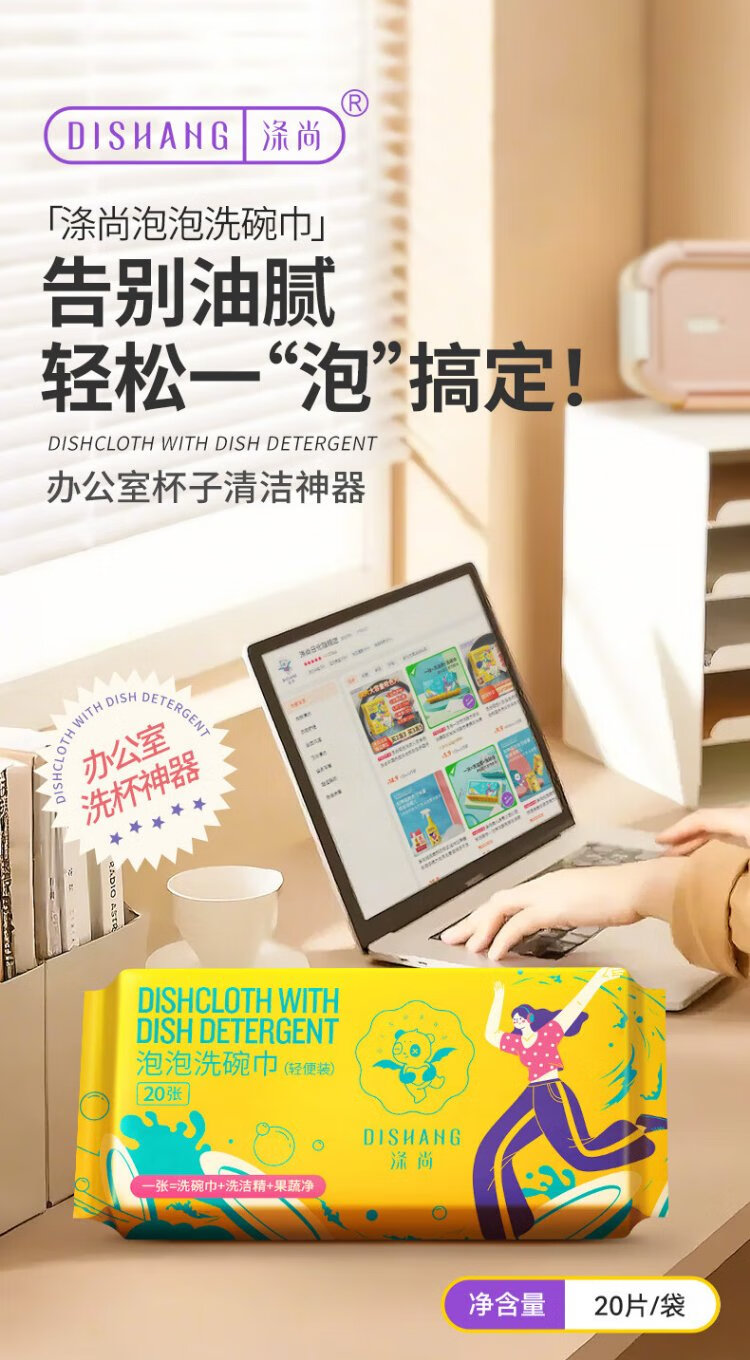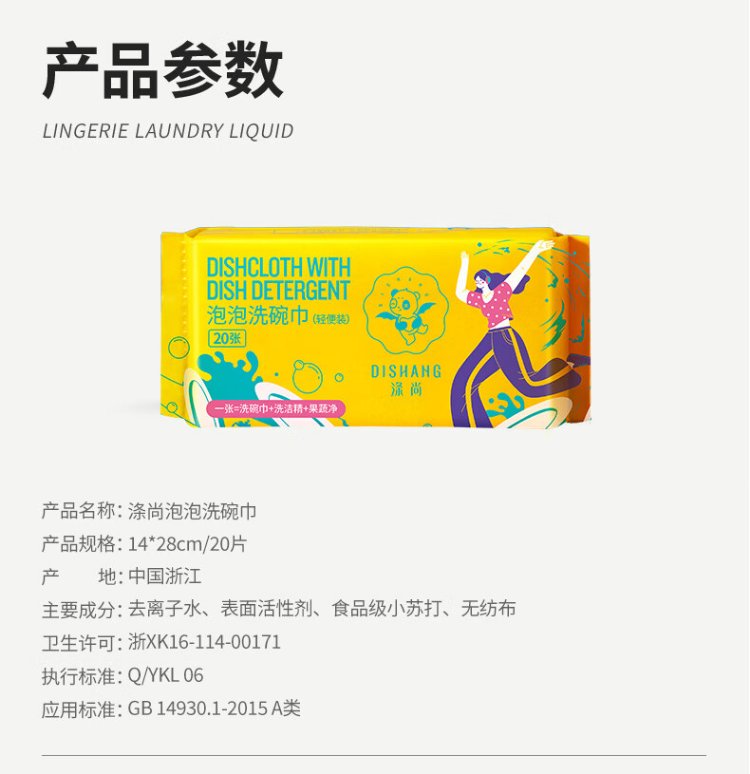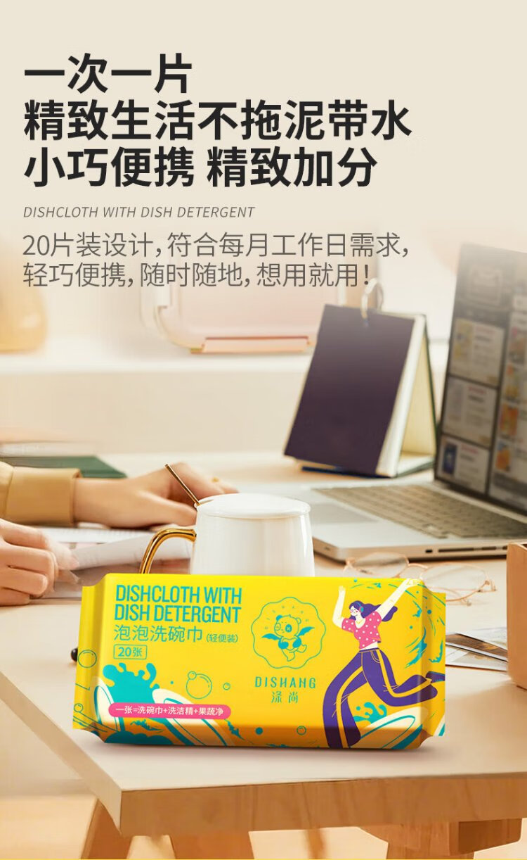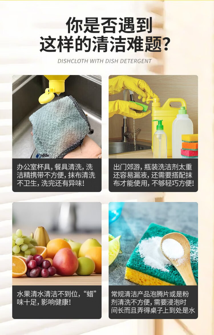 Dishang Disposable Dish Towel with Dishwashing Liquid Office Bubble Cleaning Towel Portable Dishwashing Liquid Tissue Rag Pro, 65g Thickened, 3 Packs/Total 60 Tablets
