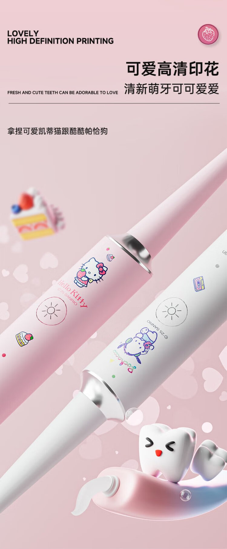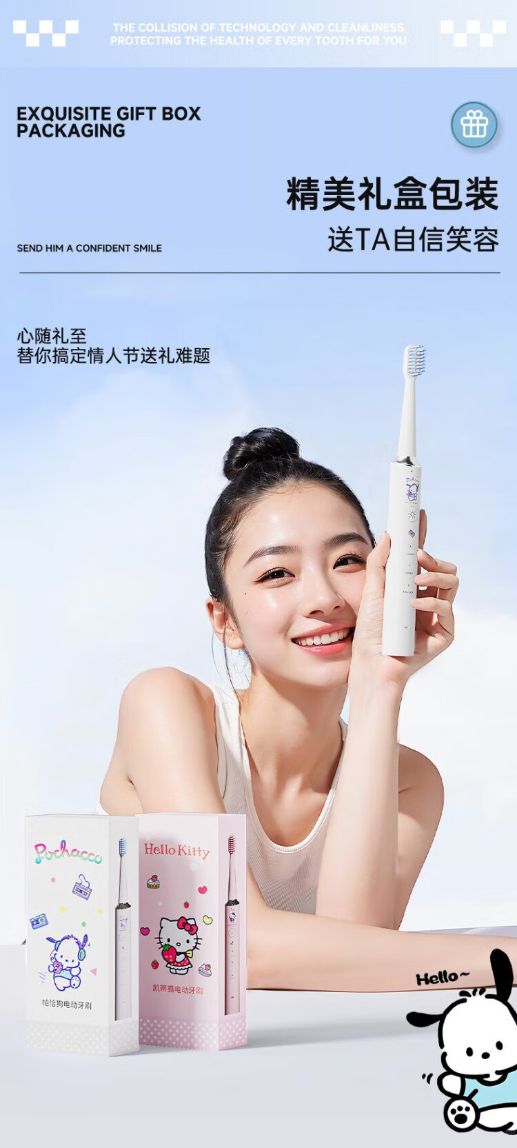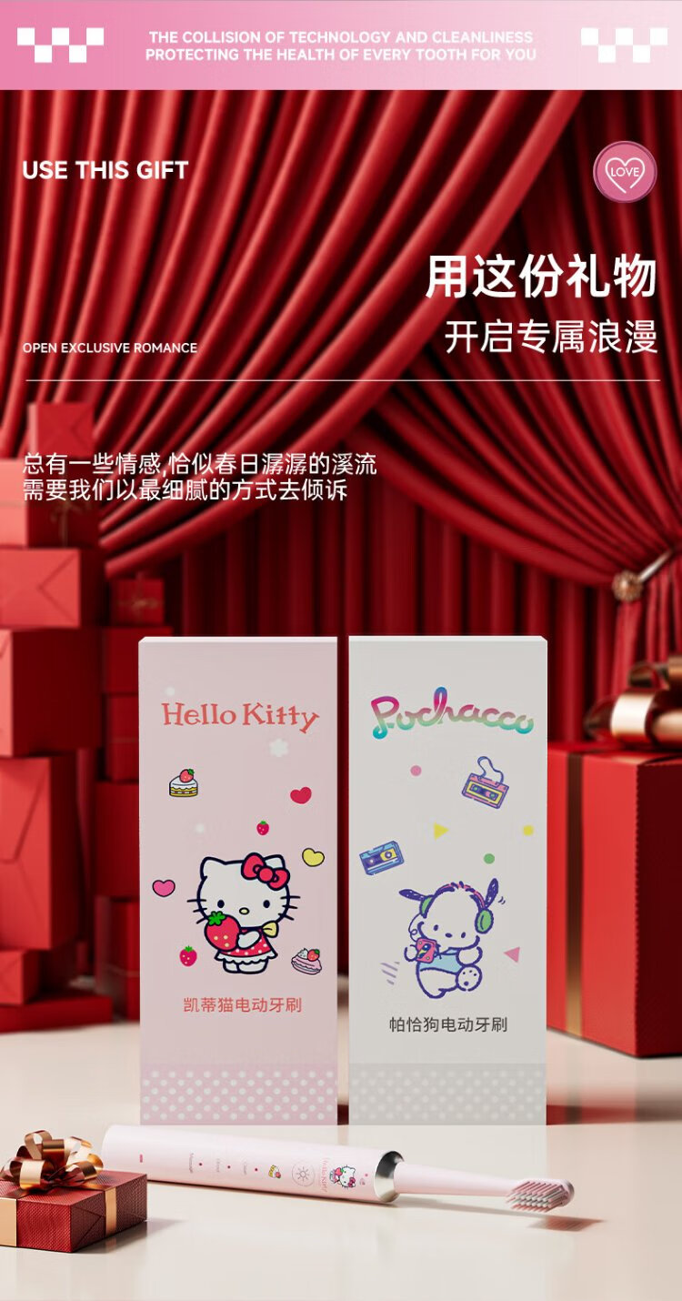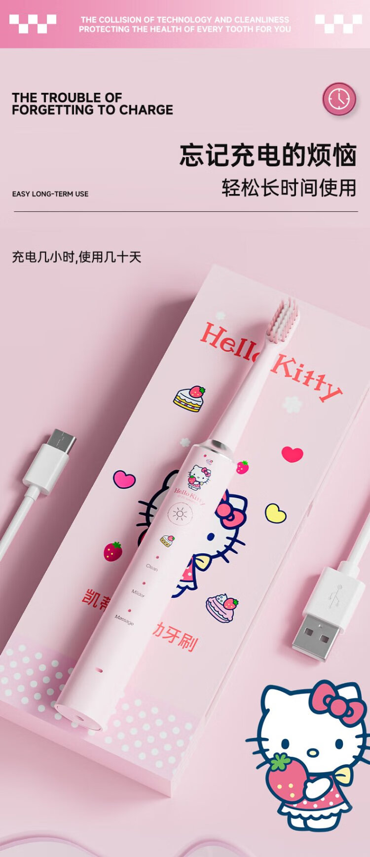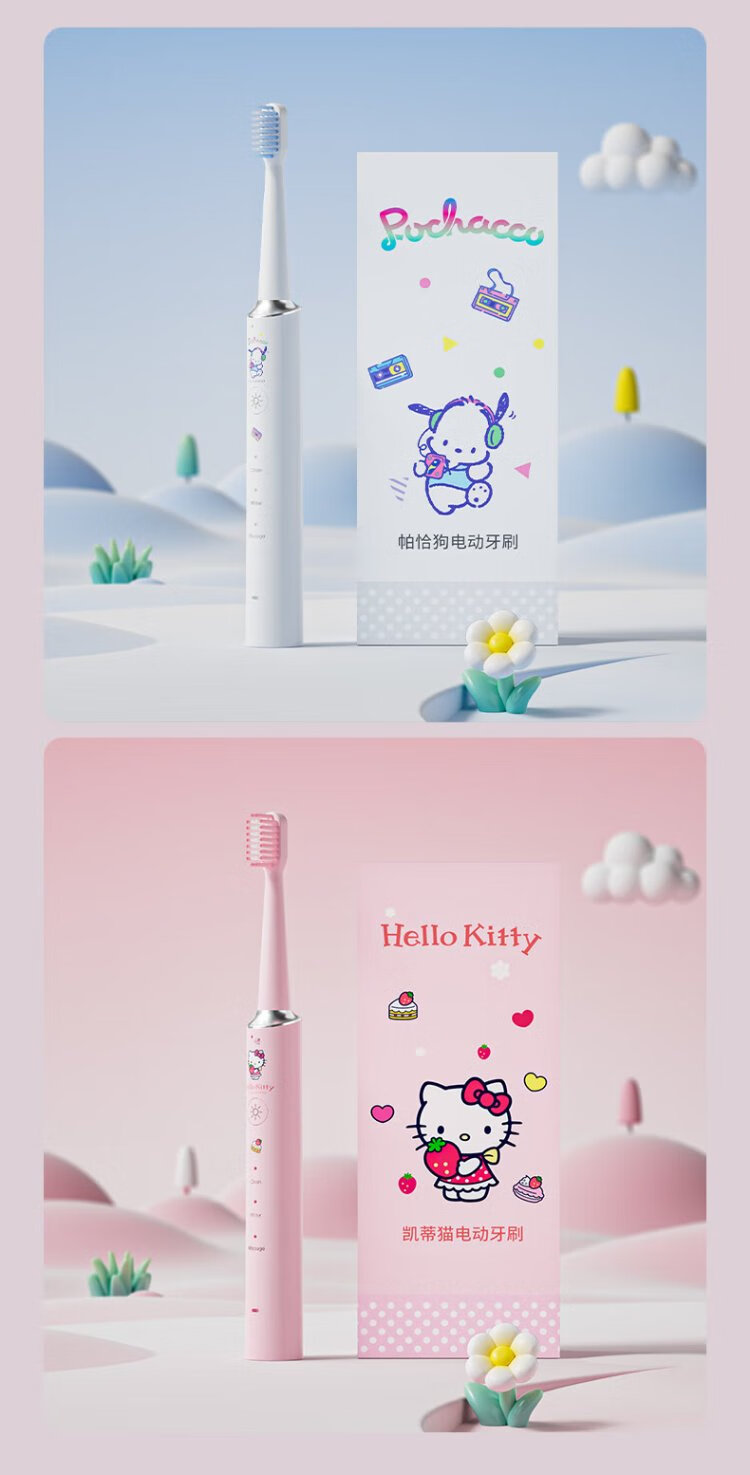 Sanrio Electric Toothbrush Ultrasonic Vibration Hello Kitty Waterproof USB Rechargeable Multi-Function Soft-Bristled Toothbrush Christmas Gift for Girlfriends Birthday Gift Adult Couple Model Pacha Dog Cartoon Color Box Intelligent Timing + Free 4 Brush Heads