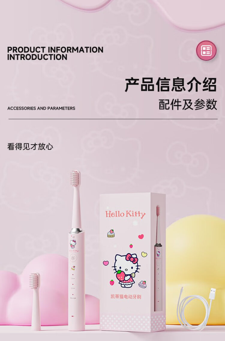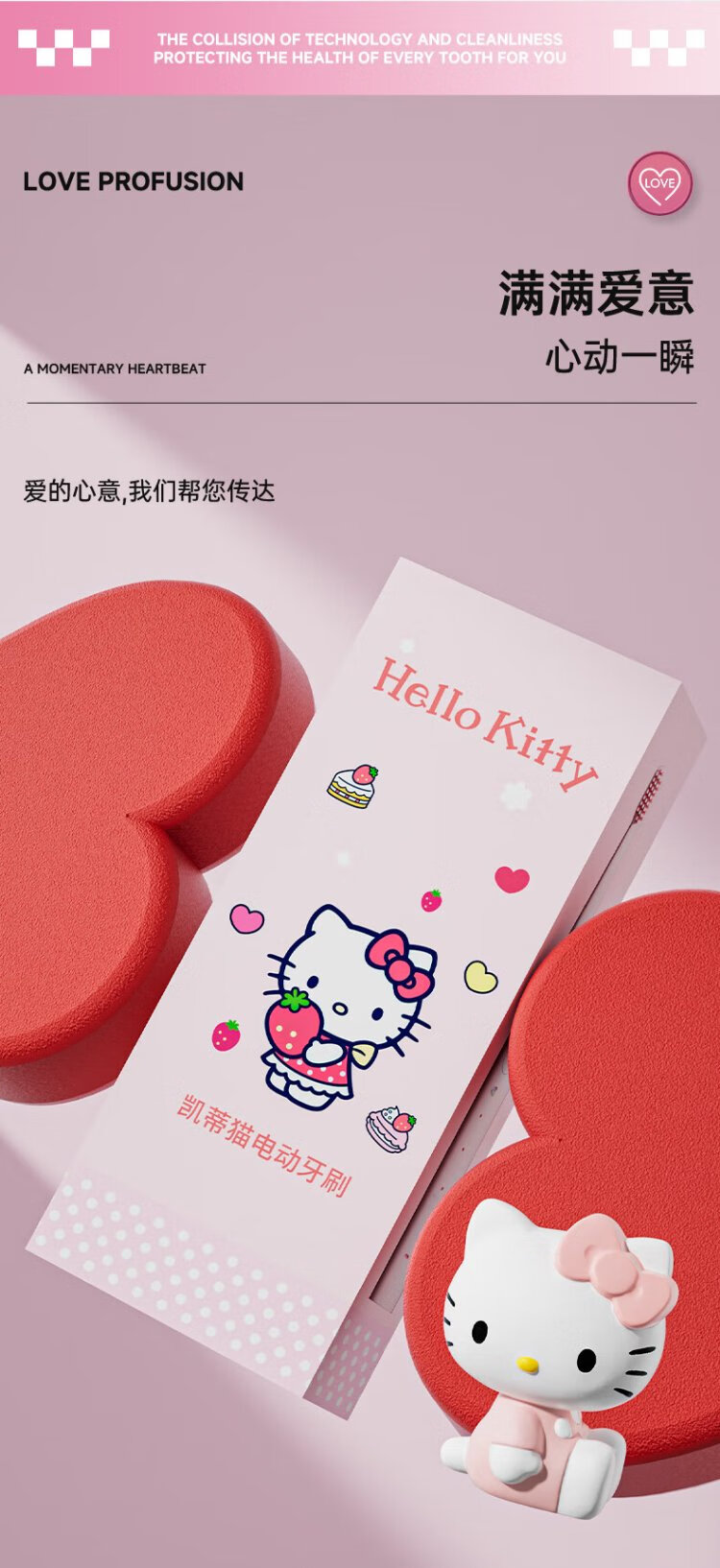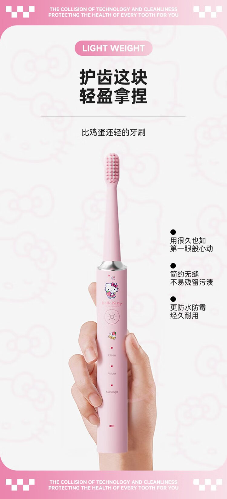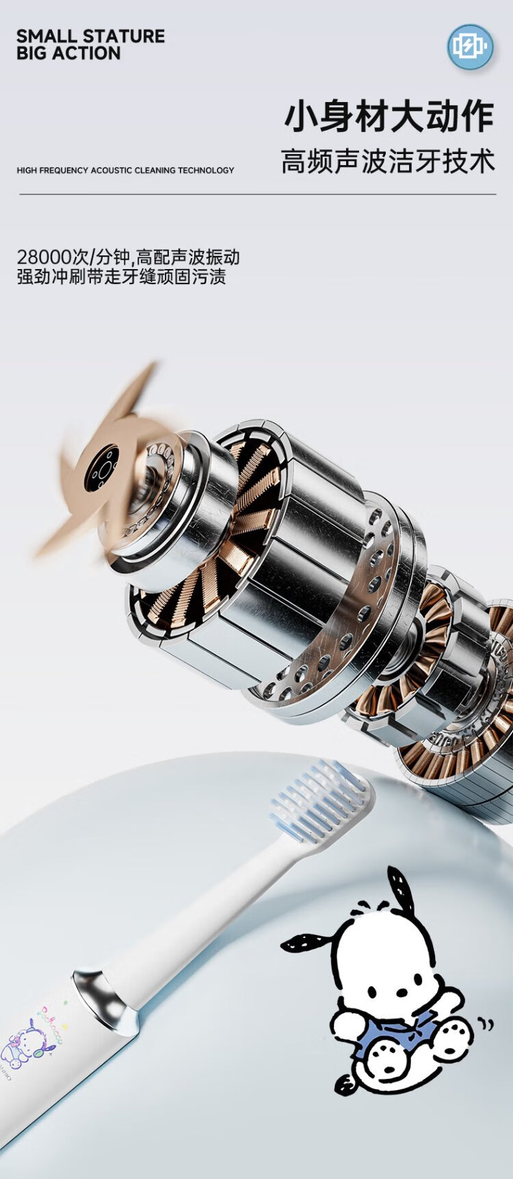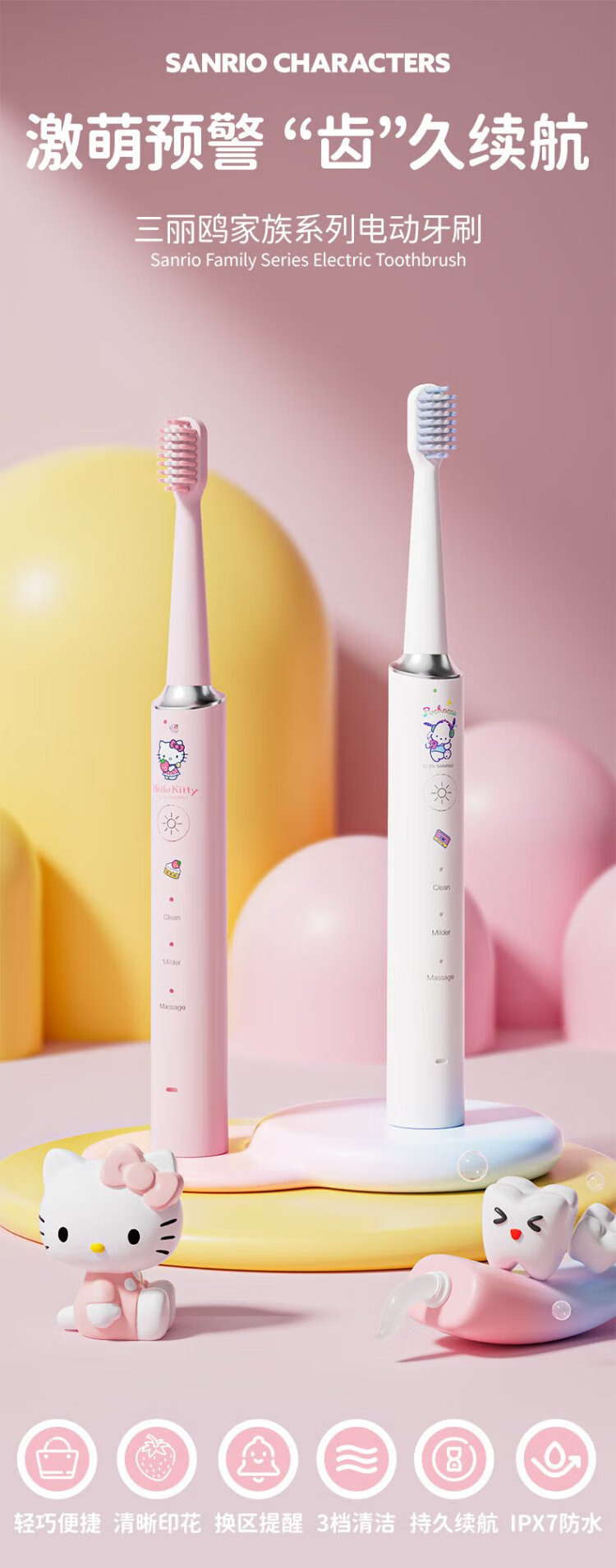 Sanrio Electric Toothbrush Ultrasonic Vibration Hello Kitty Waterproof USB Rechargeable Multi-Function Soft-Bristled Toothbrush Christmas Gift for Girlfriends Birthday Gift Adult Couple Model Pacha Dog Cartoon Color Box Intelligent Timing + Free 4 Brush Heads