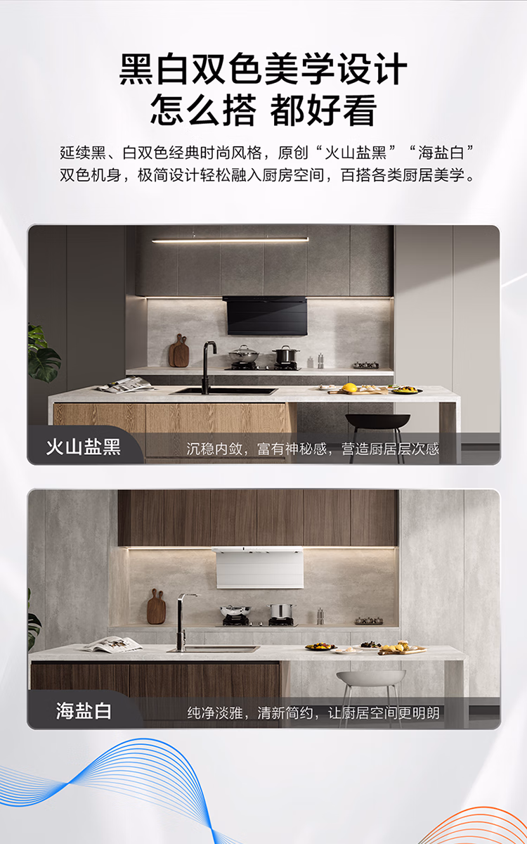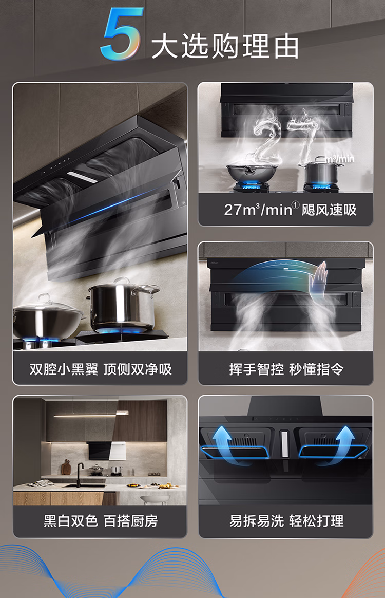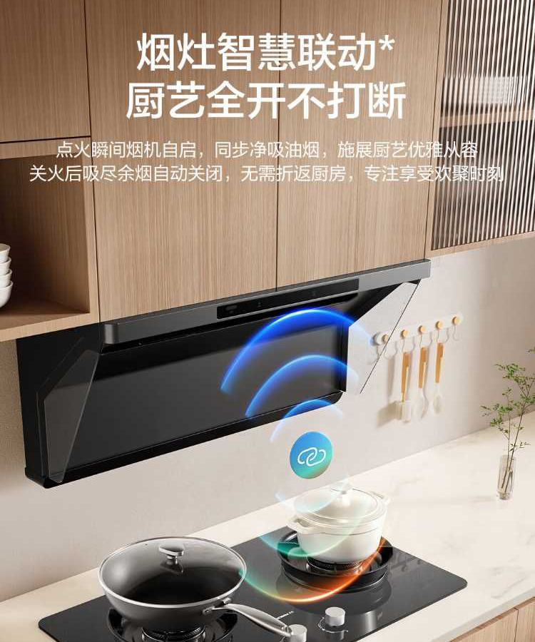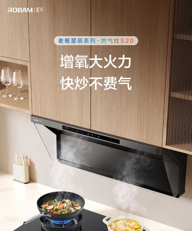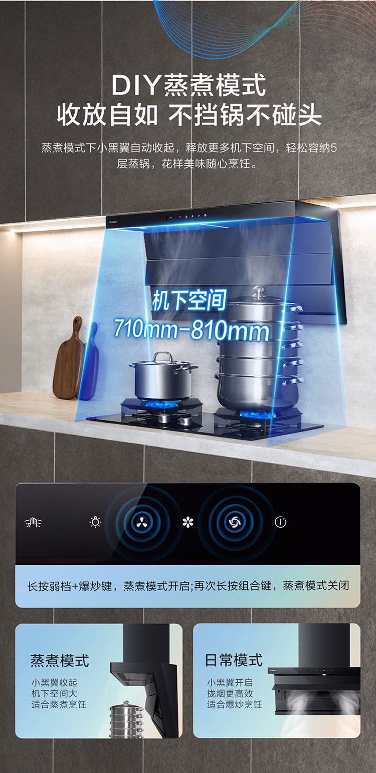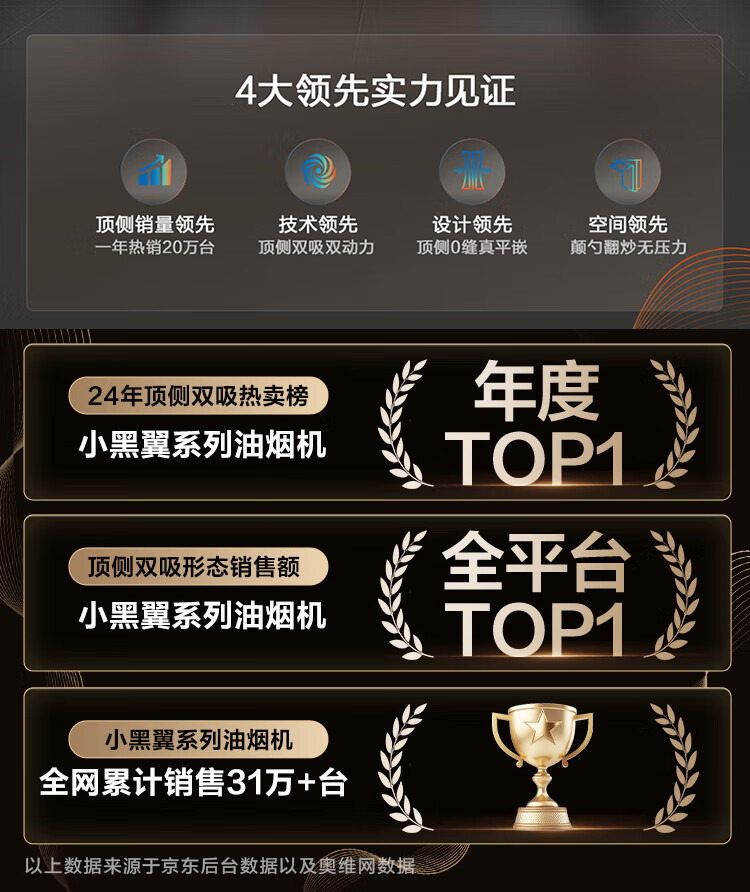 Robam range hood, small black wing upgraded model, juneng suction D1P, top side double suction 27 cubic meters large suction range hood gas stove set 7-shaped range hood (single hood) national subsidy 20%