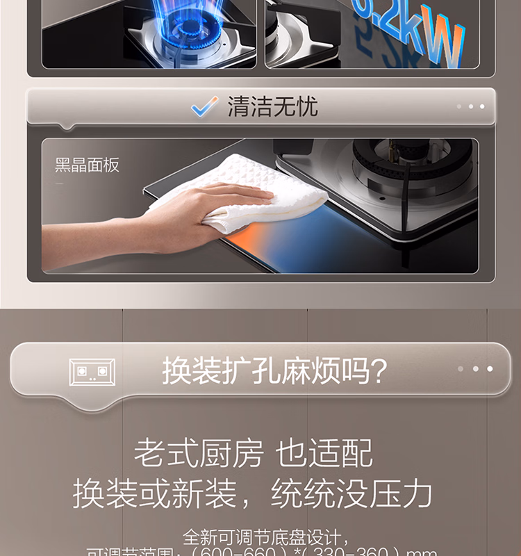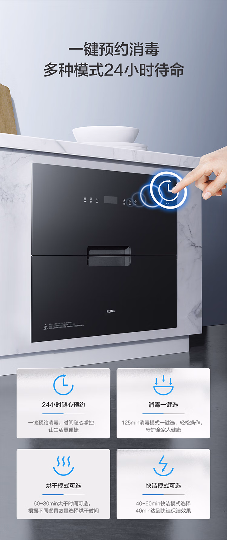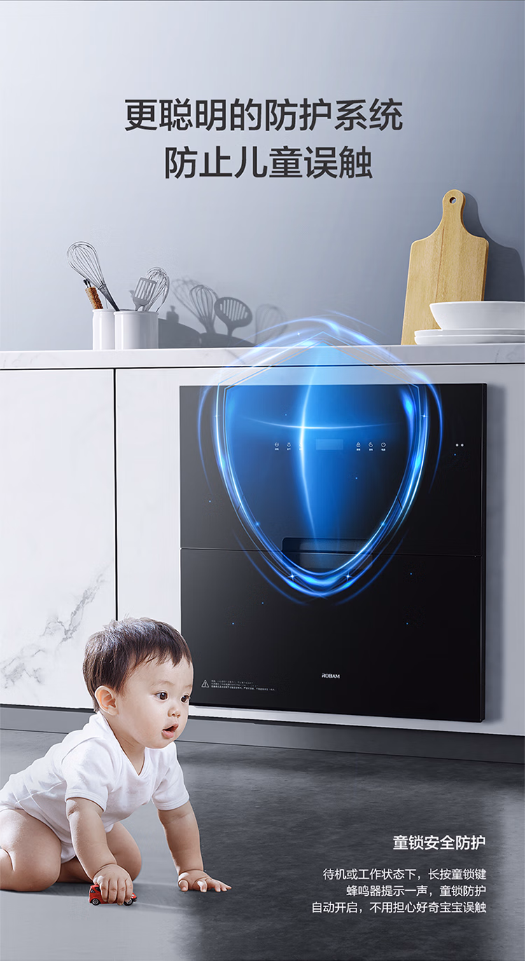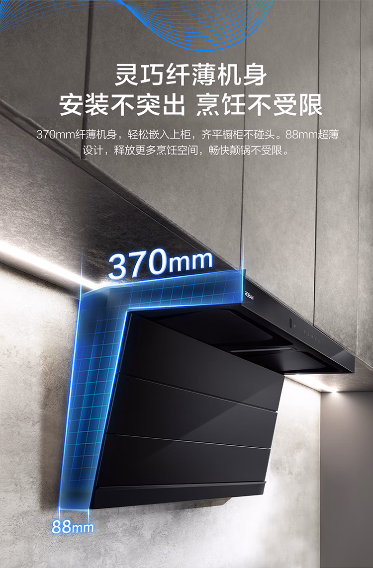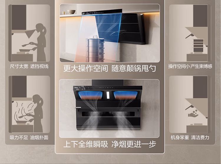 Robam range hood, small black wing upgraded model, juneng suction D1P, top side double suction 27 cubic meters large suction range hood gas stove set 7-shaped range hood (single hood) national subsidy 20%