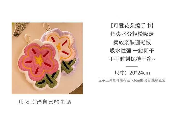 Cute rich hand towel hanging thick embroidered water-absorbent and quick-drying home bathroom kitchen handkerchief rich money hand towel 2 pack