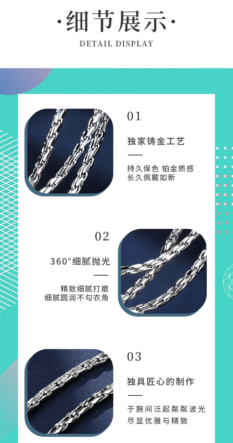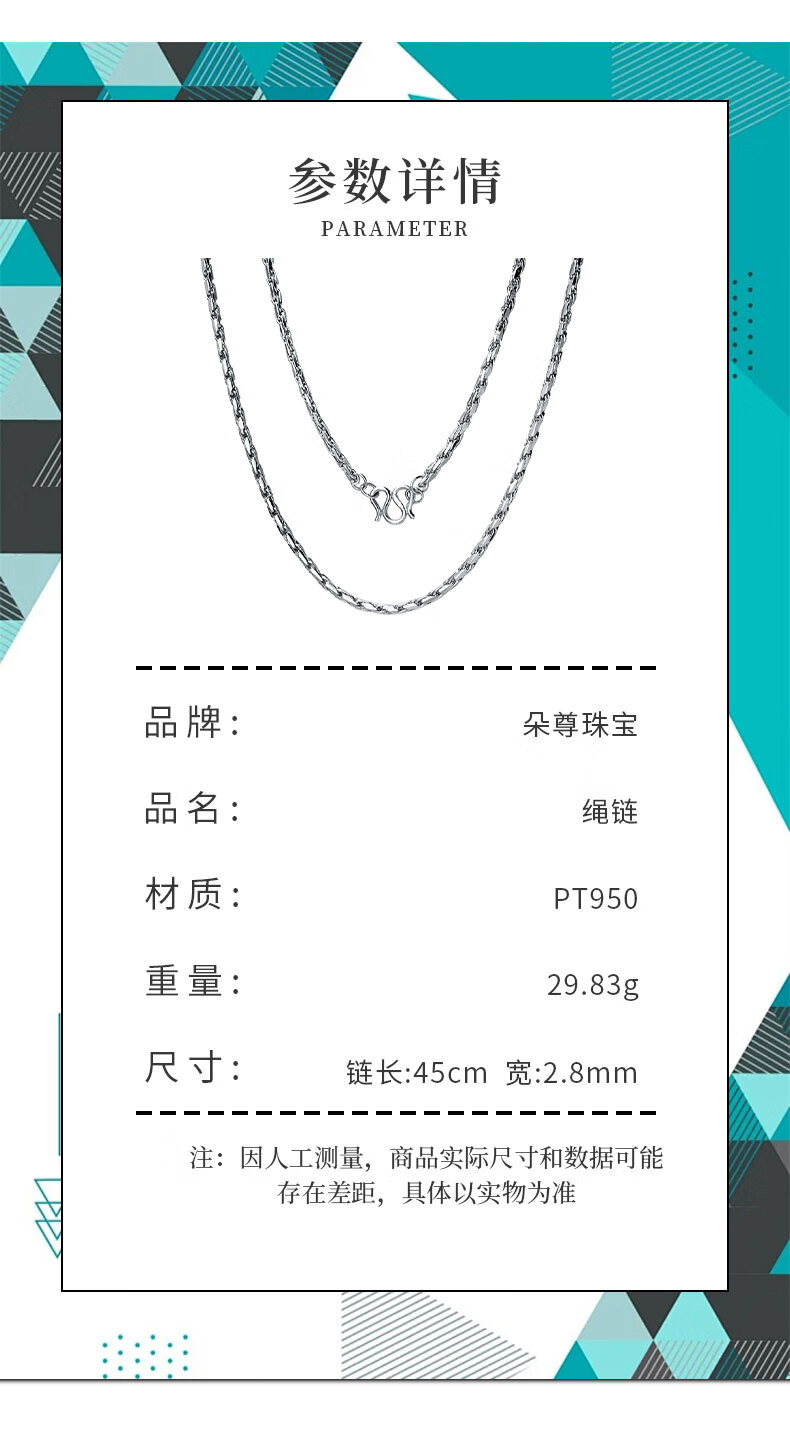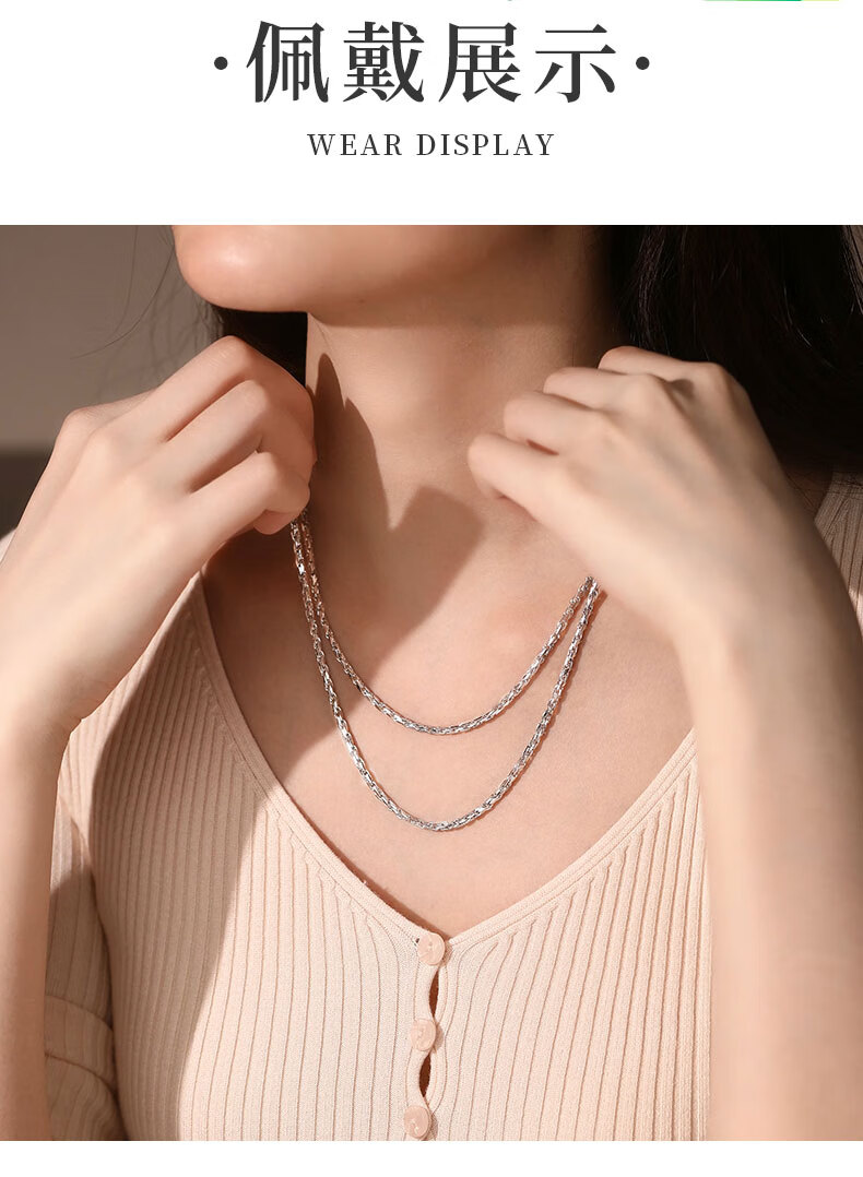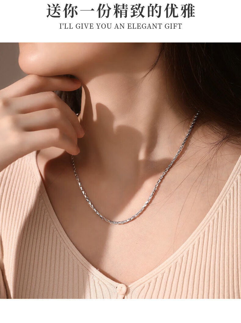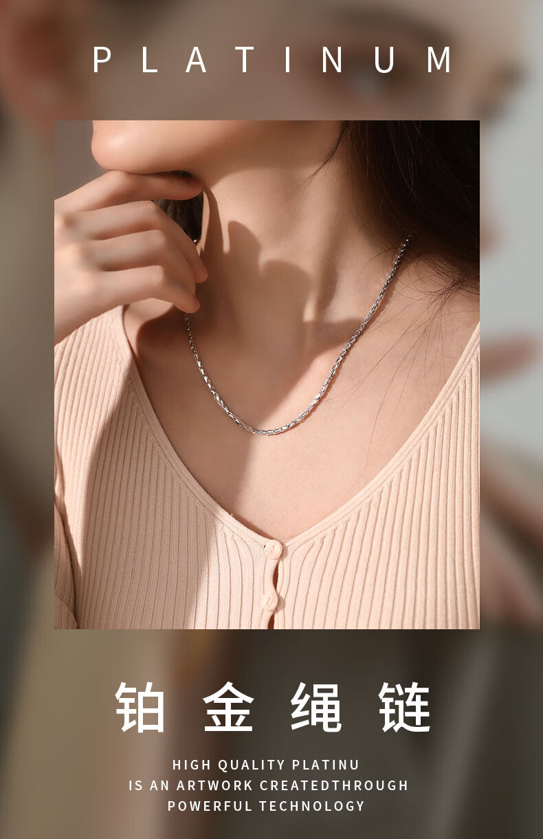 Duozun pt950 platinum necklace for women platinum platinum necklace for women clavicle chain solid rope chain versatile plain chain for women weight 15.5g length 45cm thick about 1.9mm