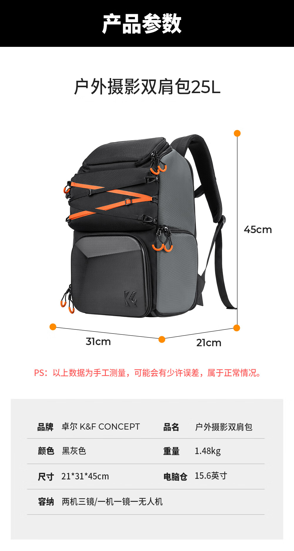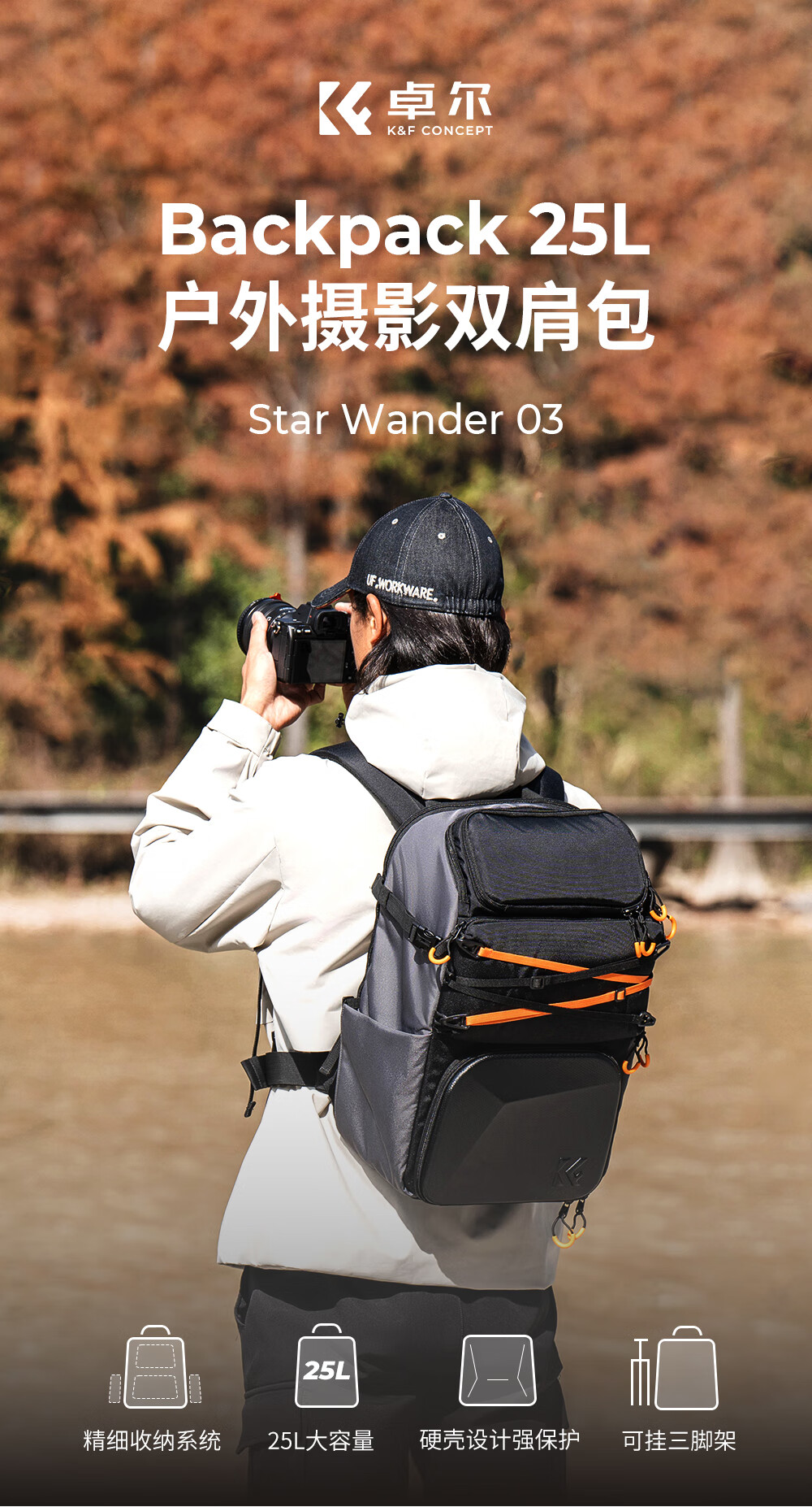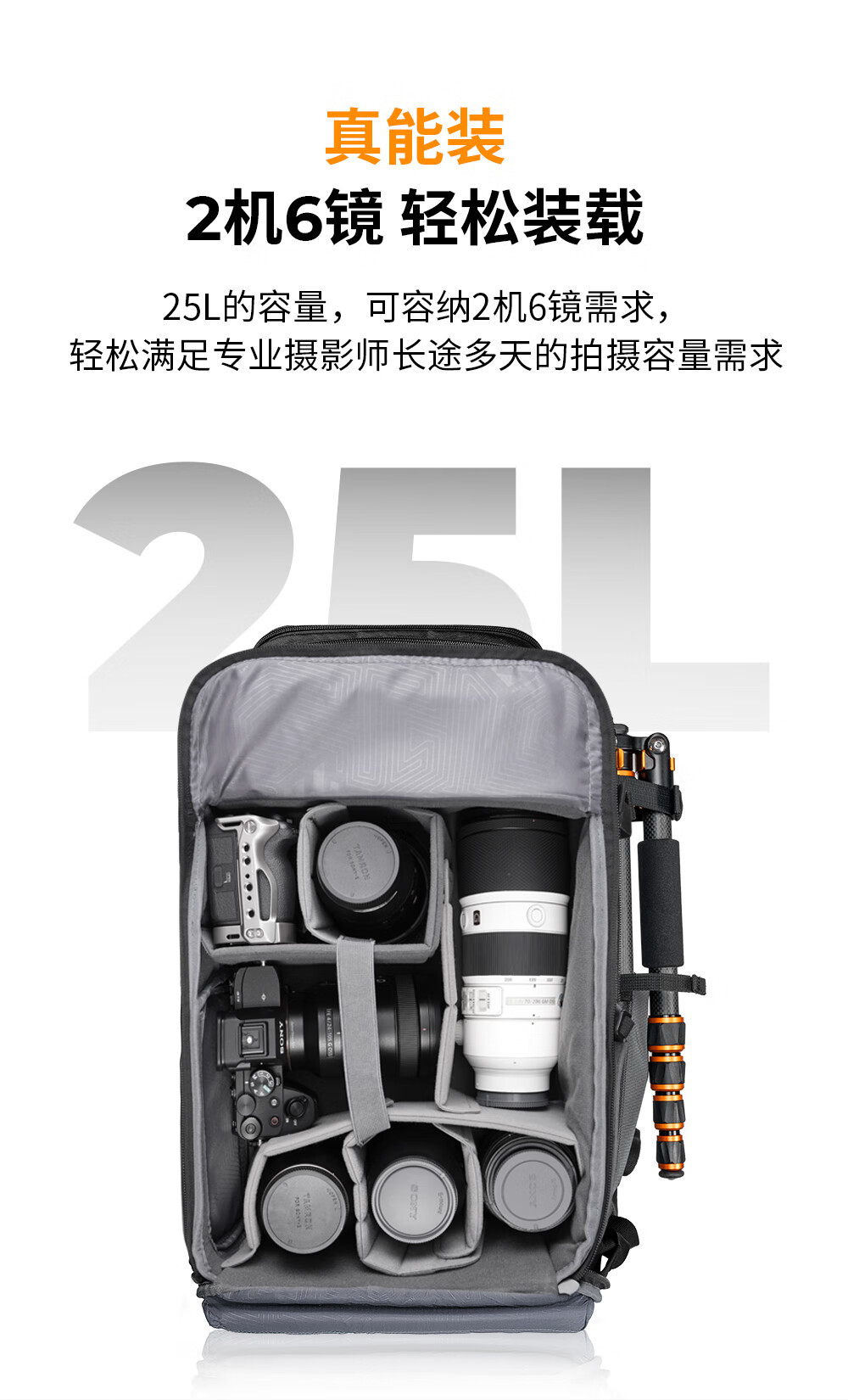 Zhuoer 25L Capacity Camera Bag Shoulder Large Capacity Mirrorless Backpack Waterproof Professional Back Protection System Outdoor Mountaineering Men’s and Women’s SLR Camera Bag Classic Gray Post Order Ceremony丨October Spree Shopping New Flagship
