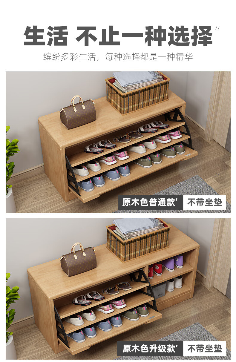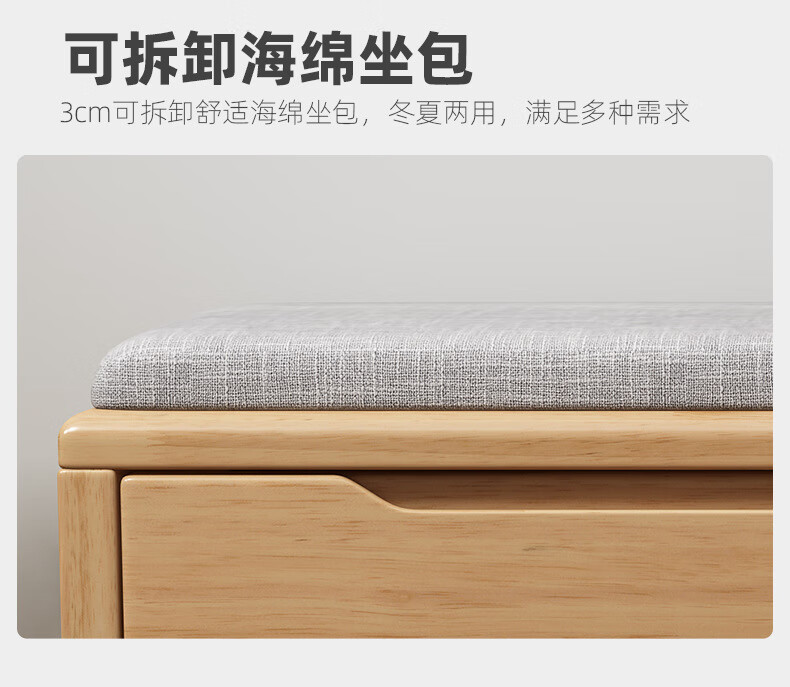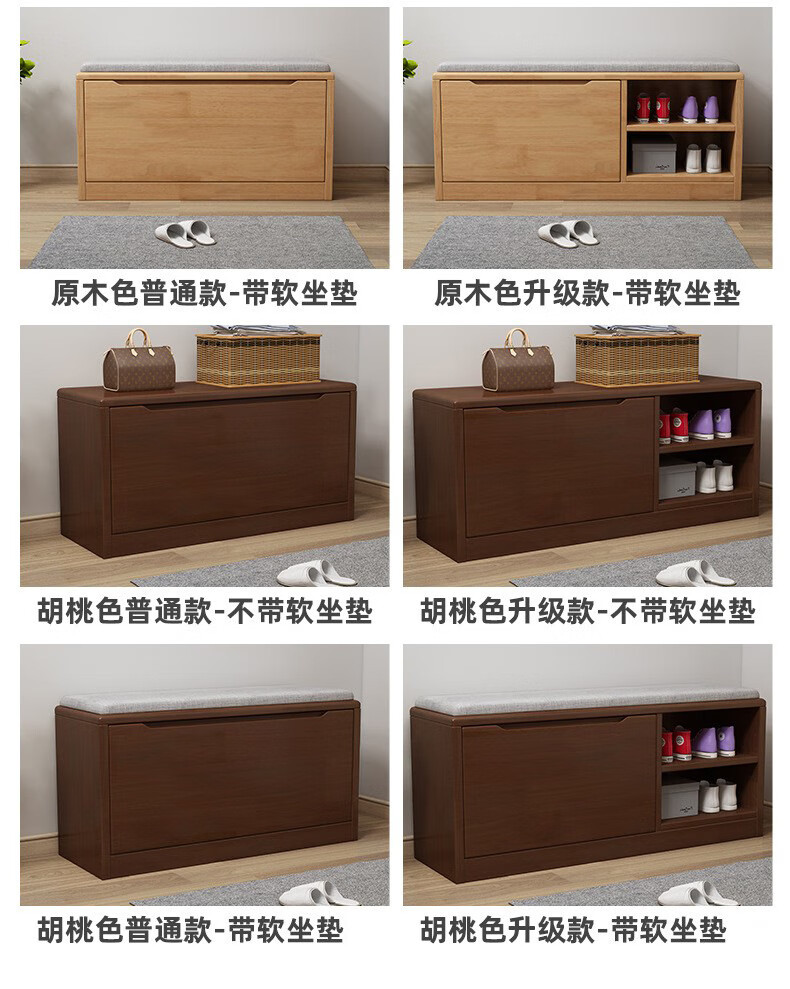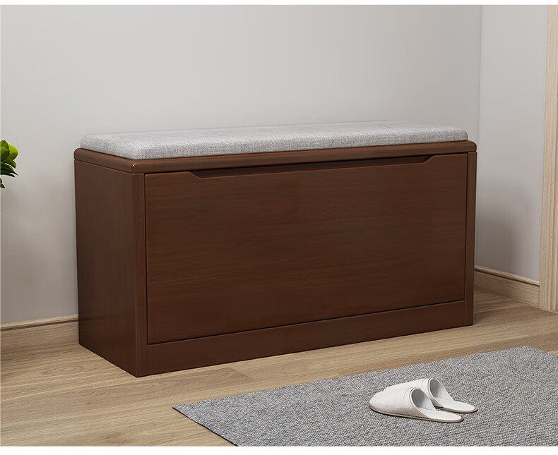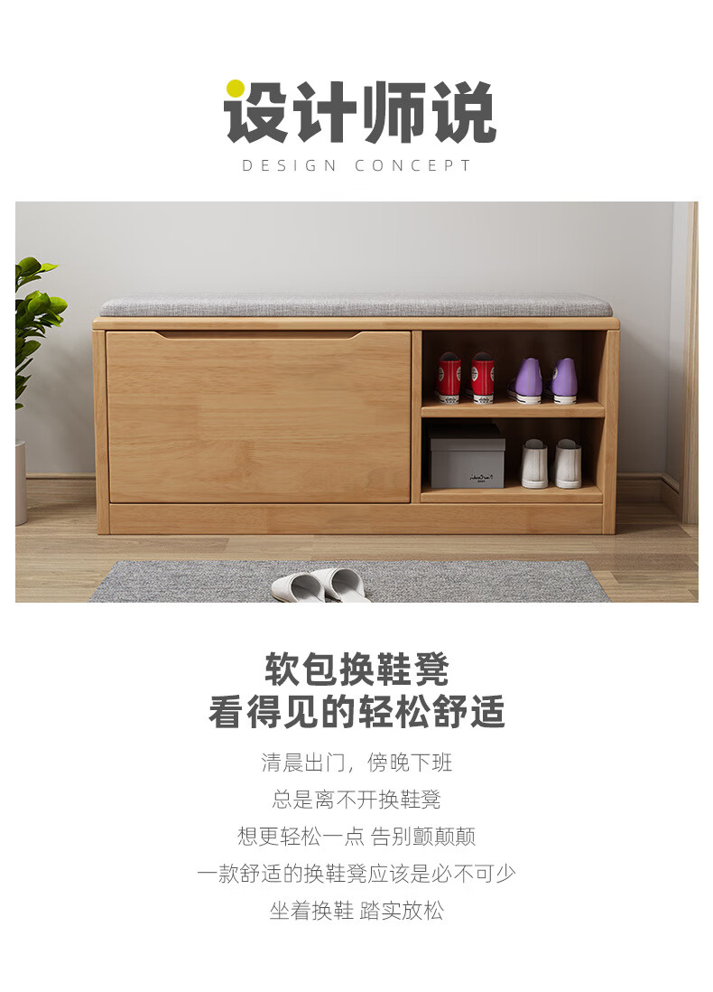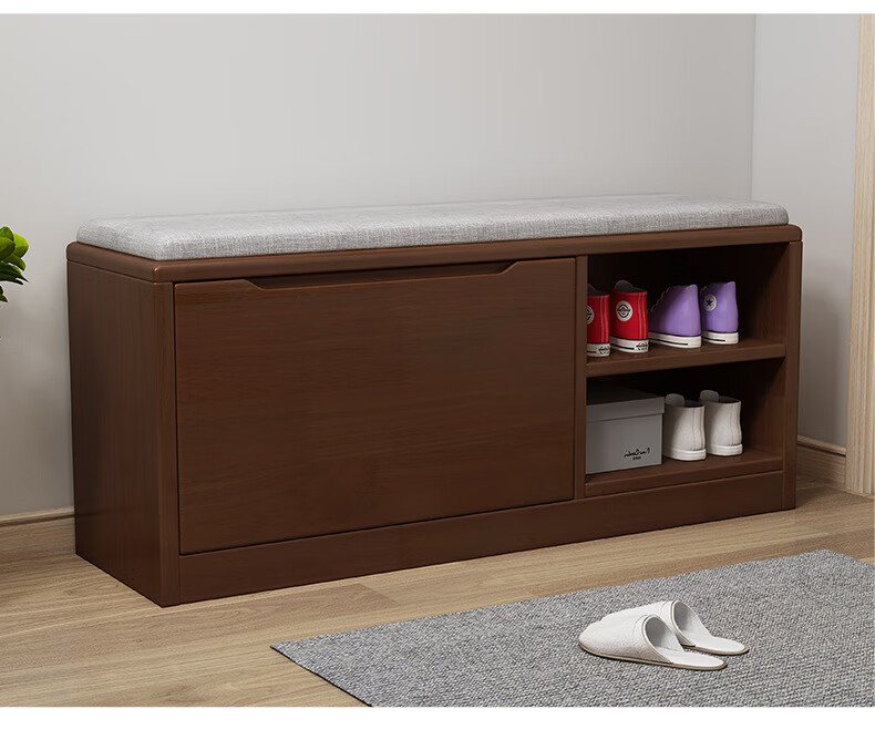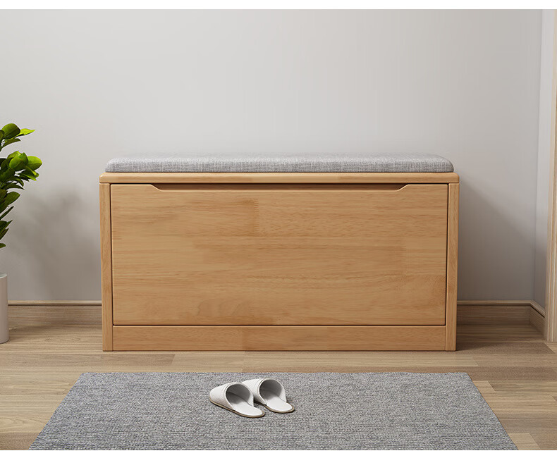 Mihong Nordic Solid Wood Shoe Changing Stool, Upholstered Shoe Cabinet, Integrated Rectangular Porch Shoe Rack, 100cm Style/With Soft Cushion, Length 100 Width 30 Height 45, Wood Color