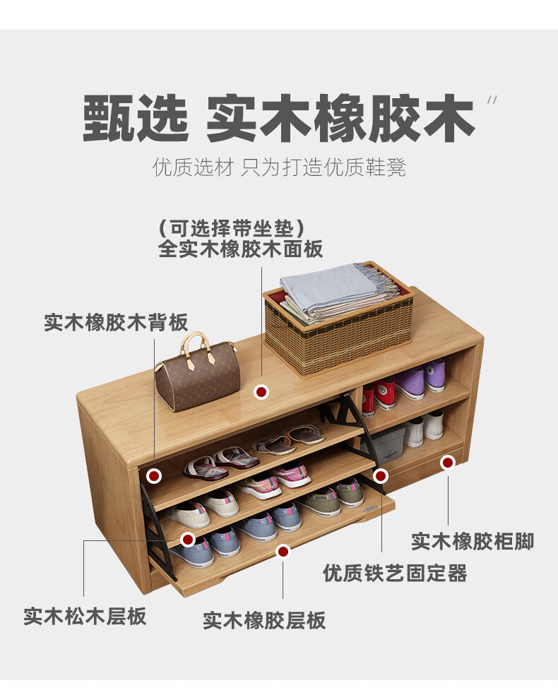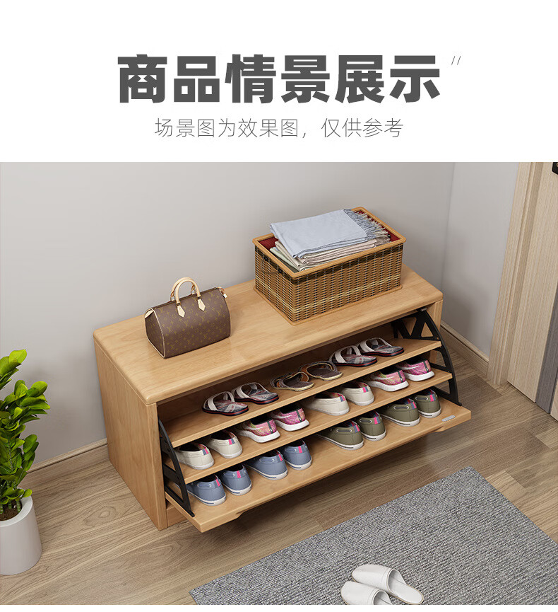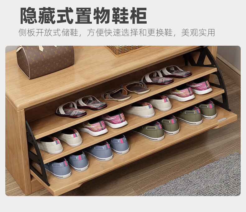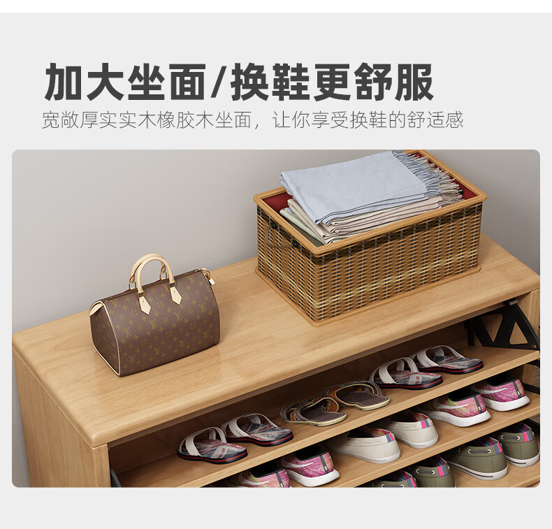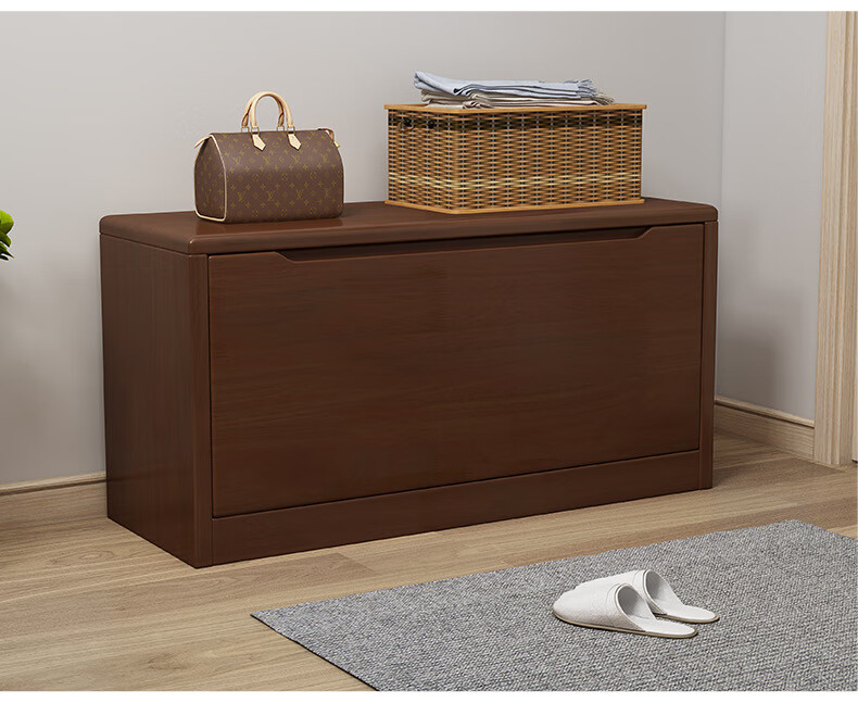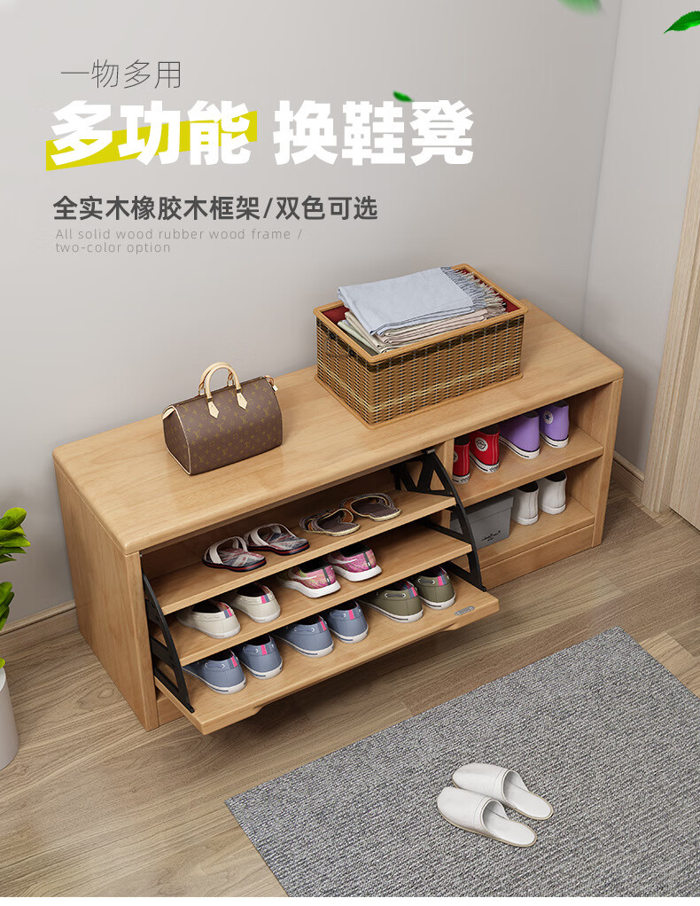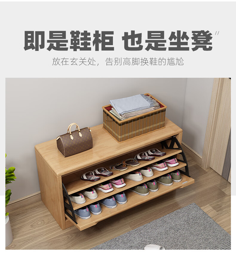 Mihong Nordic Solid Wood Shoe Changing Stool, Upholstered Shoe Cabinet, Integrated Rectangular Porch Shoe Rack, 100cm Style/With Soft Cushion, Length 100 Width 30 Height 45, Wood Color