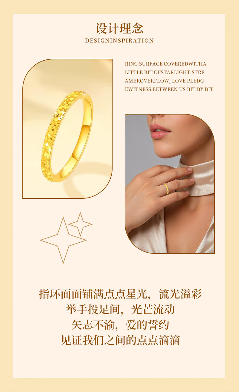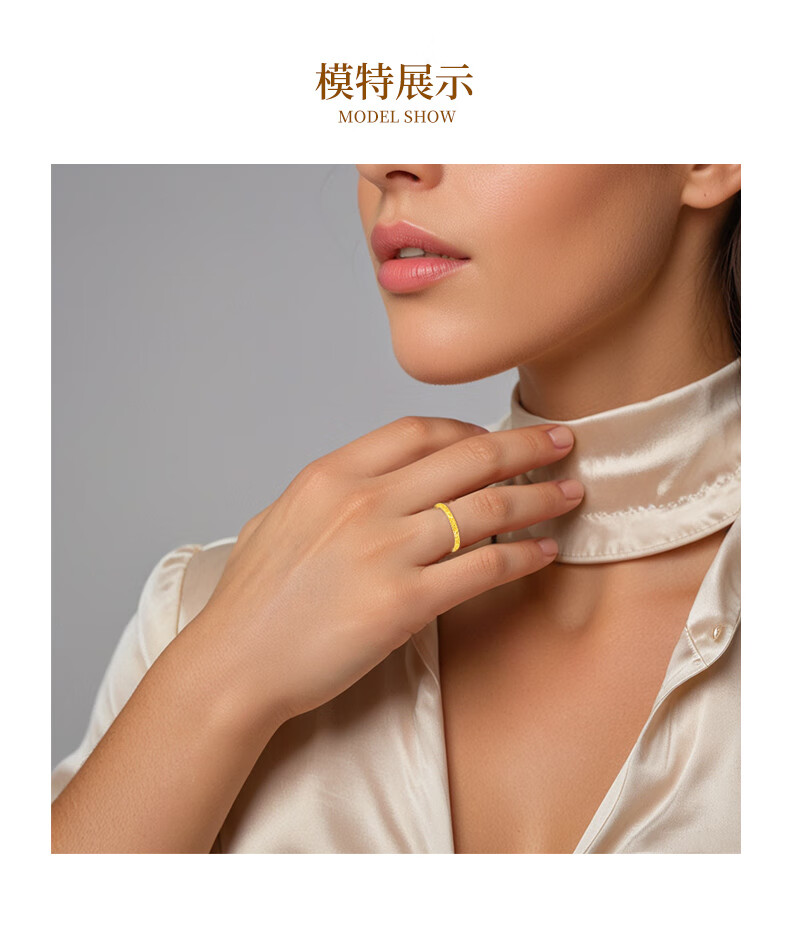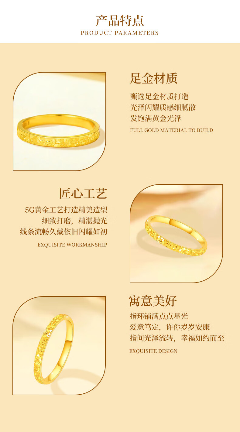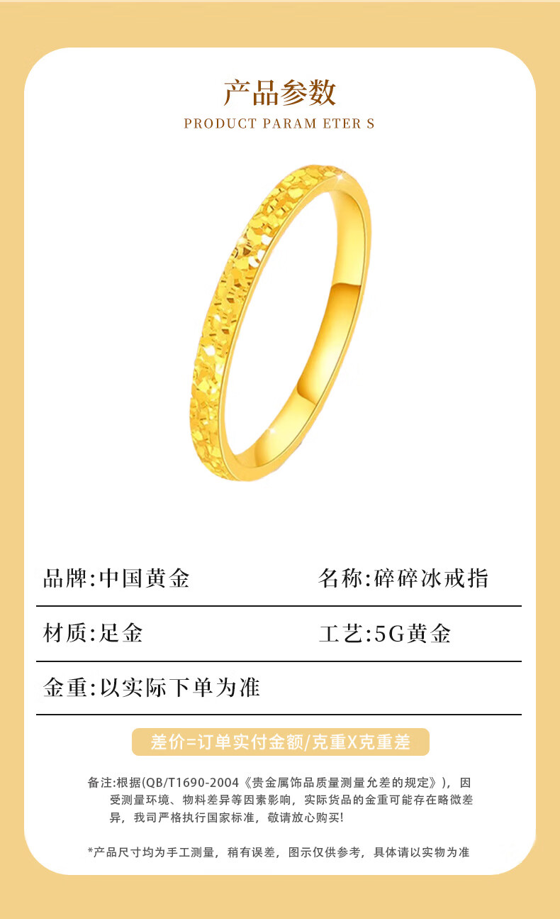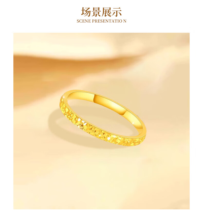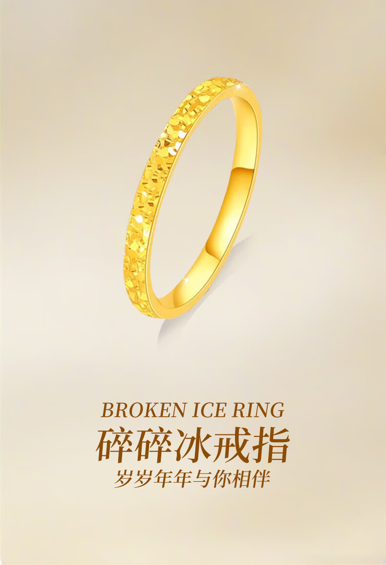 CHINA GOLD Crushed Ice Gold Ring Women's Foot Gold Versatile Solid Ring Ring Chinese Valentine's Day Birthday Gift for Girlfriend and Wife Crushed Ice Ring About 1g Circle No. 12