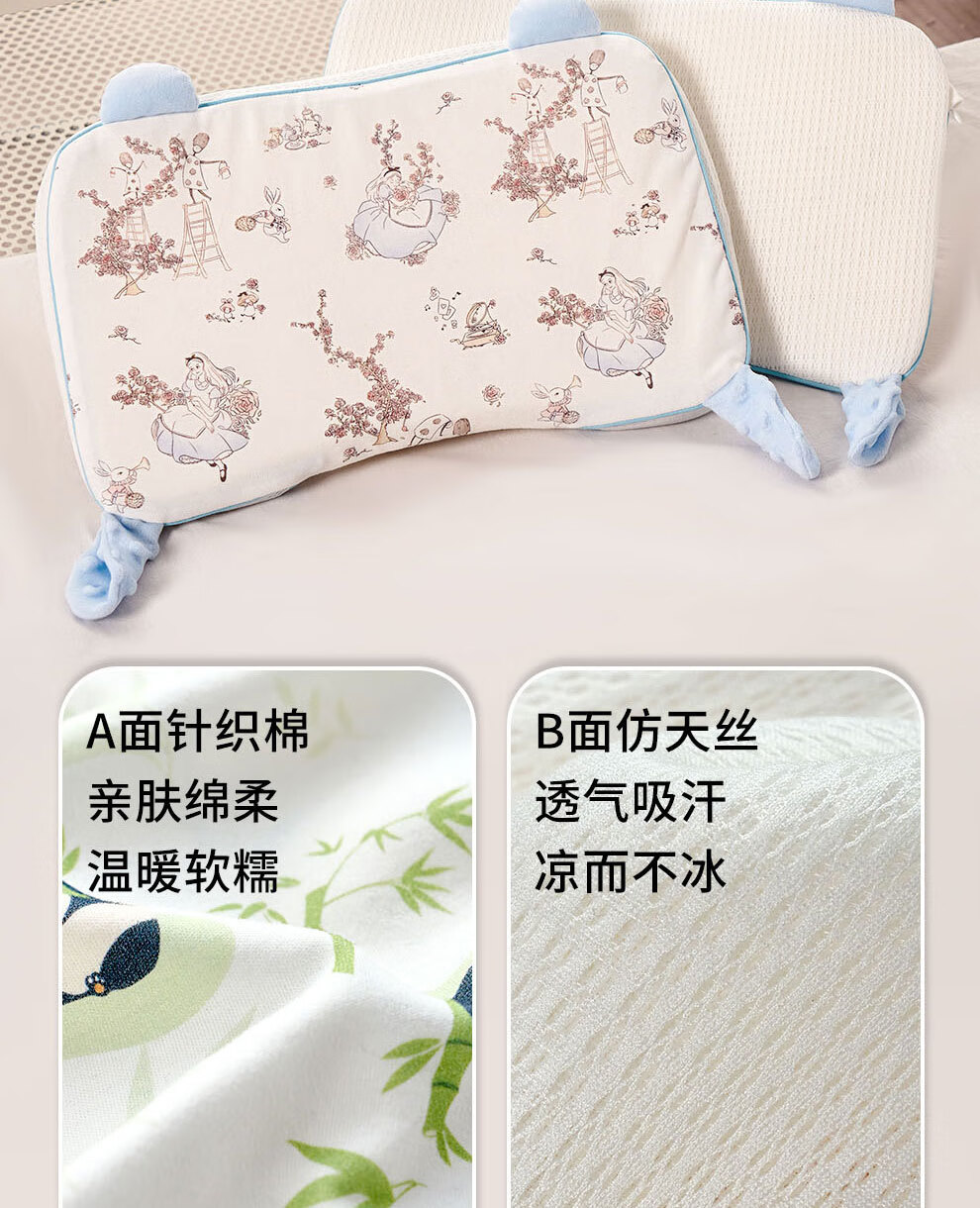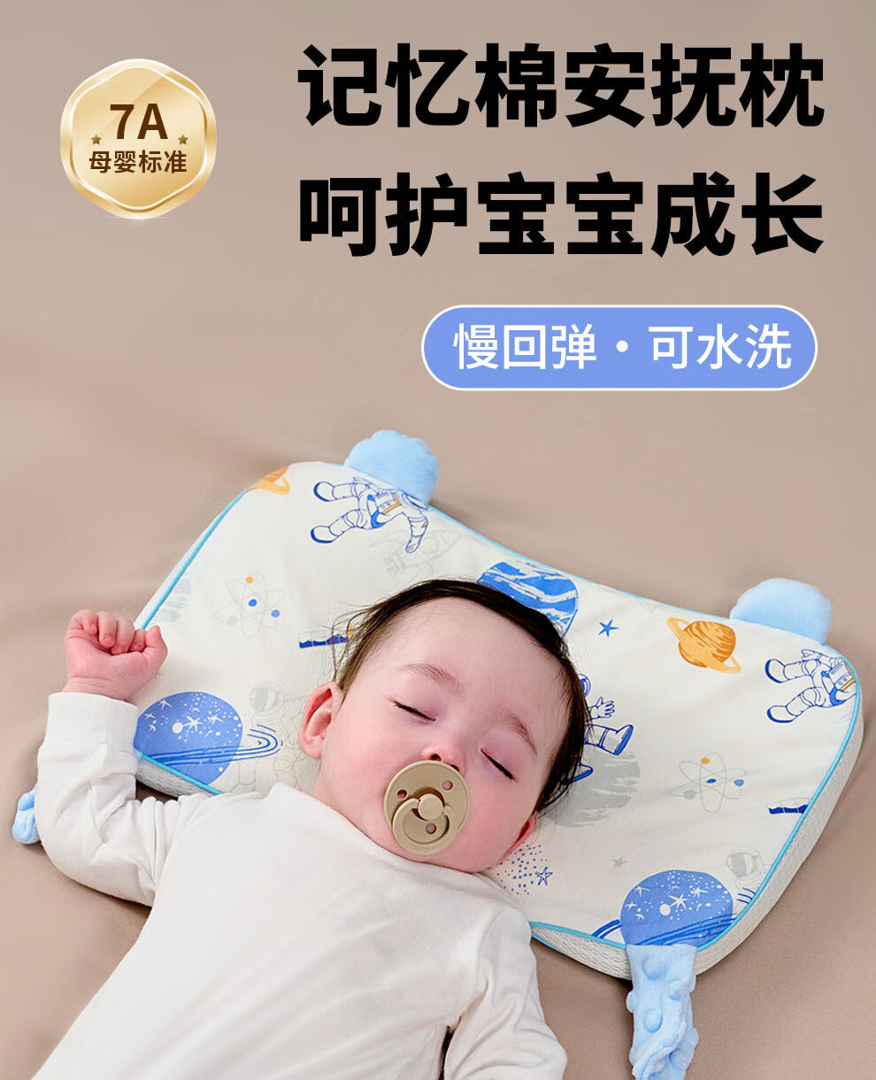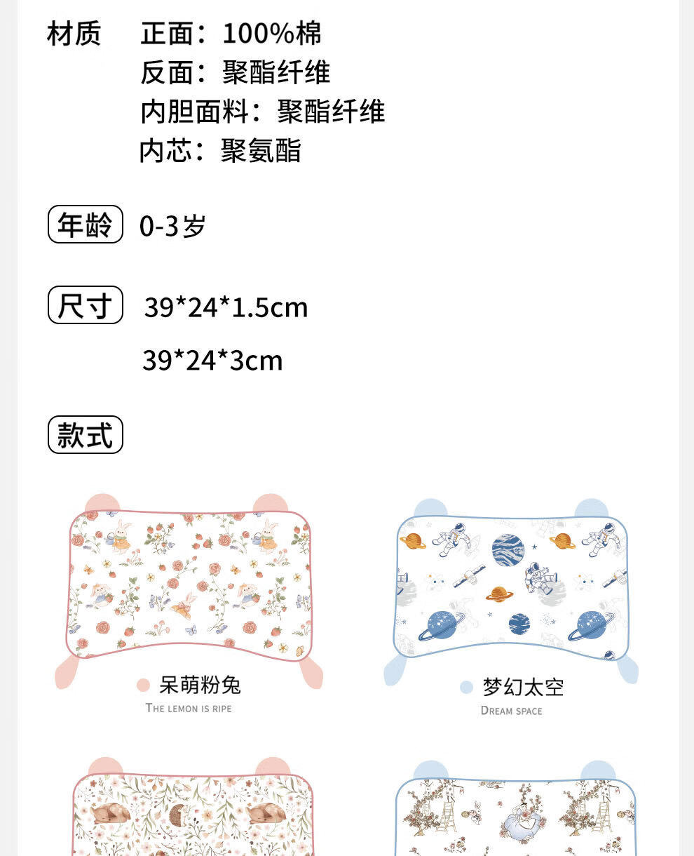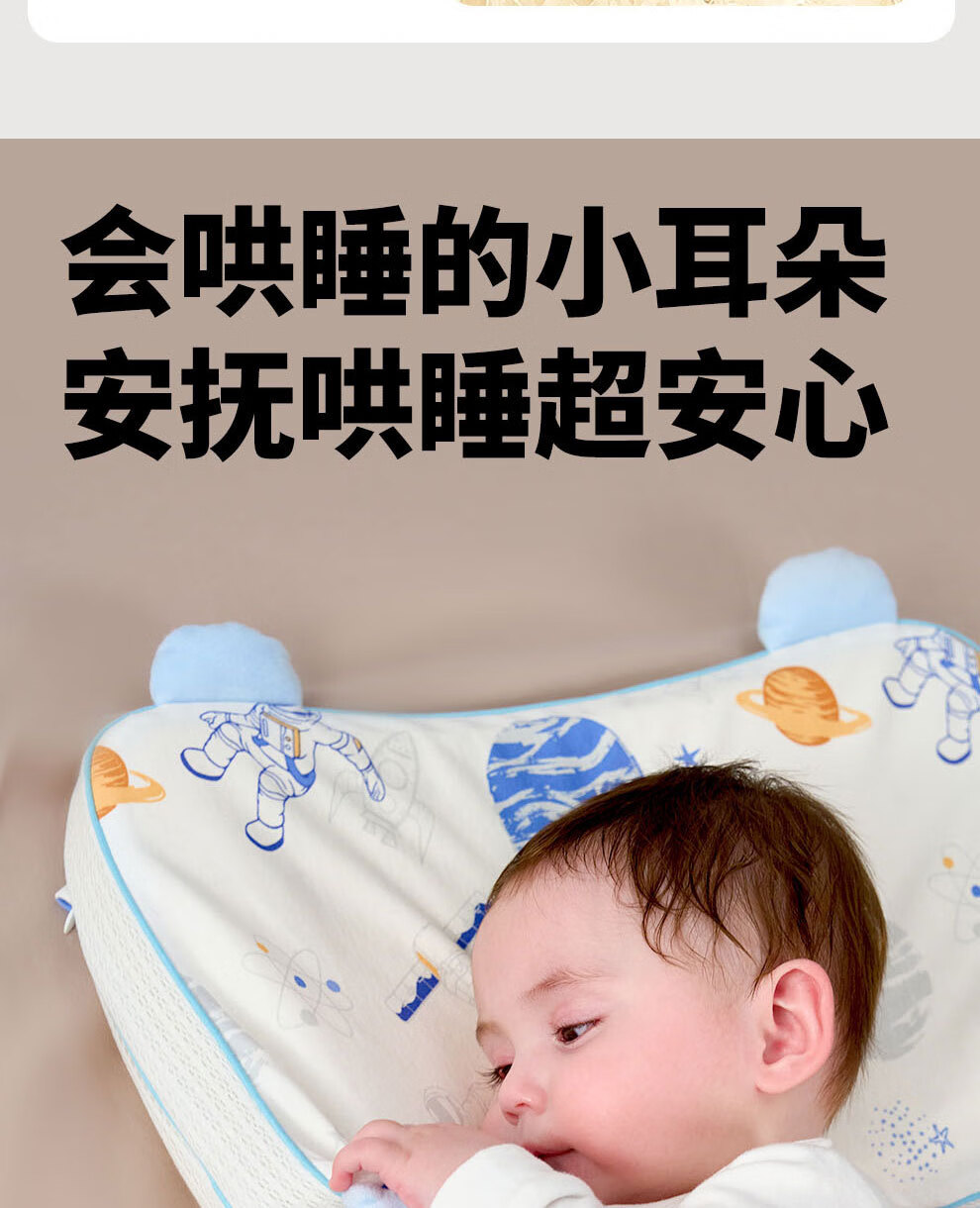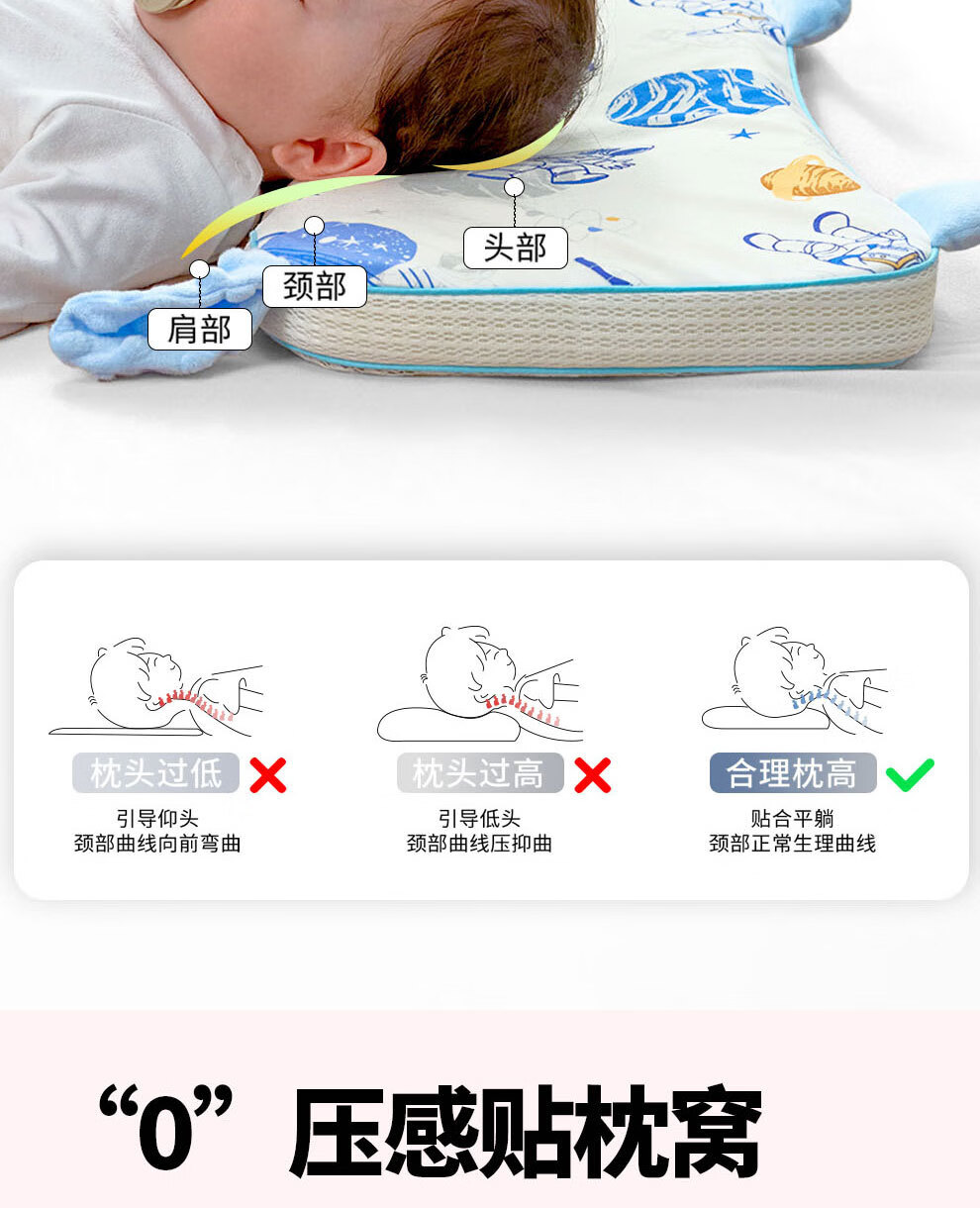 Manletu baby pillow 1-3-6 years old baby 6 months and above comfort pillow pure cotton children's pillow shaped pillow kindergarten four seasons 0-2 years old pillow height 1.5cm double-sided dream space maternal and infant grade 7A antibacterial / comfort breathable / confinement nanny recommended