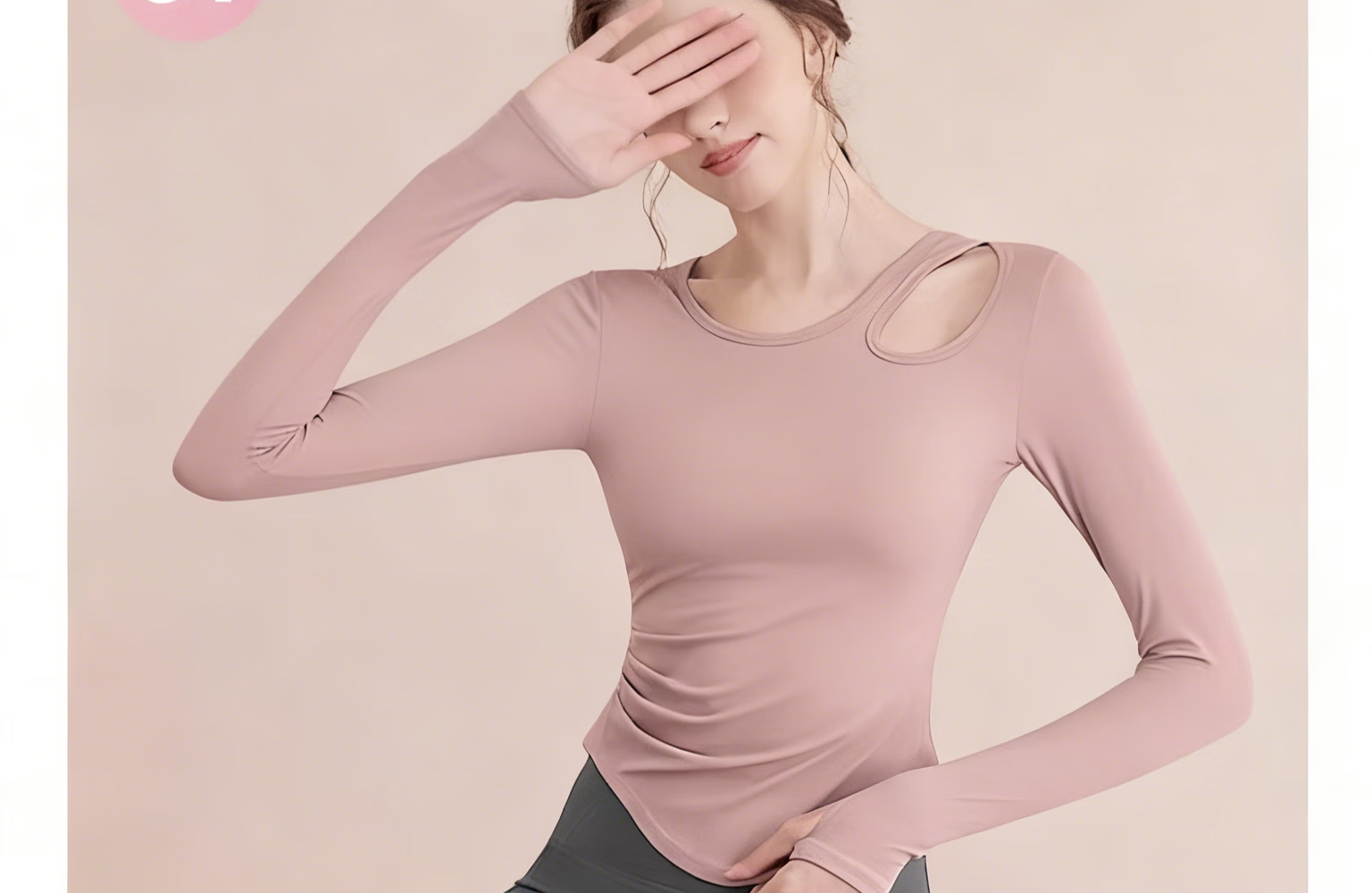 Bo Naling Yoga Wear Two-piece Set for Women Running Quick-Drying Fitness Pilates Training Dance Wear Long Sleeve Pants Suit Slanted Shoulder Hollow Yoga Suit Pink Clothes + Gray Pants L Suitable for 105-115 Jin Jin equals 0.5 kg