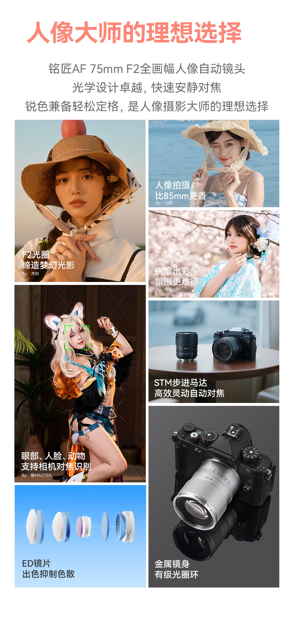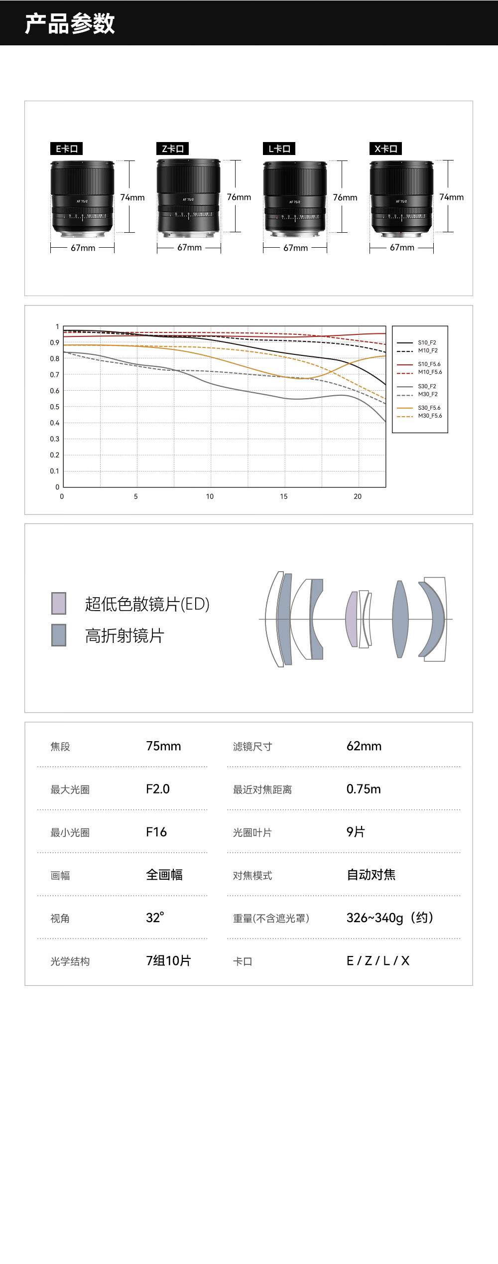 Mingjiang 75f2 full-frame autofocus large aperture portrait lens 75mm f2 suitable for E-mount Z-mount LUMIX S1 S5 S9L-mount XE5 mirrorless camera lens L-mount black