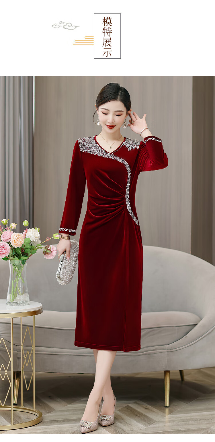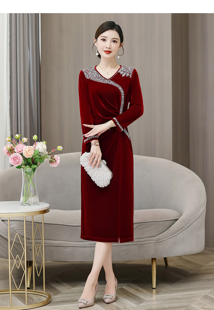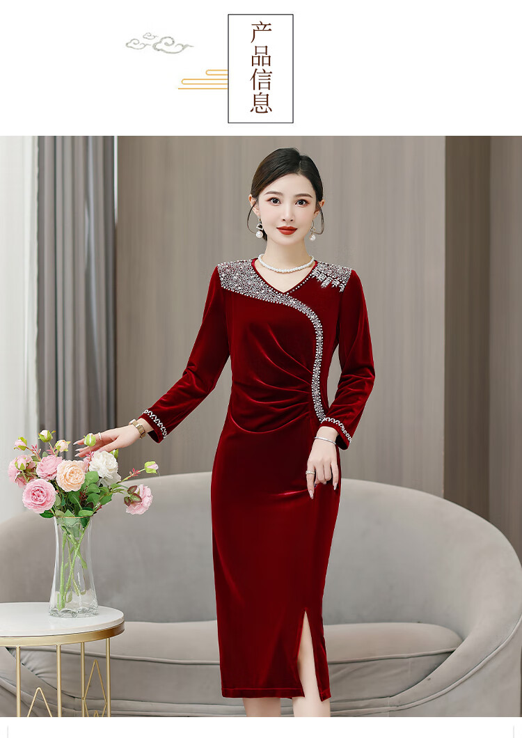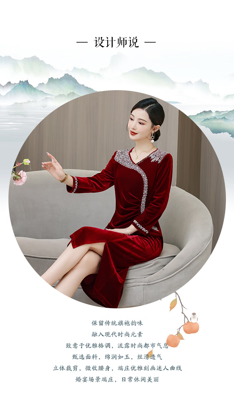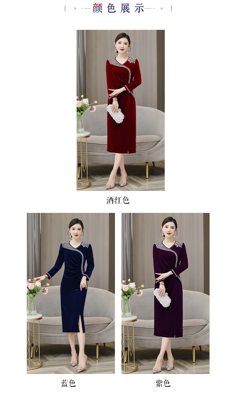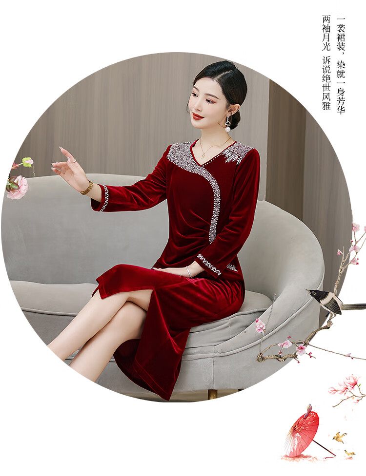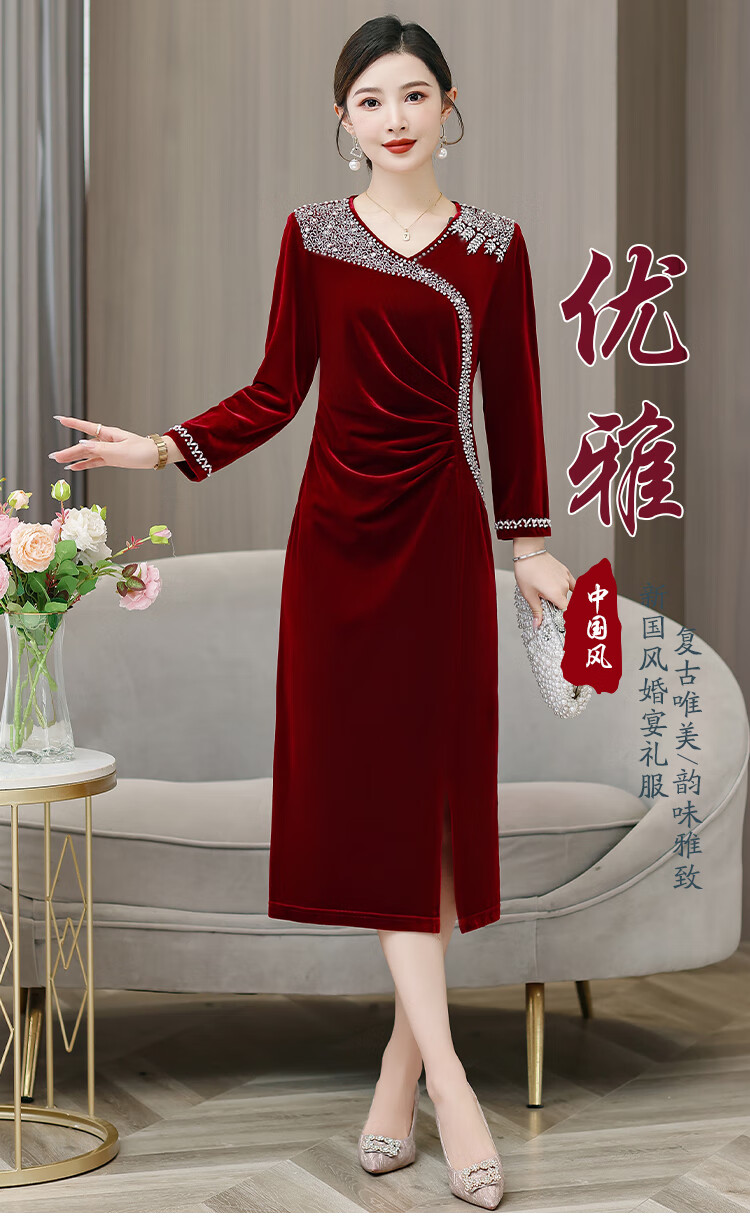 Woodpecker (TUCANO) mother's wedding dress, wedding banquet dress, high-end mother-in-law cheongsam 2025 new wedding dress velvet blue without velvet 3XL