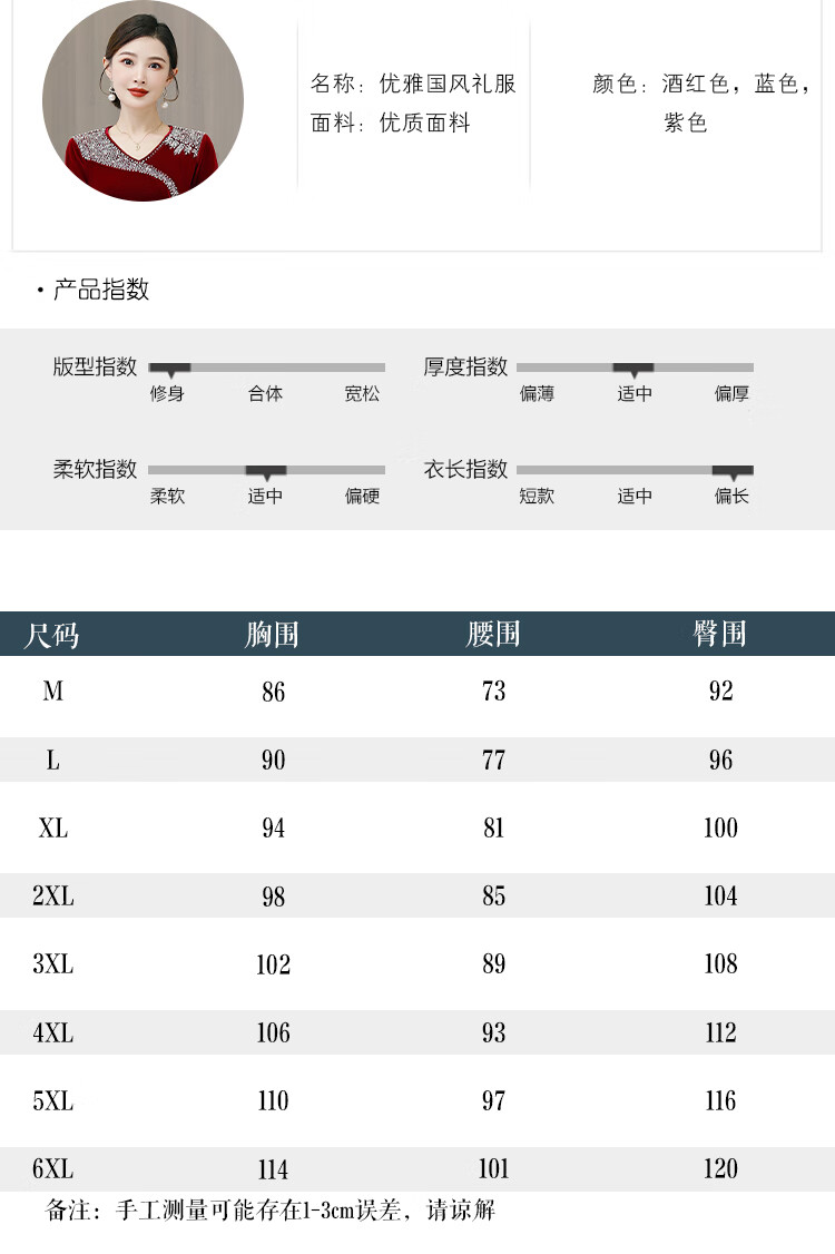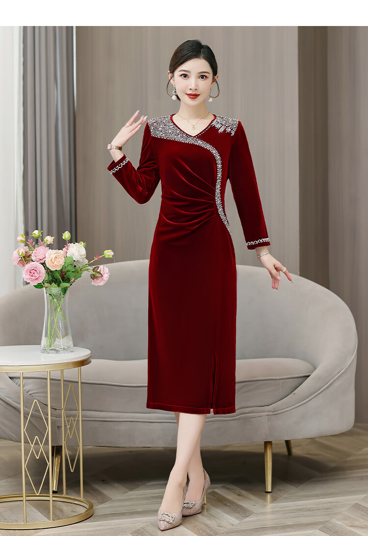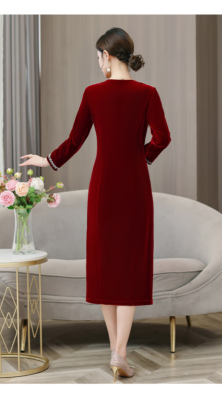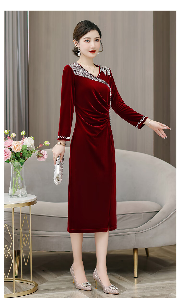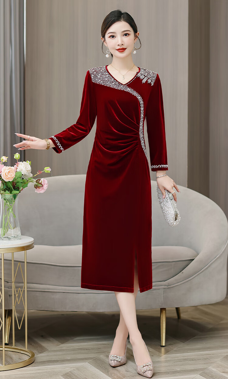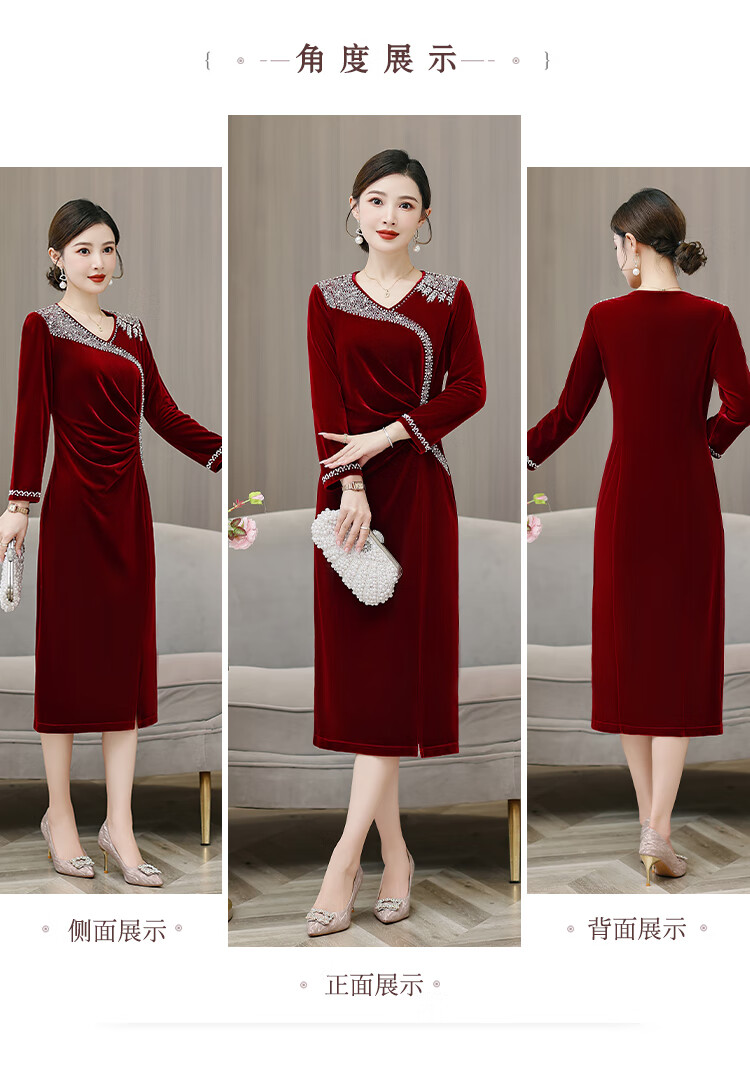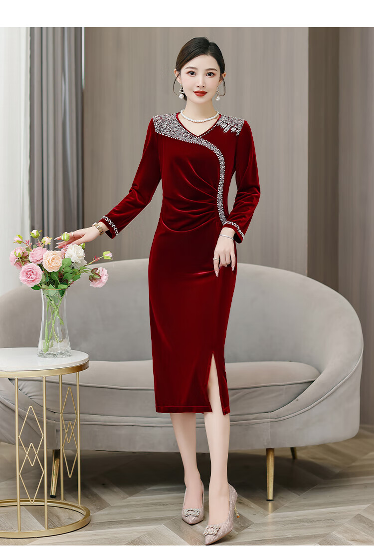 Woodpecker (TUCANO) mother's wedding dress, wedding banquet dress, high-end mother-in-law cheongsam 2025 new wedding dress velvet blue without velvet 3XL