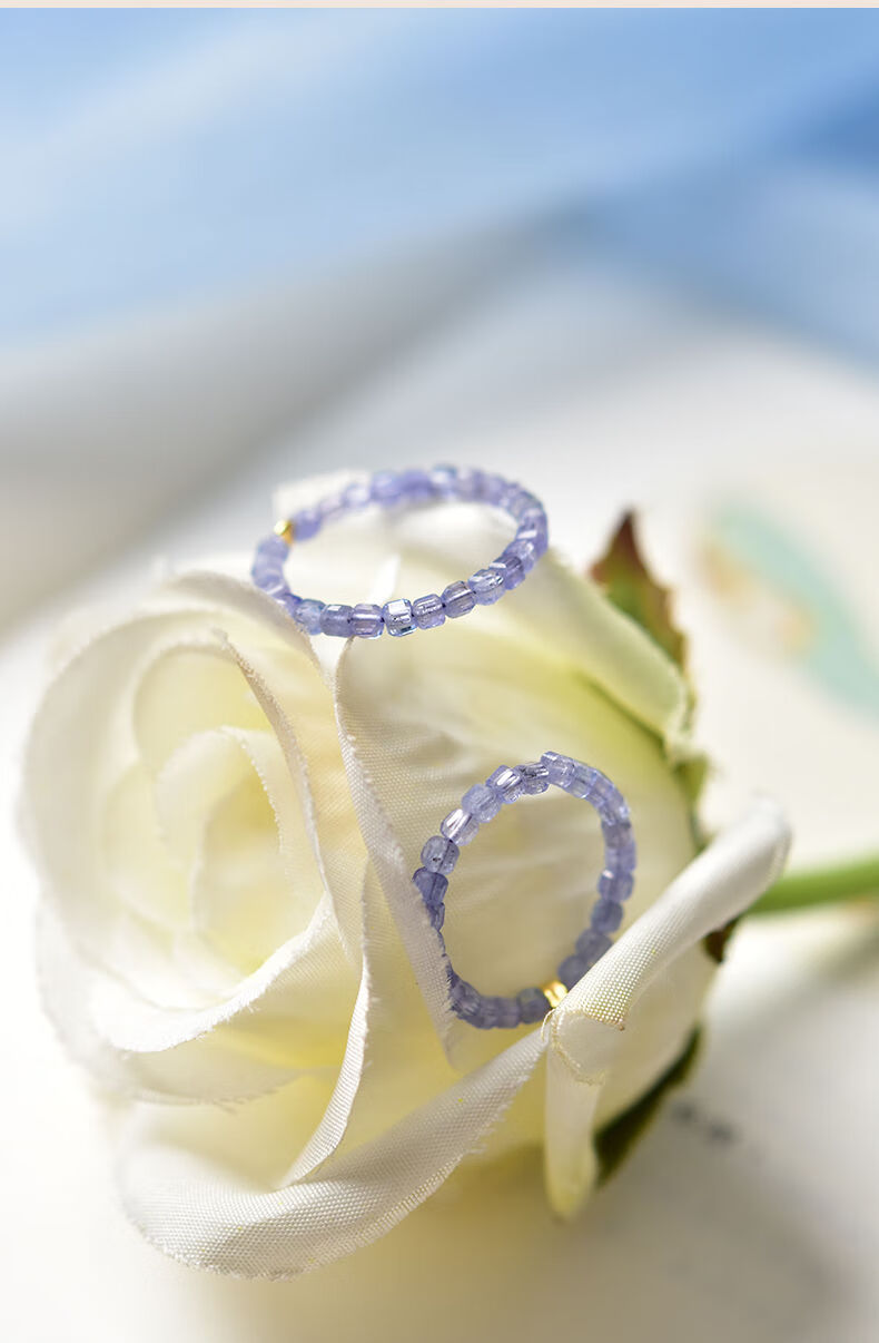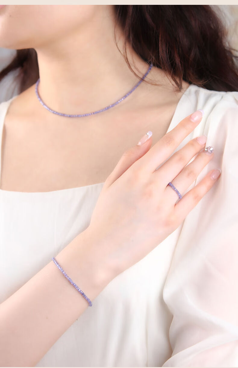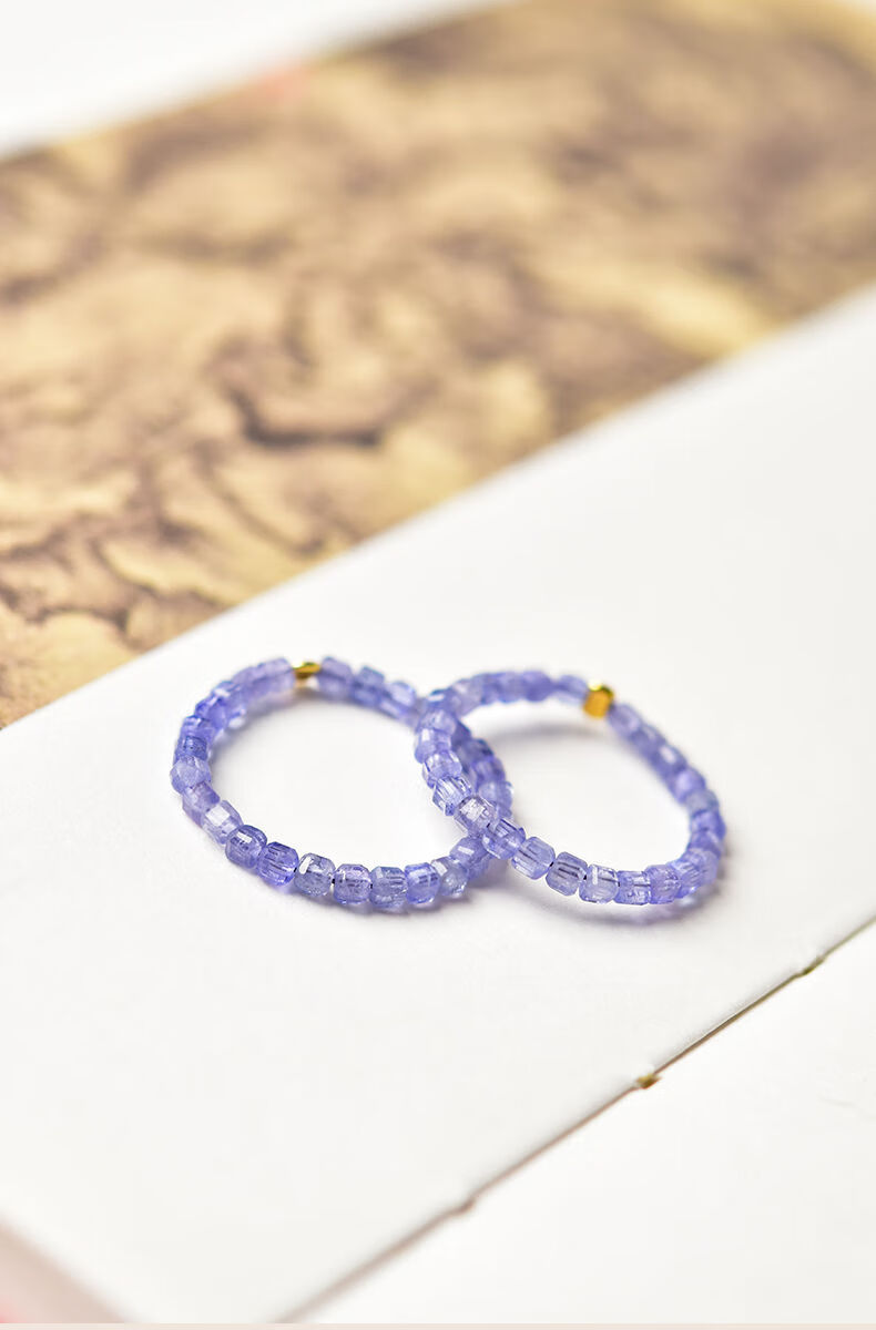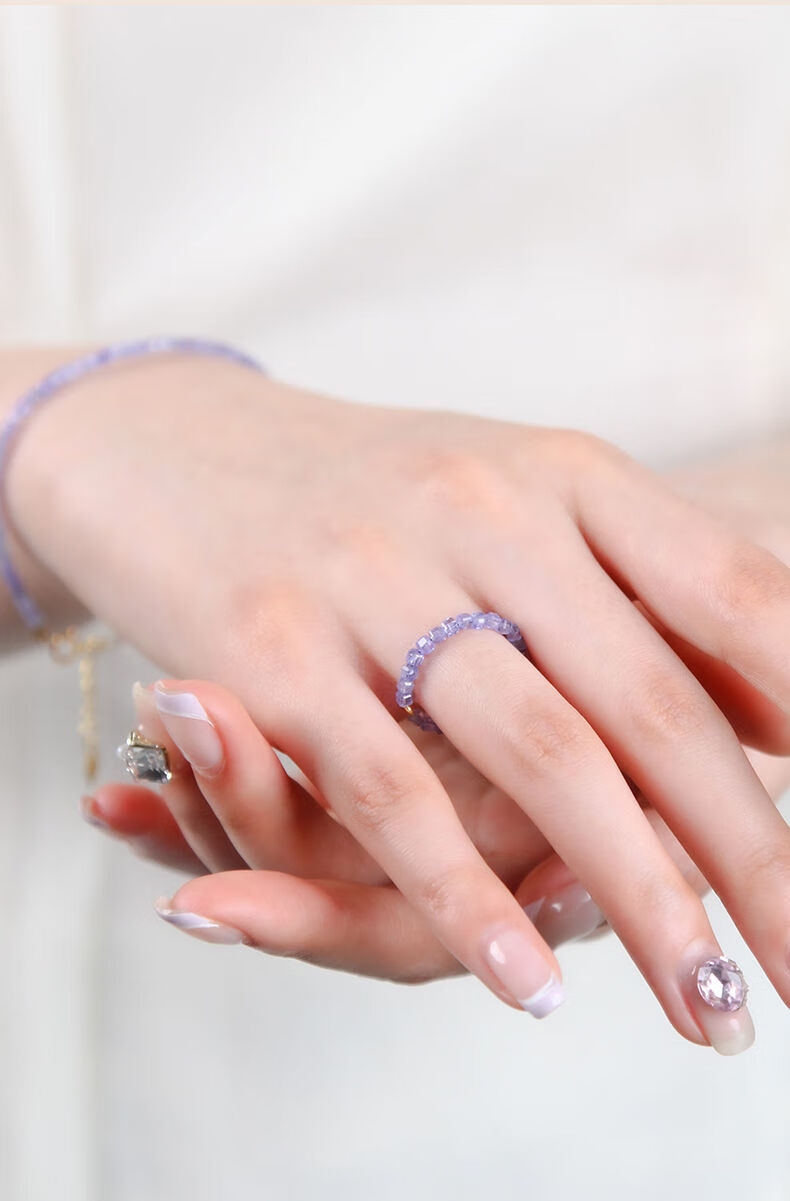 Yage tanzanite ring for women, light luxury niche crystal small sugar cube ring for men, self-discipline couple ring, index finger tail ring, bead diameter is about 2mm - ring ring is about 10#