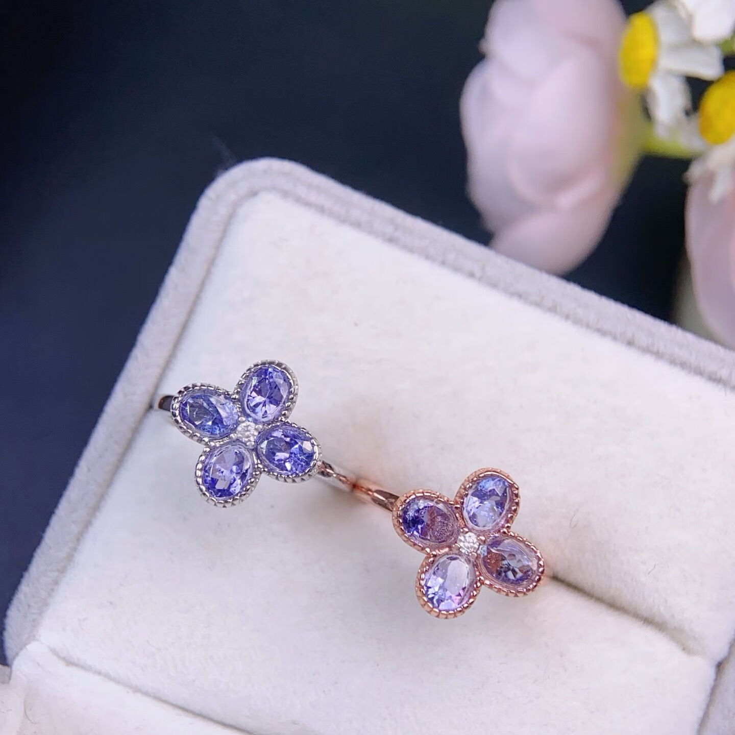 Yage's new amethyst four-leaf clover tanzanite ring 925 silver transparent fire crystal classic girls fashion white gold