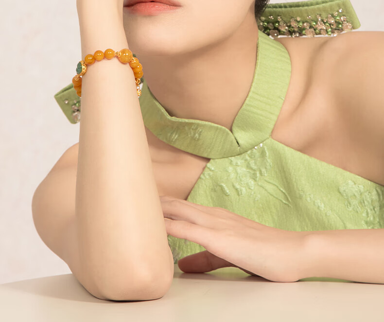 Layun Feiyin Natural Boutique Beeswax Bracelet Women's S925 Silver Plated 18K Gold Blue Water Jade Jasper 8mm Ball Bead Bracelet L 16.6cm-18cm 8mm