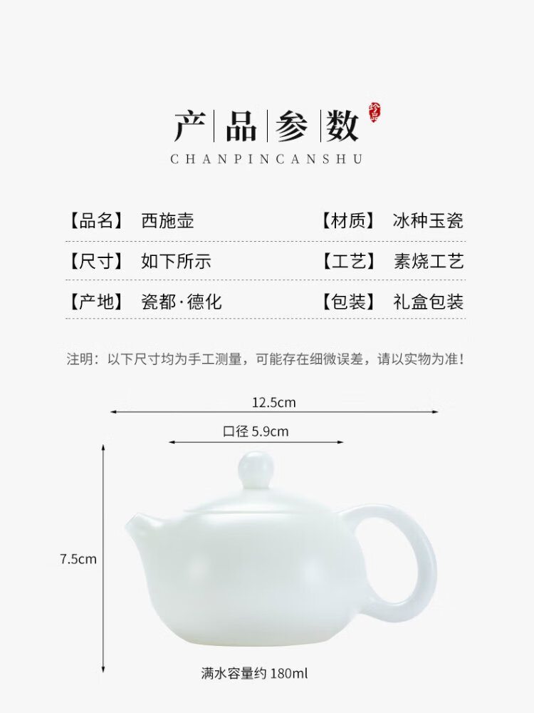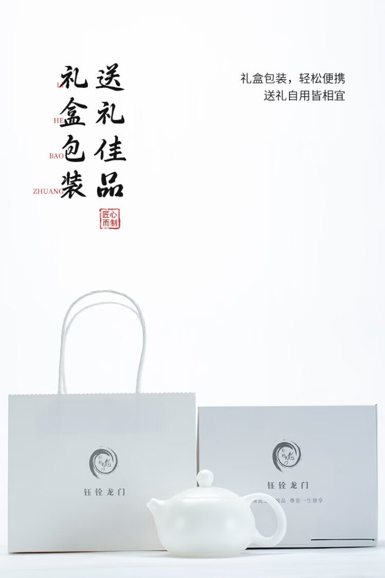 Yuquan Longmen Bingzhong Jade Porcelain Bisque-fired Xishi Pot Dehua White Porcelain High-end Purely Handmade Precision Single Teapot Tea Set Gift Box Bingzhong Jade Porcelain Bisque-fired Xishi Pot (180ml)