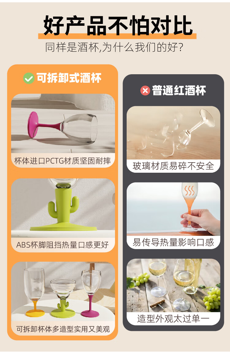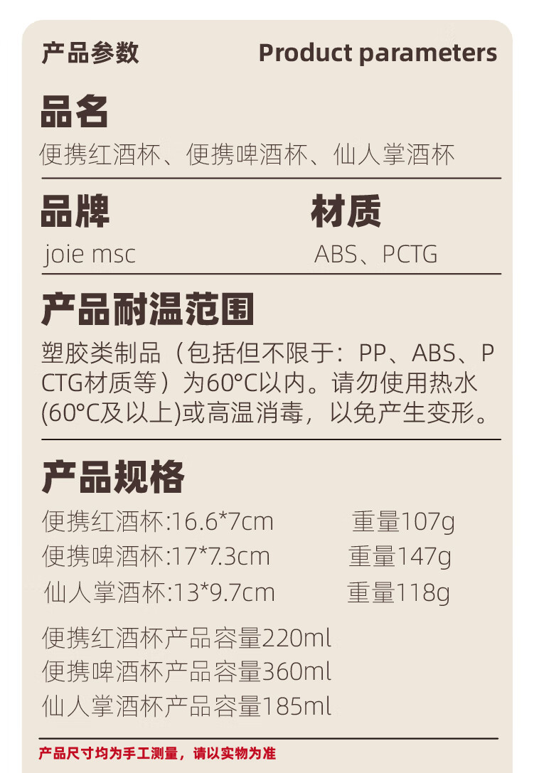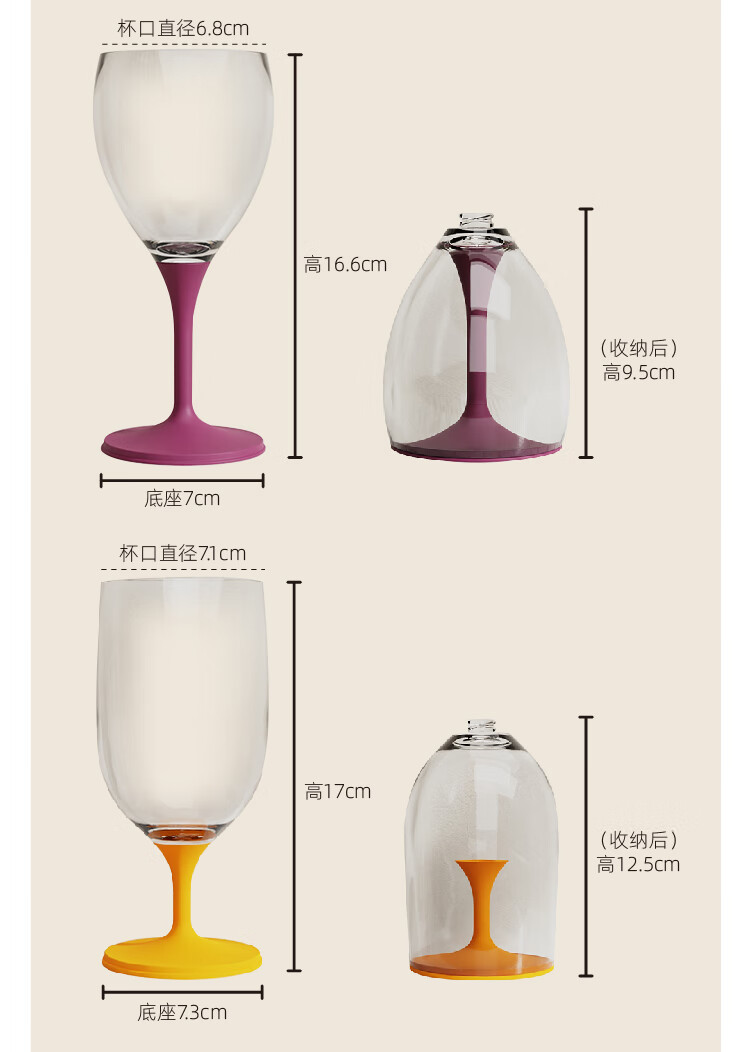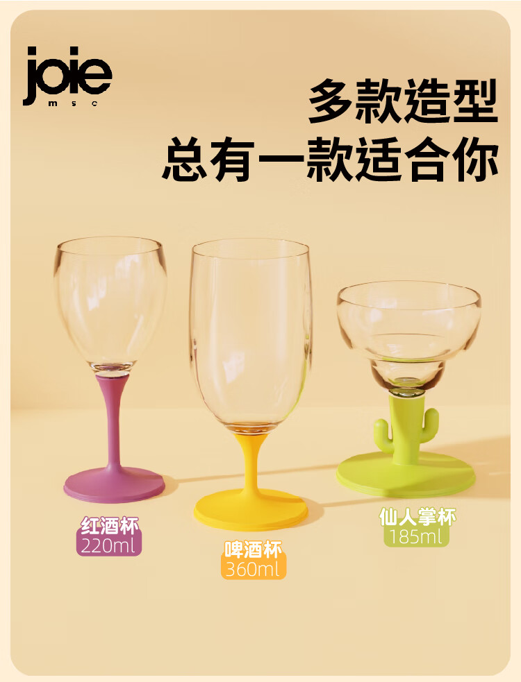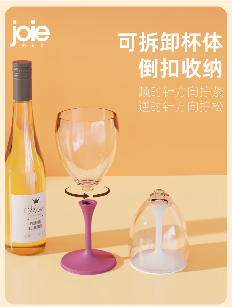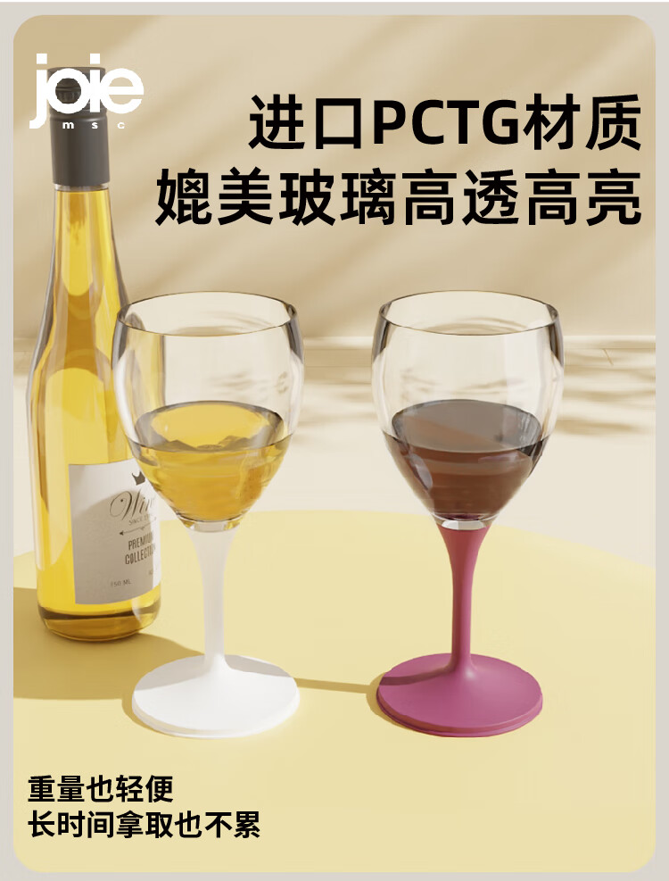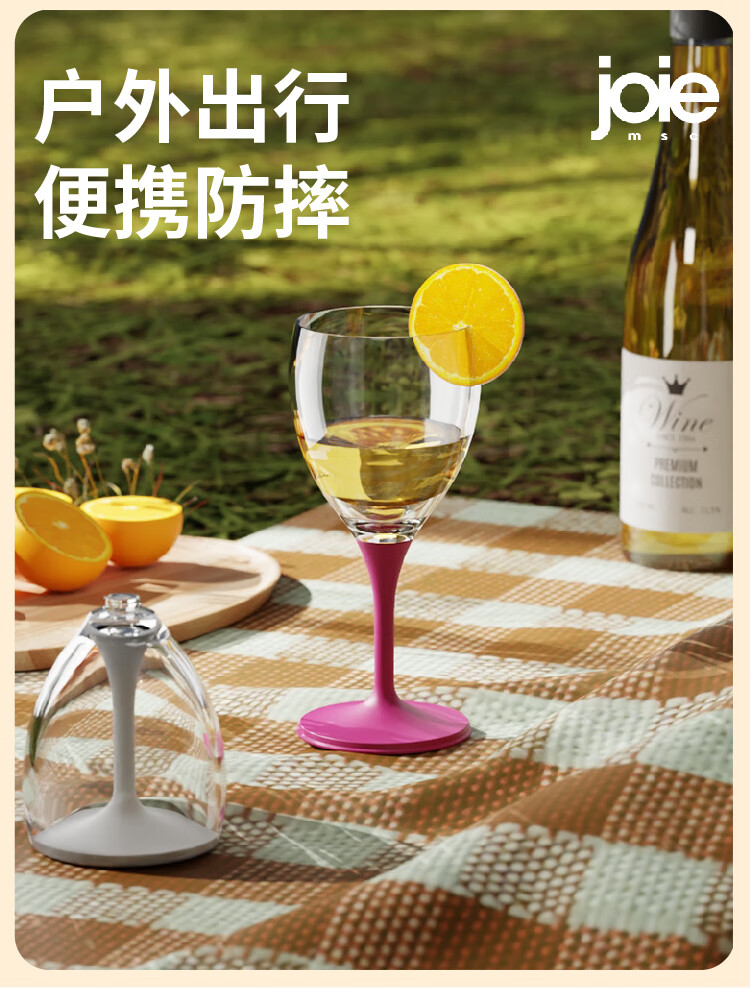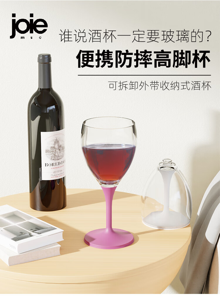 JOIE MSC portable red wine glass, foldable goblet, plastic anti-fall outdoor camping travel champagne wine glass, portable red wine glass, white 220ml, 1 piece