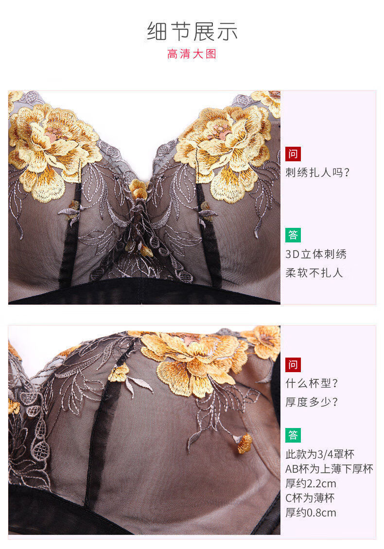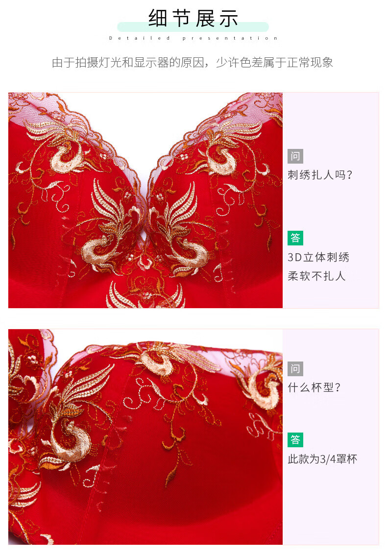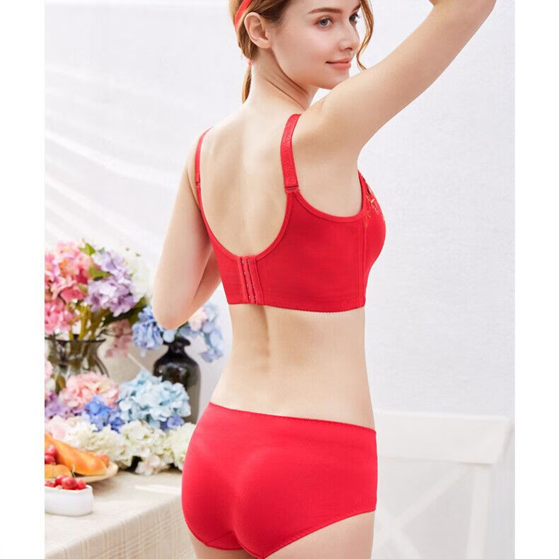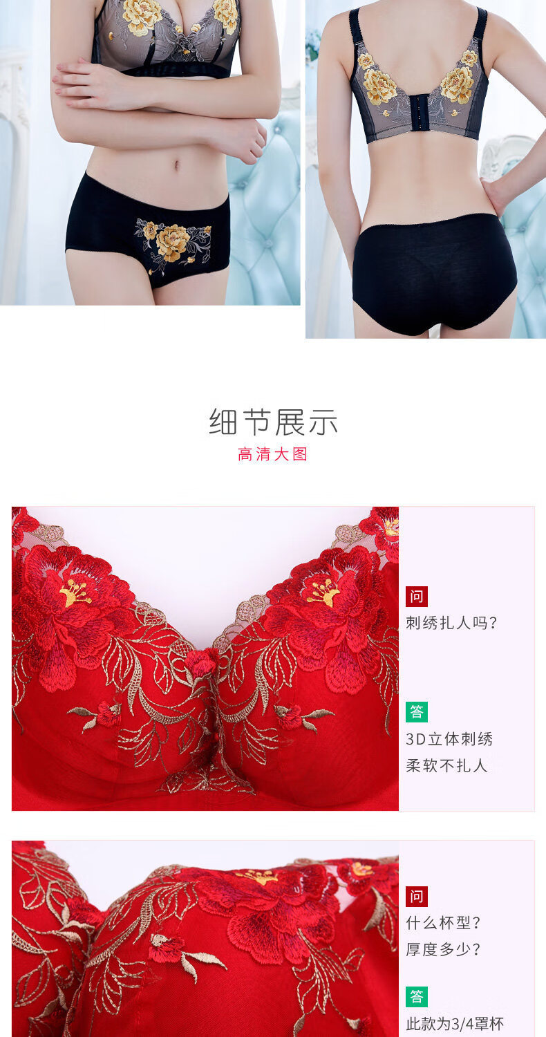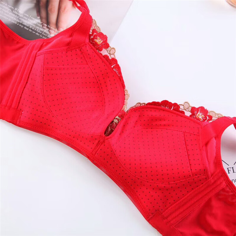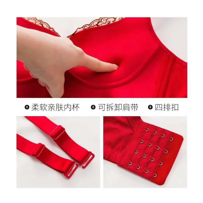 Tingmei (GRACEWELL) counter brand pure cotton underwear set for women without wires, push-up anti-sagging embroidery sexy bra, side breast bra, Phoenix red suit, underwear + underwear 85C 38C=