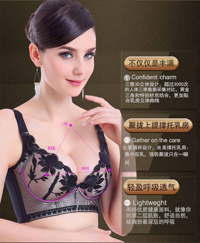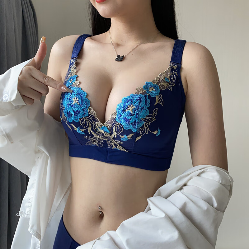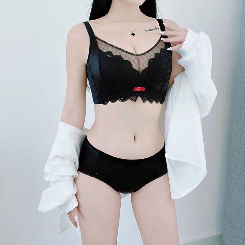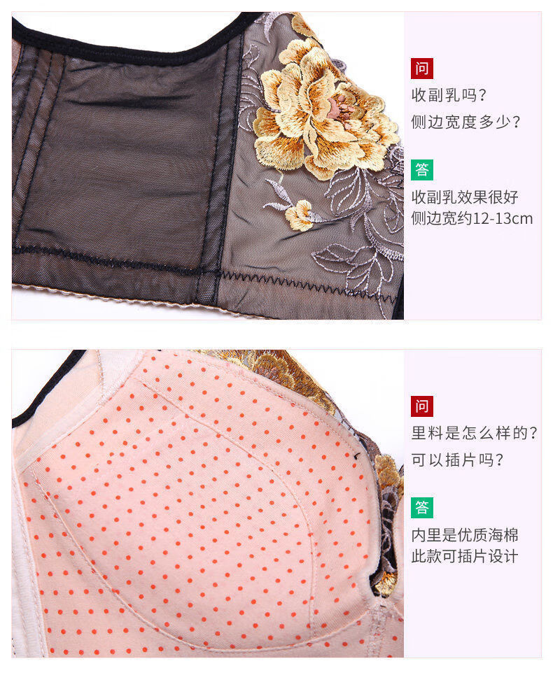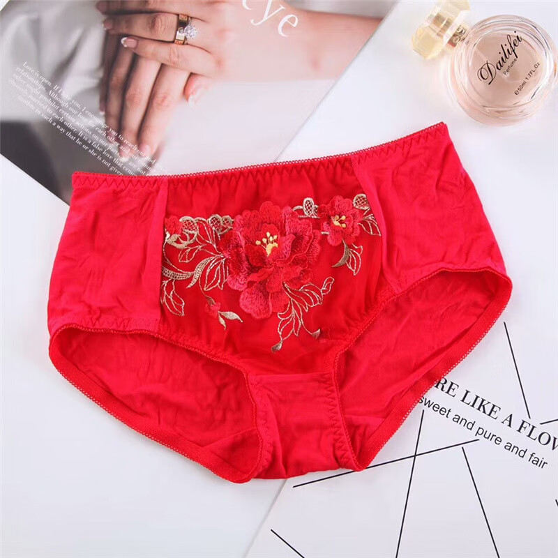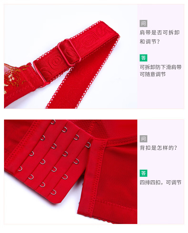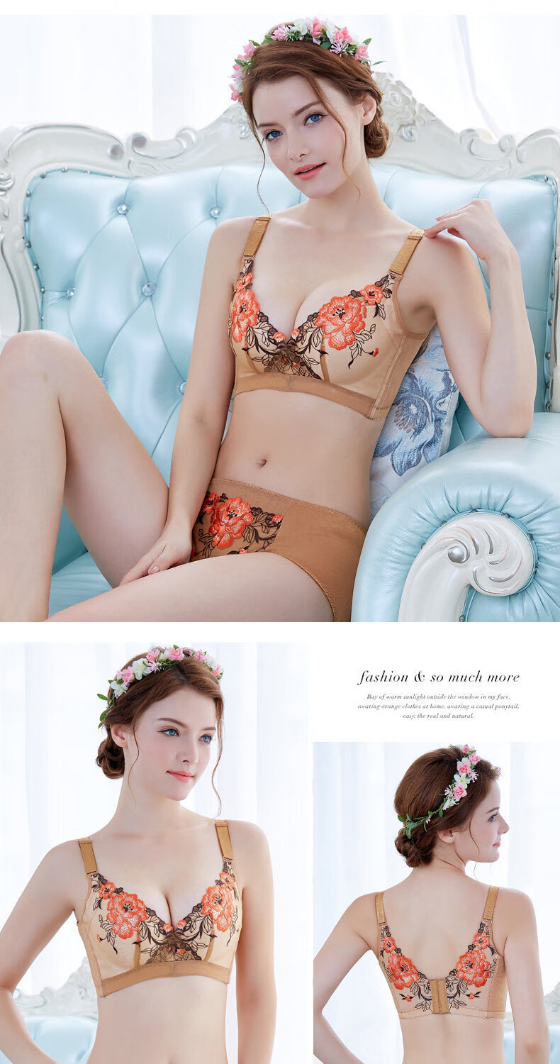 Tingmei (GRACEWELL) counter brand pure cotton underwear set for women without wires, push-up anti-sagging embroidery sexy bra, side breast bra, Phoenix red suit, underwear + underwear 85C 38C=