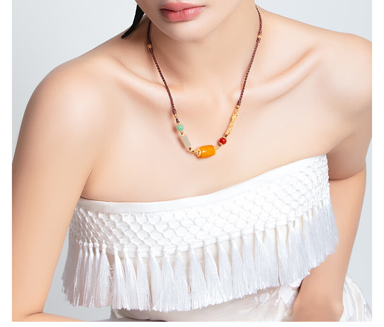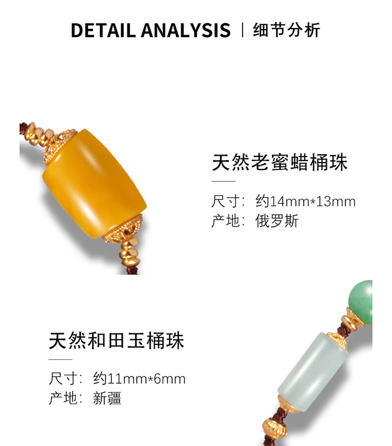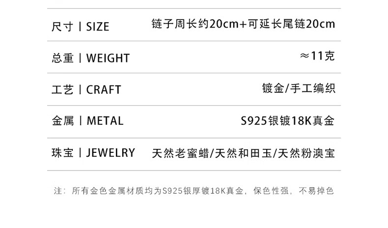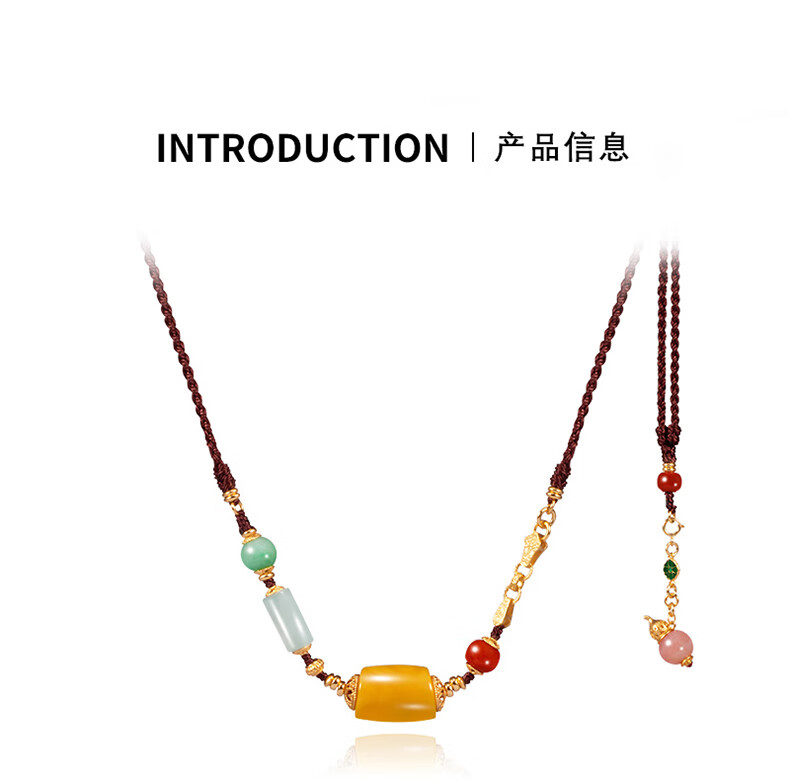 La Yun Feiyin natural authentic old beeswax pendant necklace women's S925 silver plated 18K gold hand-woven rope sweater chain chain circumference about 20cm + can extend the tail chain 20cm