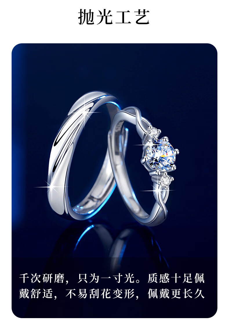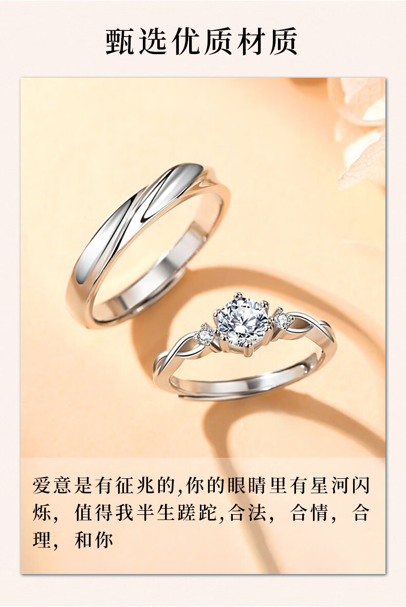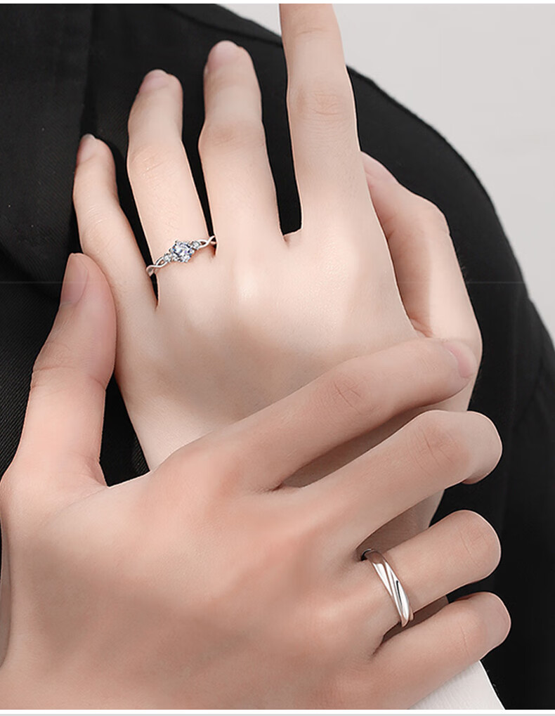 Lao Fengxiang 999 sterling silver, stay together for a lifetime couple ring, love token, birthday and Valentine's Day gift, 520 gift for girlfriend, stay together for a lifetime, couple ring