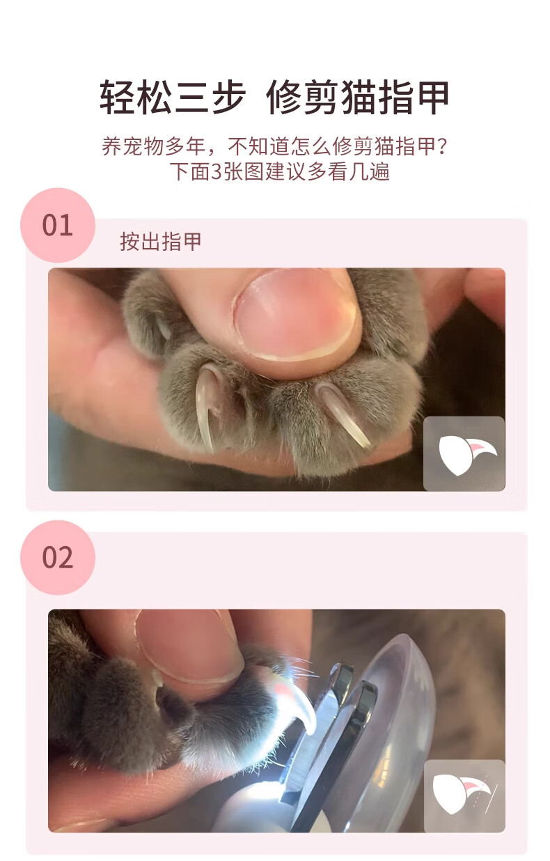 Cat Nail Clippers Gravity Nail Clippers Special Corgi Nail Clippers with LED Light and Free File Rabbit Pet Clippers Upgraded 2.0 Blades Sharp and Will Not Break Nails - Pink