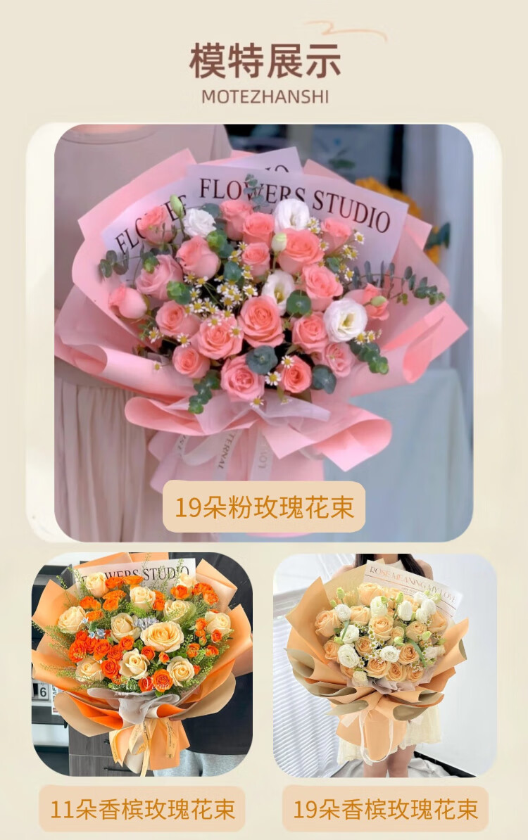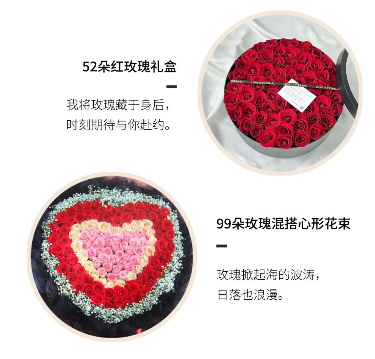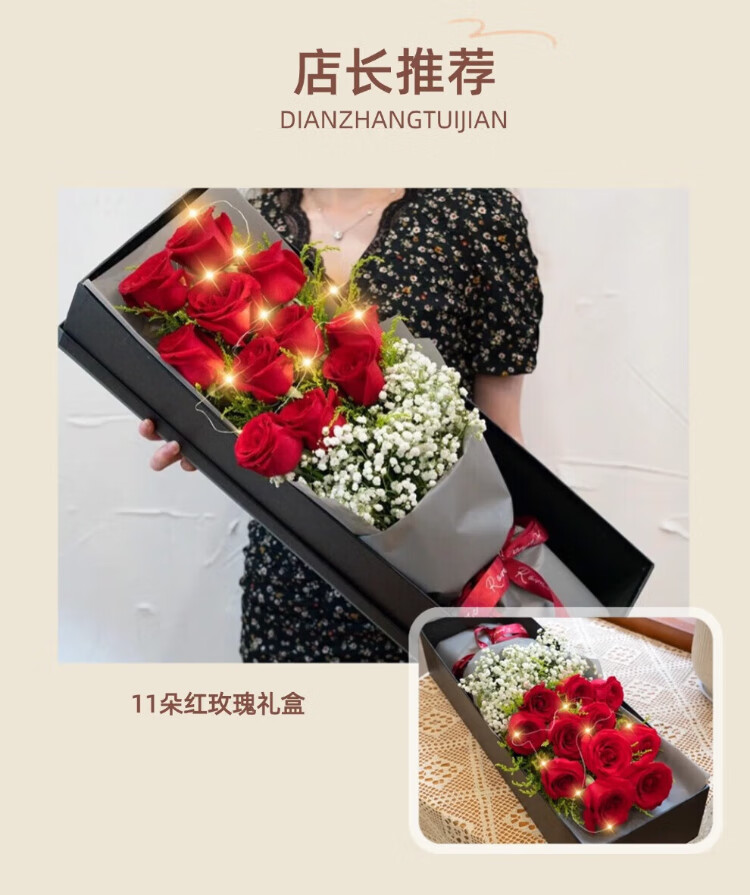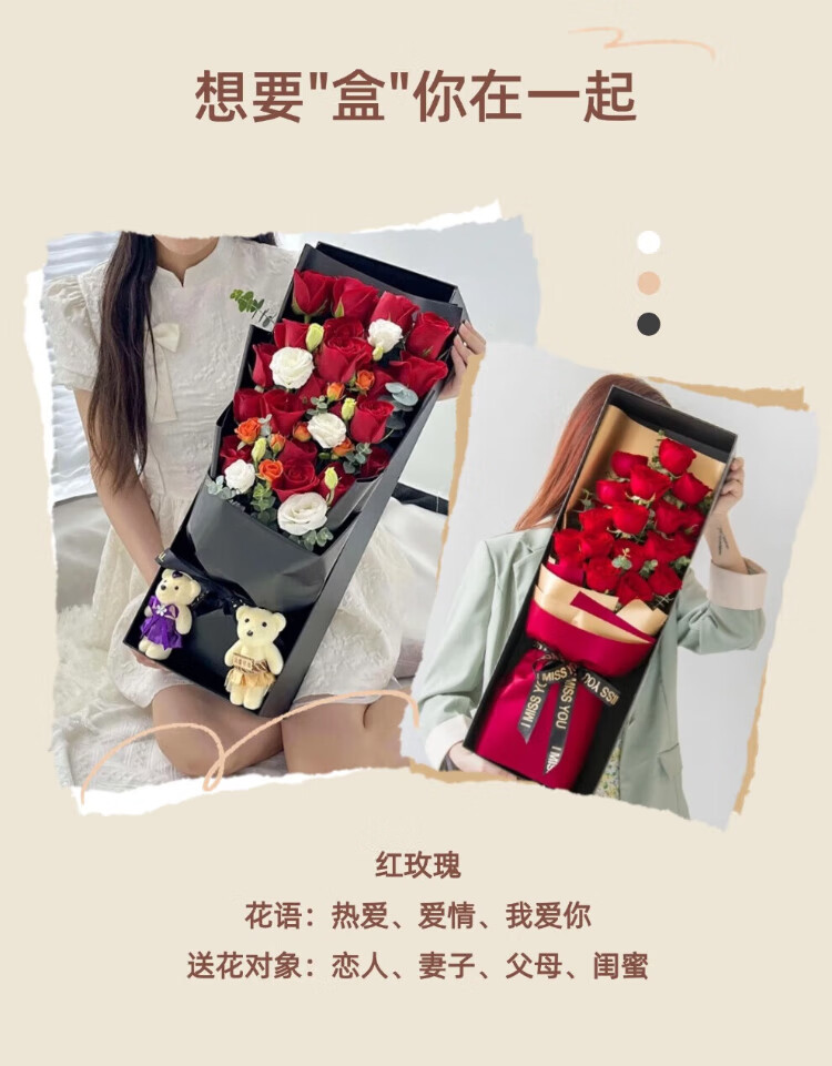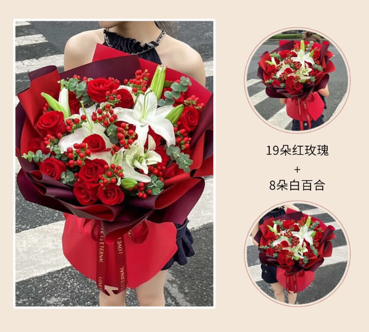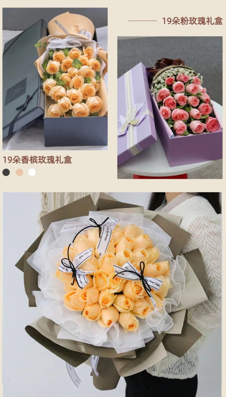 Laiji Valentine's Day Flower Express Rose Gift Box Bouquet Confession Gift for Girlfriend Birthday Gift Nationwide Citywide Delivery 19 Roses Mix and Match Gift Box