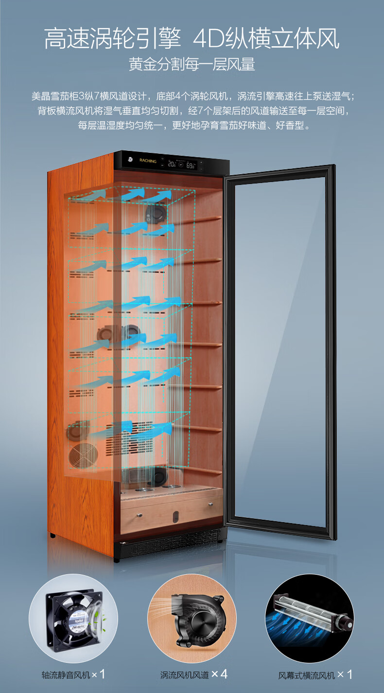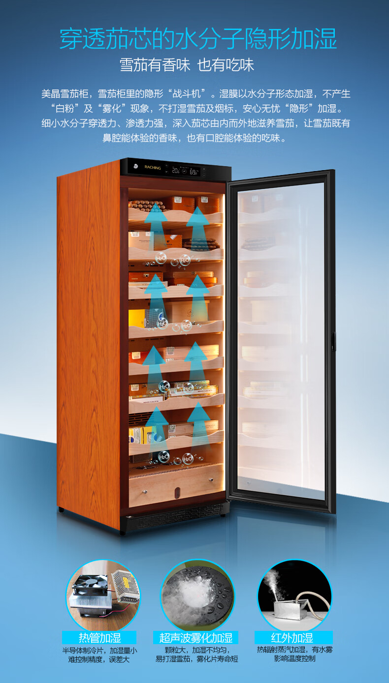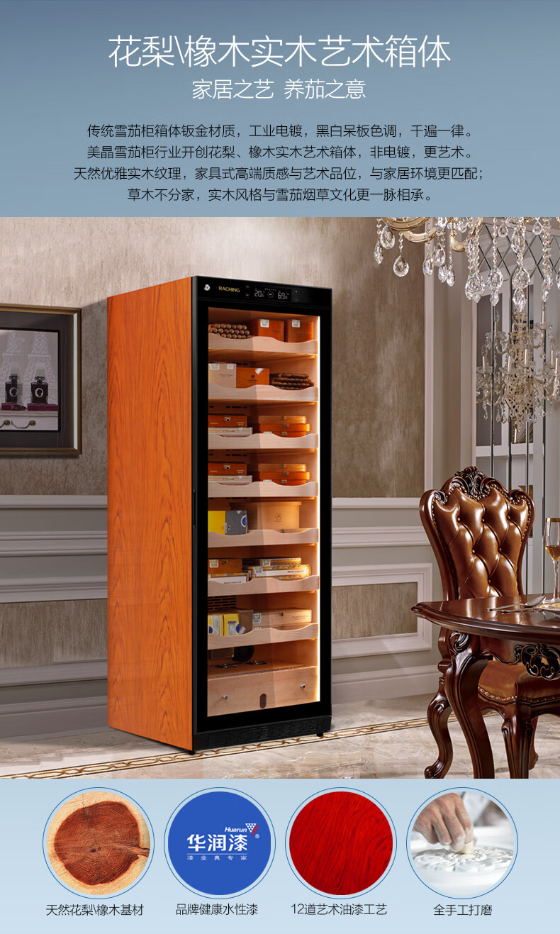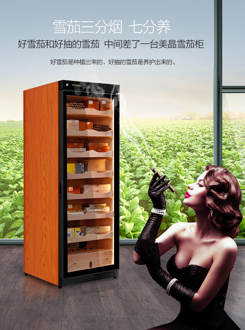 Meijing solid wood constant temperature and humidity cigar cabinet C150A household C230A cigar humidifier C380A starry sky black Spanish cedar wood shelf