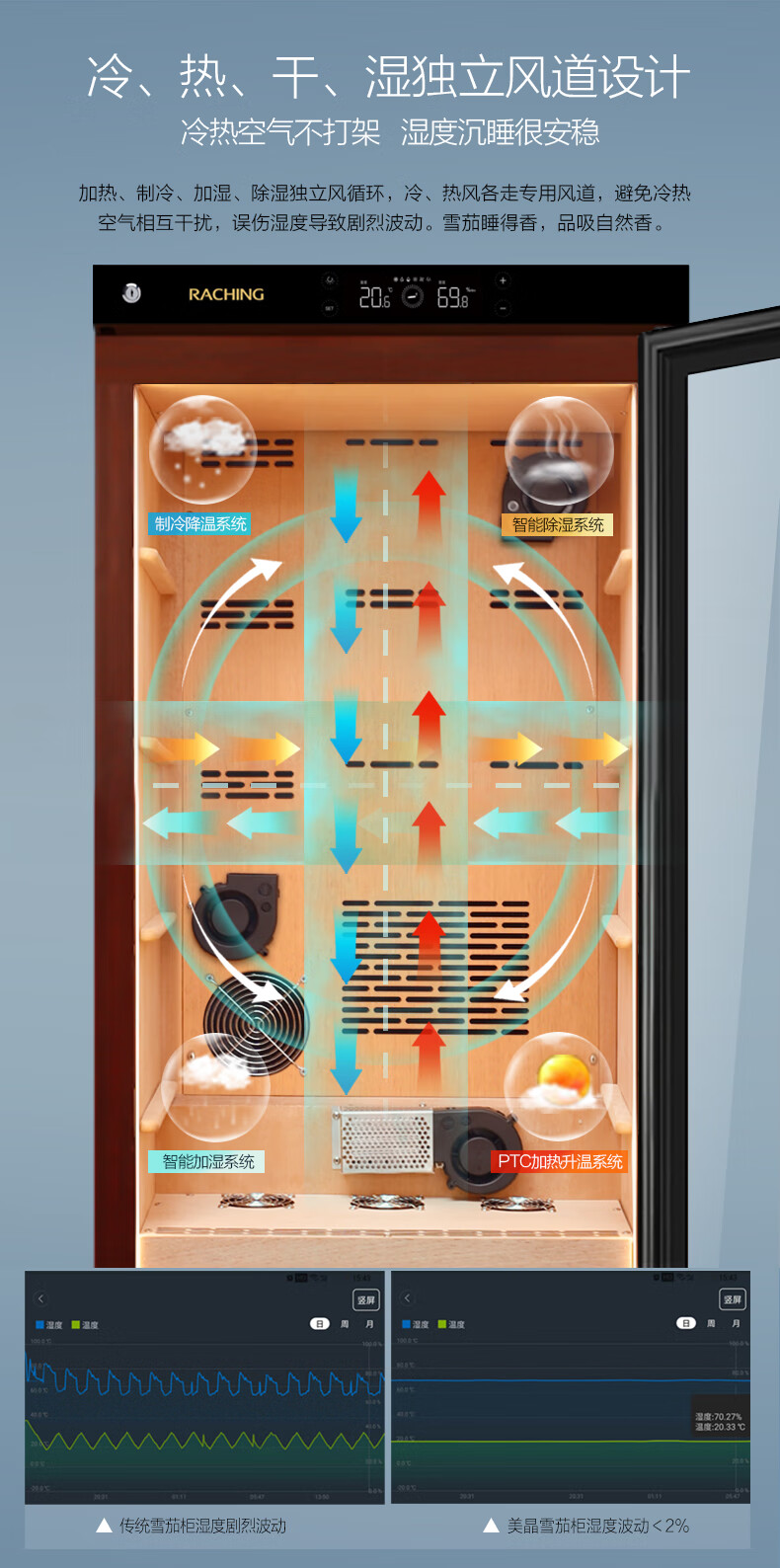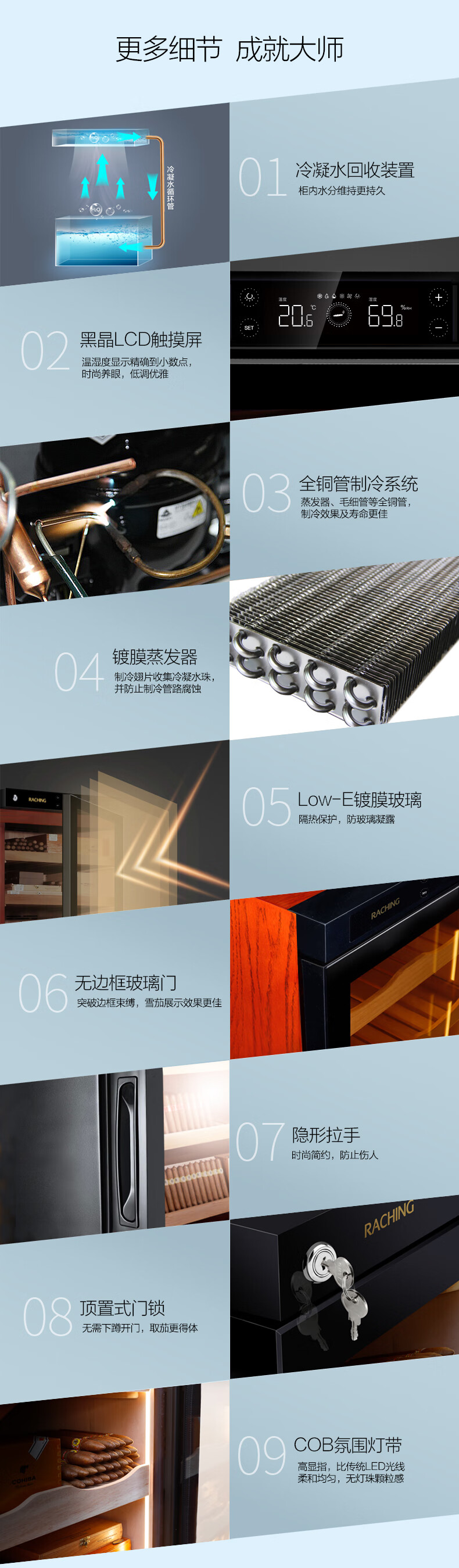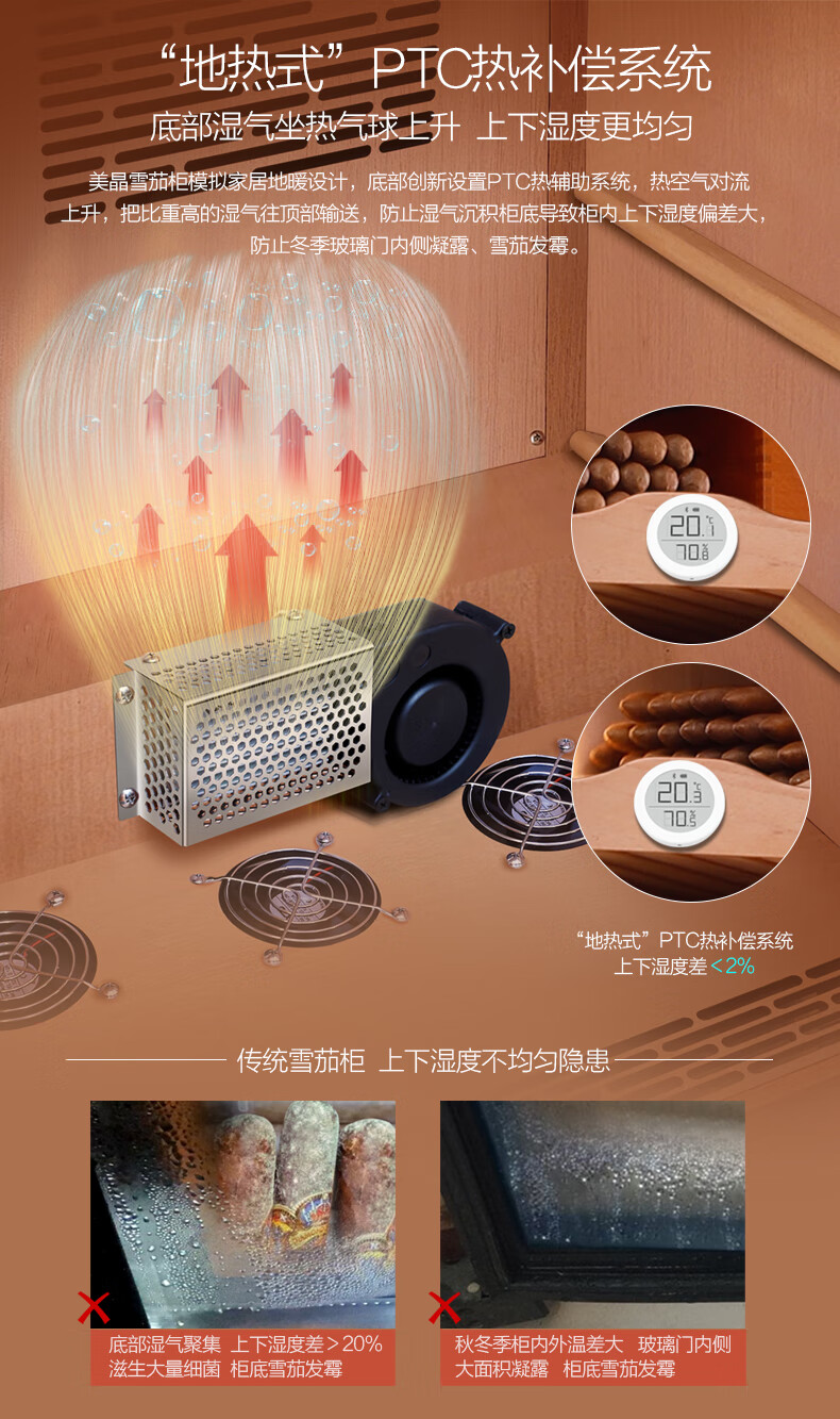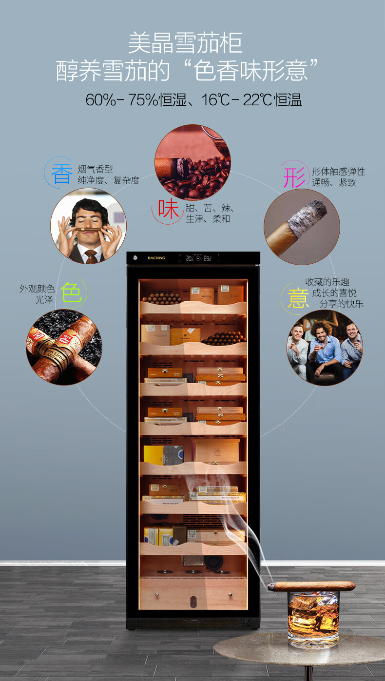Meijing solid wood constant temperature and humidity cigar cabinet C150A household C230A cigar humidifier C380A starry sky black Spanish cedar wood shelf