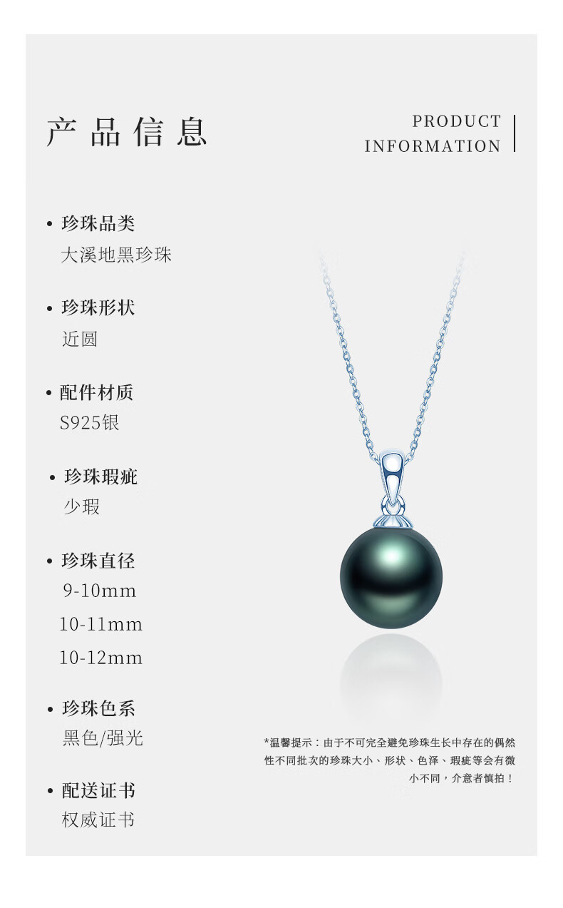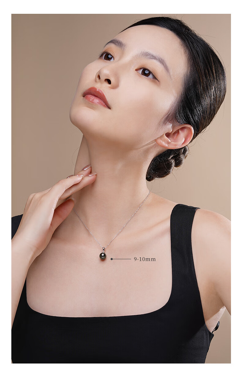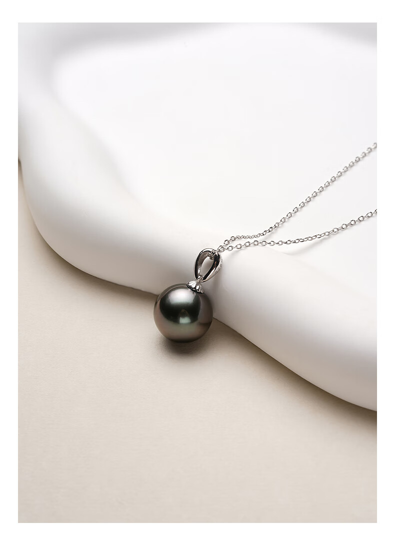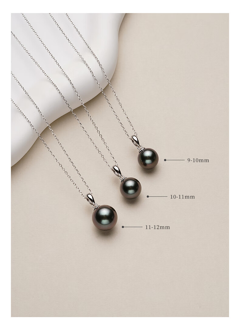 Tahitian Black Pearl Pendant Classic High-Light Seawater Pearl Necklace for Girlfriend or Wife B Grade 9-10mm 925 Silver Buckle