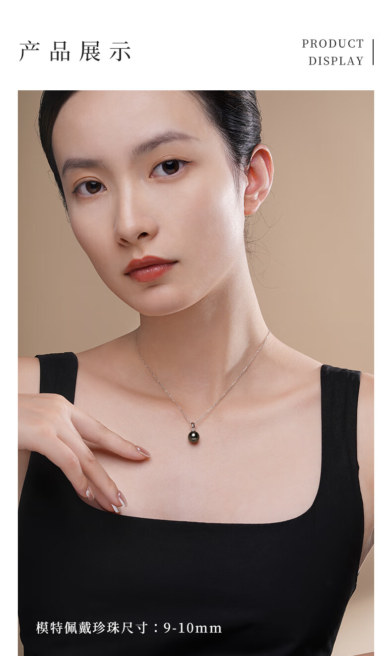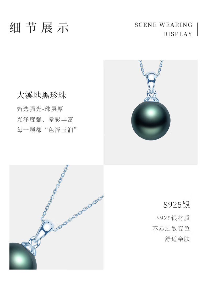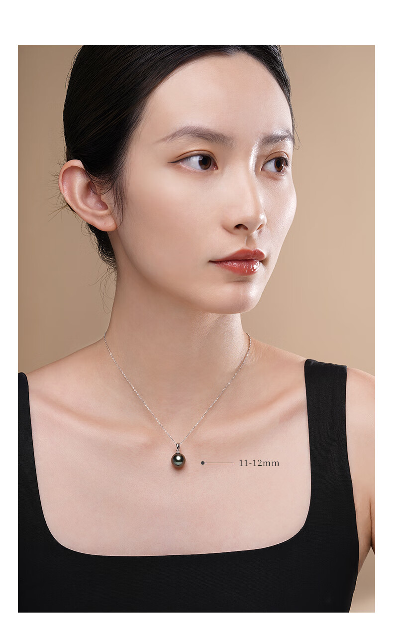Tahitian Black Pearl Pendant Classic High-Light Seawater Pearl Necklace for Girlfriend or Wife B Grade 9-10mm 925 Silver Buckle