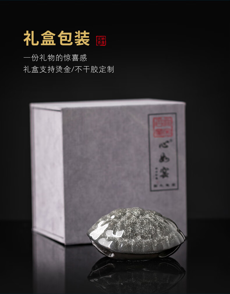 Miaolian Tianxiang Master Lin Xinru Ru Kiln turtle shell tea pet ornaments can be opened to play with tea and give gifts Recommended tea ceremony accessories S43-029A Black Ice Flower-Fu Jia Yifang gift box. Certificate included