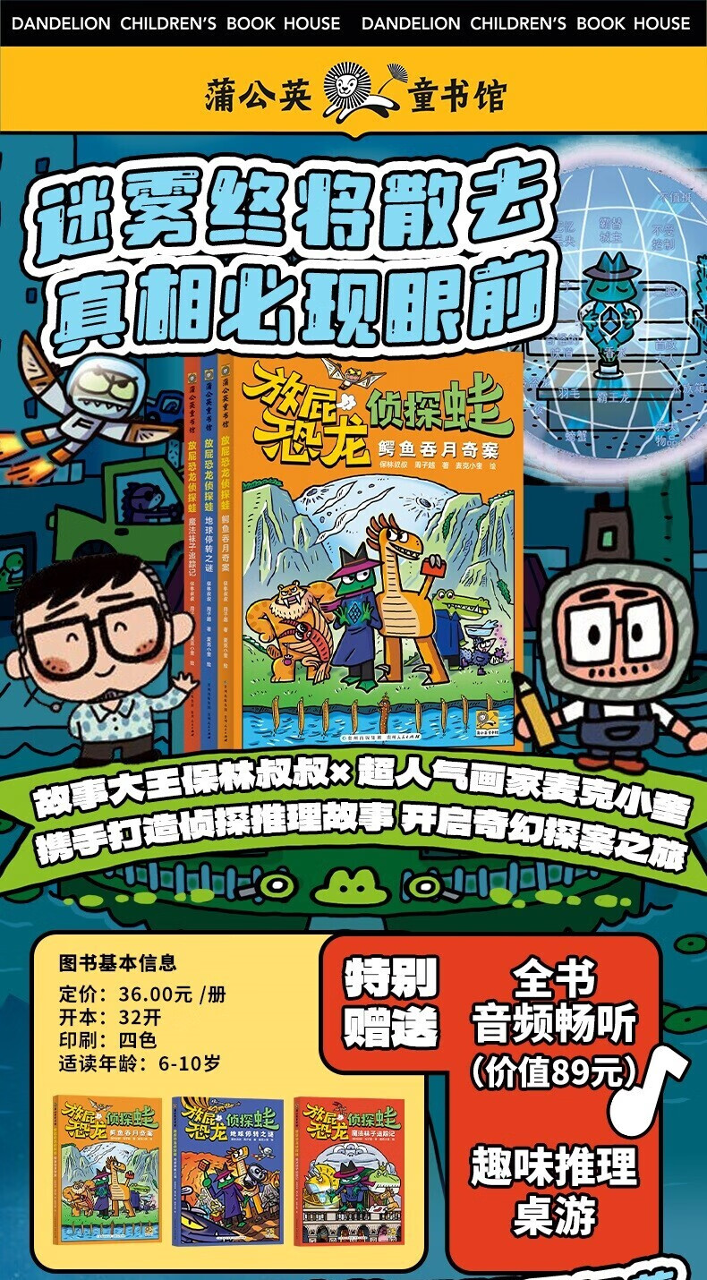 Xinhua Wenxuan Genuine Farting Dinosaur Detective Frog, 3 volumes, written by Uncle Paulin, Zhou Ziyue, illustrated by Mike Xiaokui, Intellectual Development, Guizhou Humanities Publishing House, Xinhua Wenxuan Flagship Store Genuine Books, Books