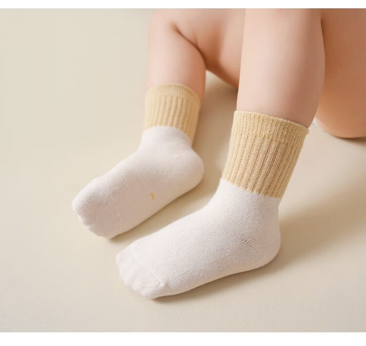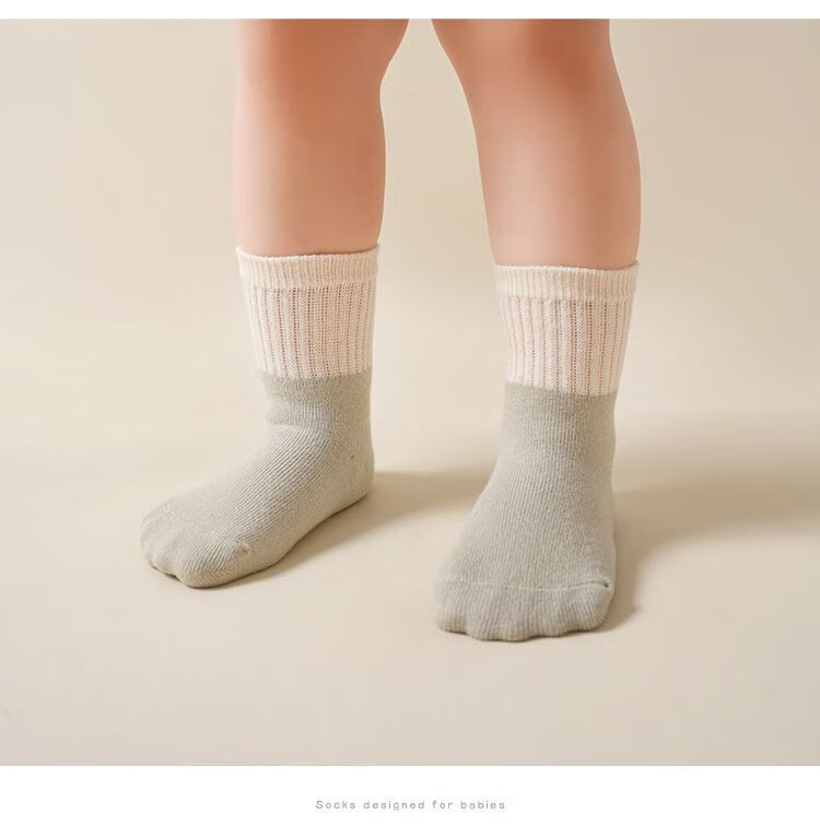 Baby socks for spring and autumn, thin, solid color sweat-absorbent breathable cotton socks for men and women, infants and toddlers, newborn baby mid-length socks, 1 pair, random colors, 1-3 years old