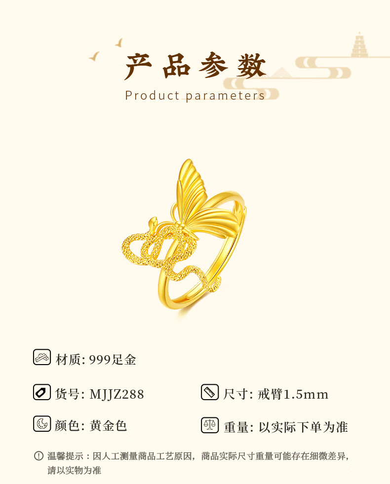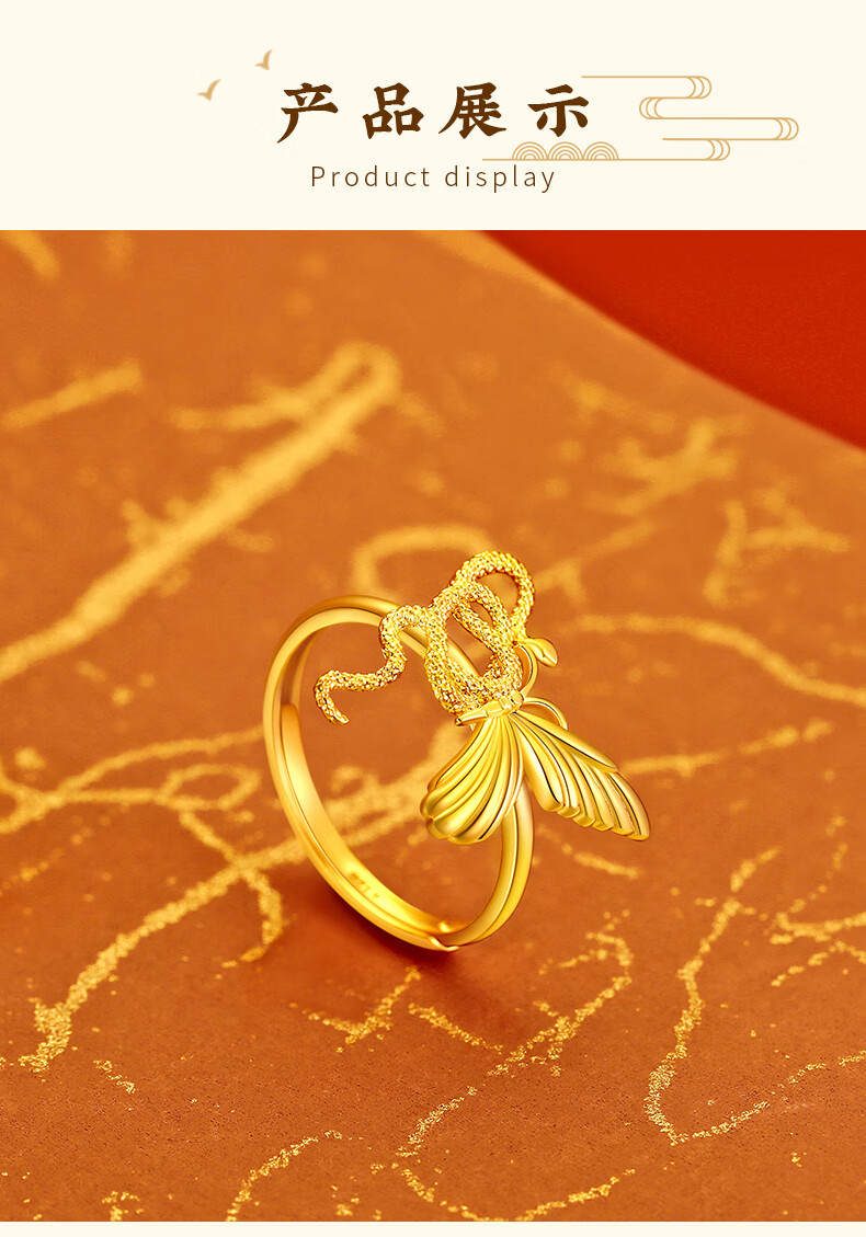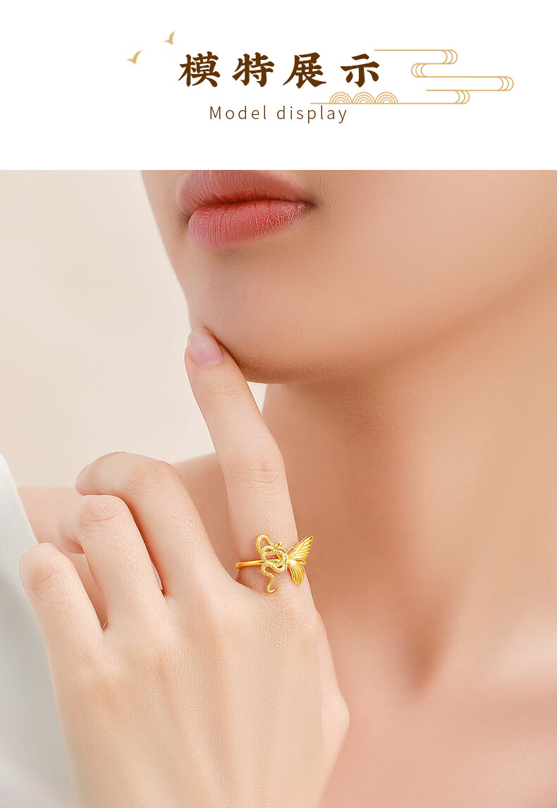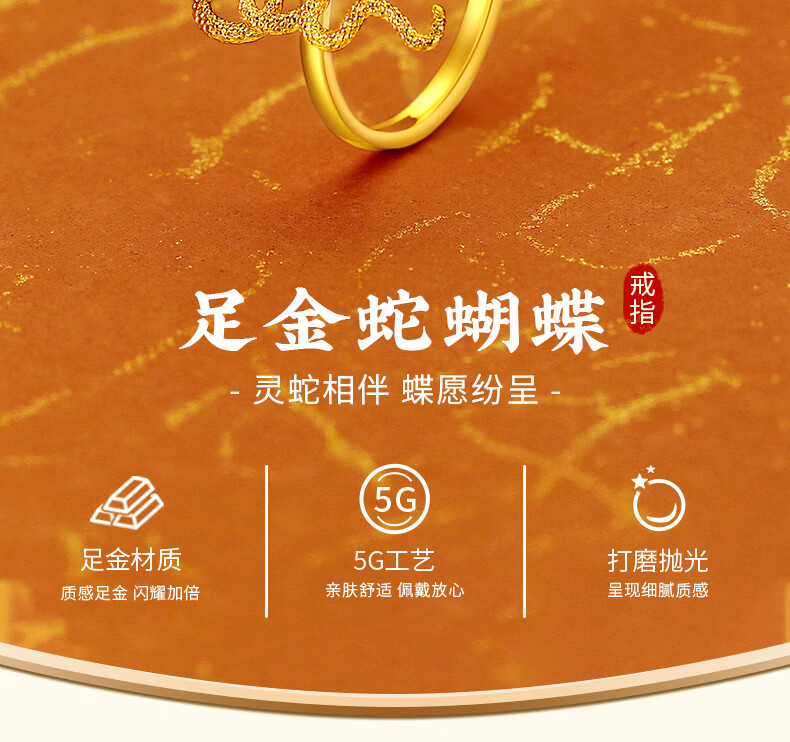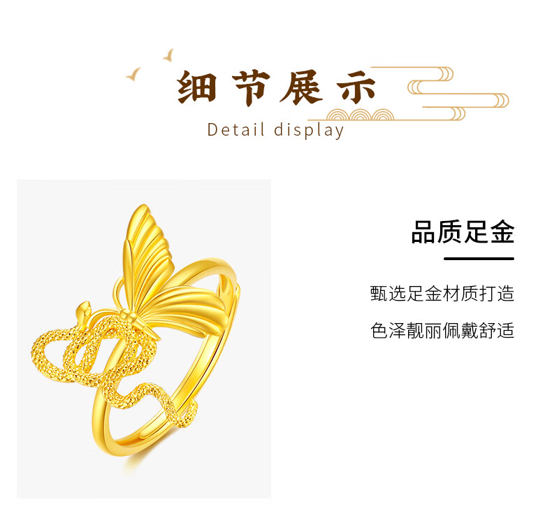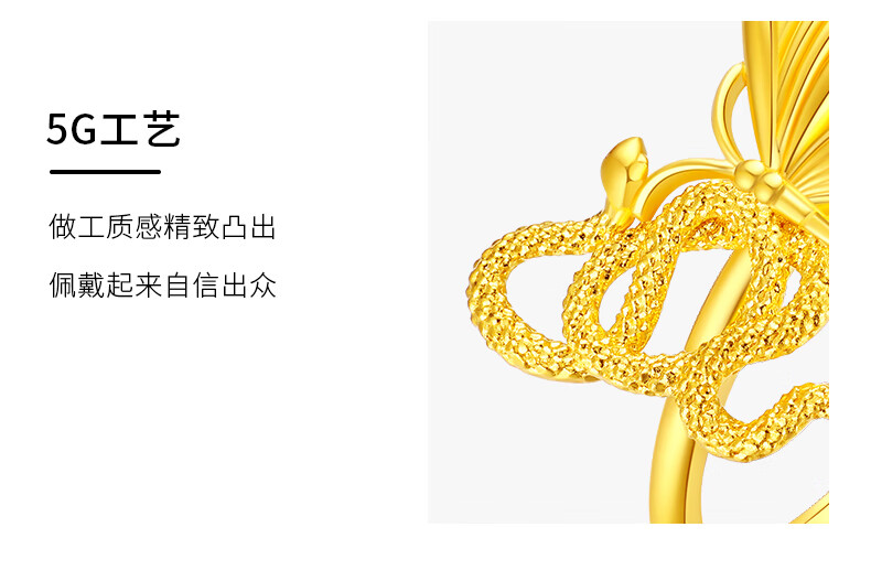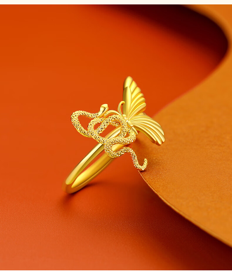 Vana Snake Butterfly Gold Ring Women's 999 Pure Gold Ring Birthday Gift for Girlfriend and Wife Gold Weight About 3.2g Pure Gold Ring