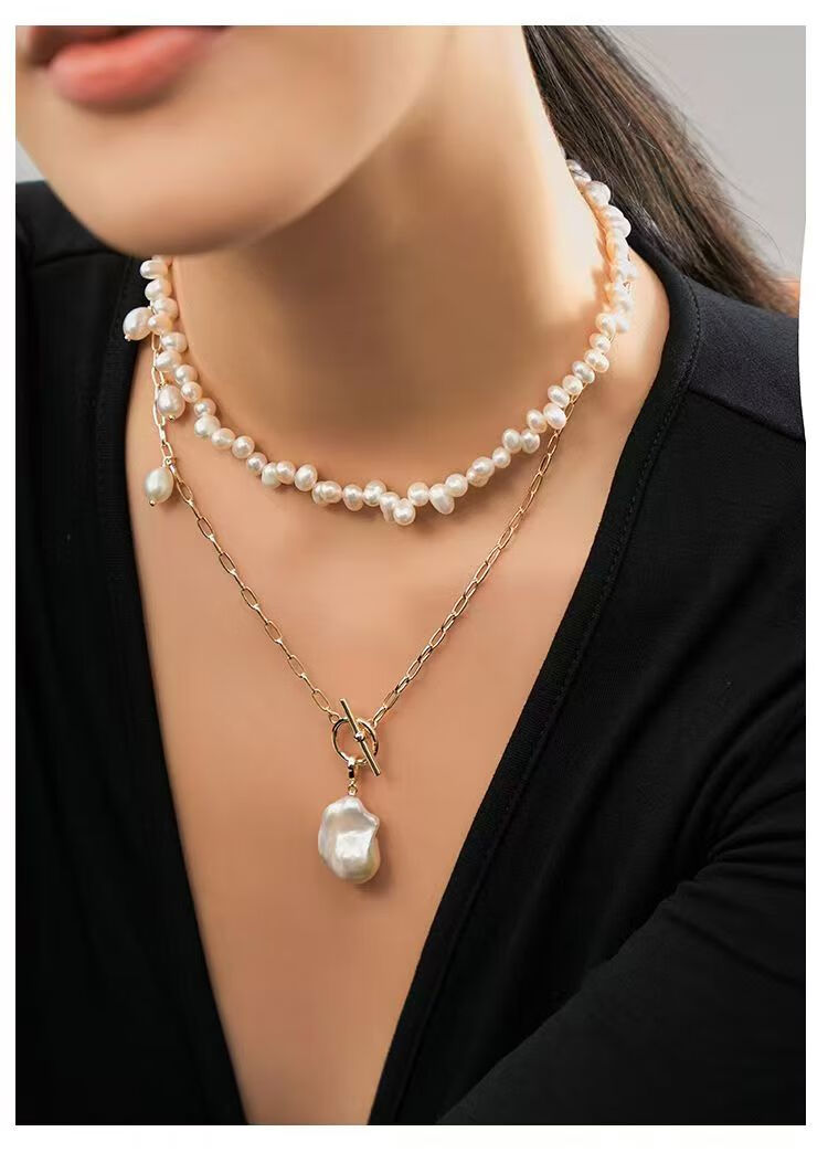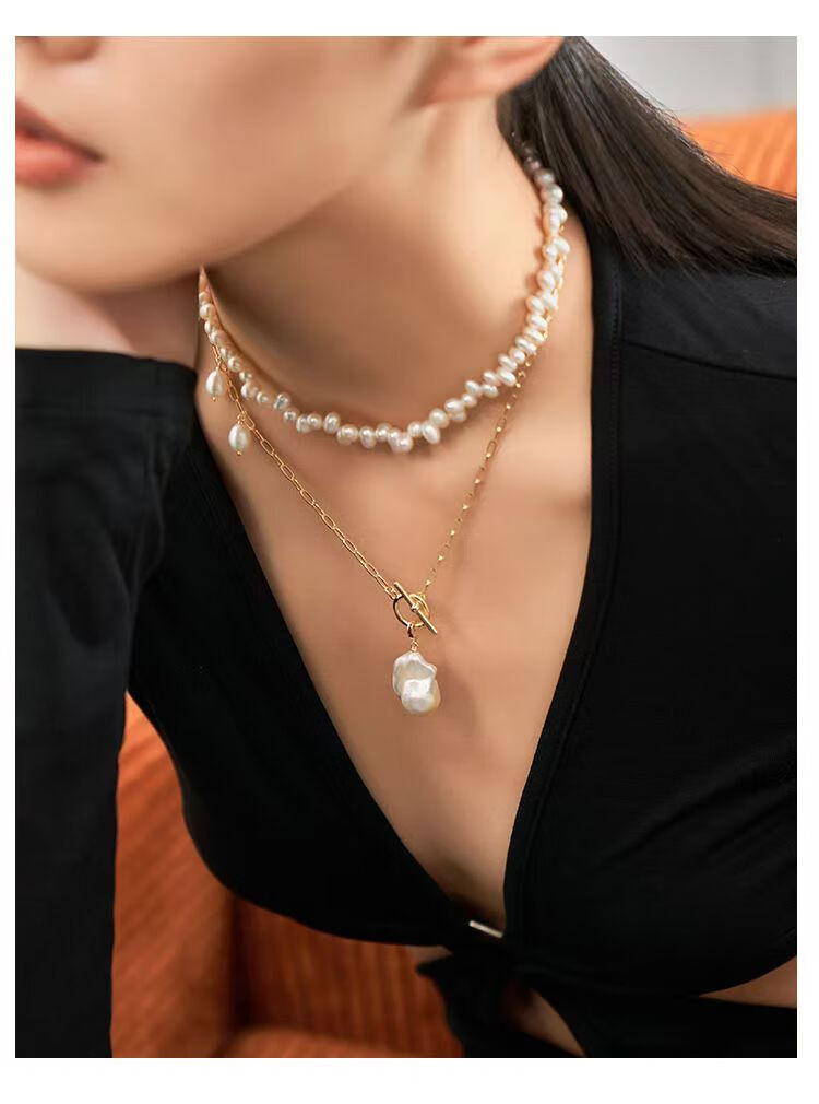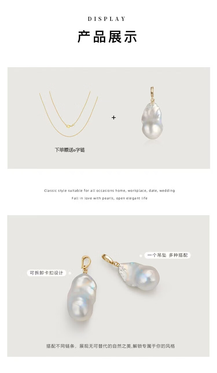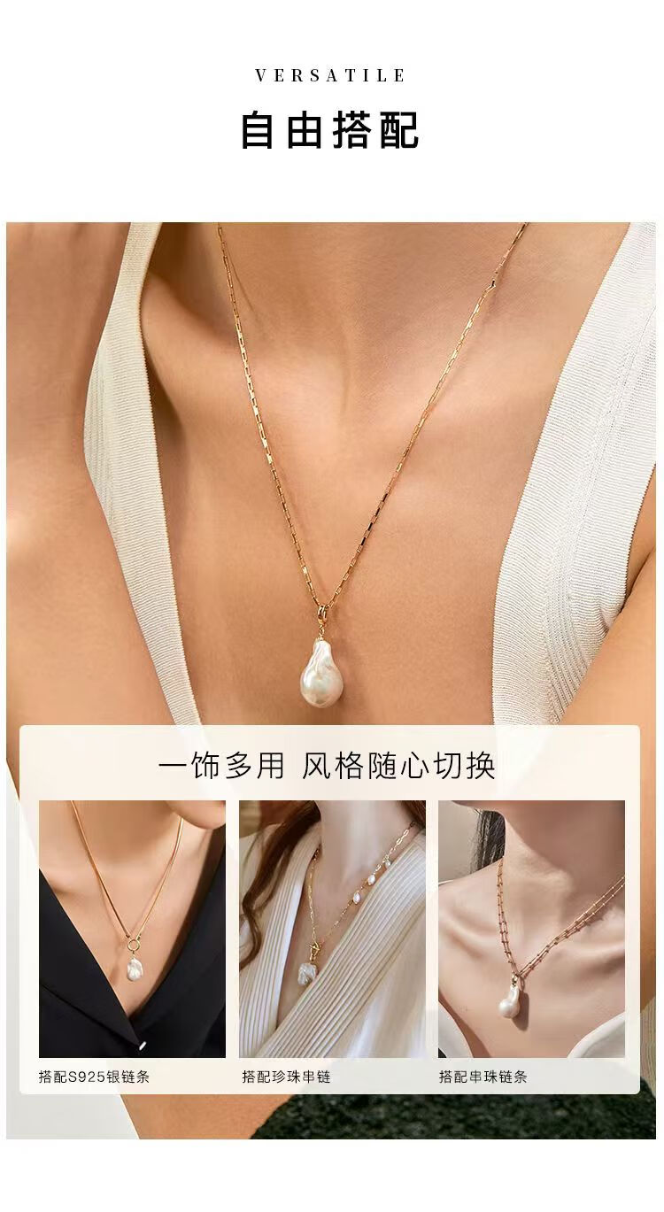 Zhuji freshwater pearl Baroque pendant special-shaped necklace fashionable temperament DIY detachable clavicle chain holiday gift Baroque pearl gold universal buckle pendant free S925 silver gold O-shaped chain (45CM)