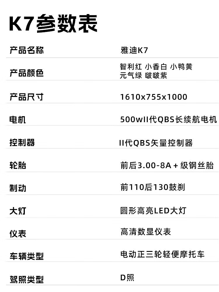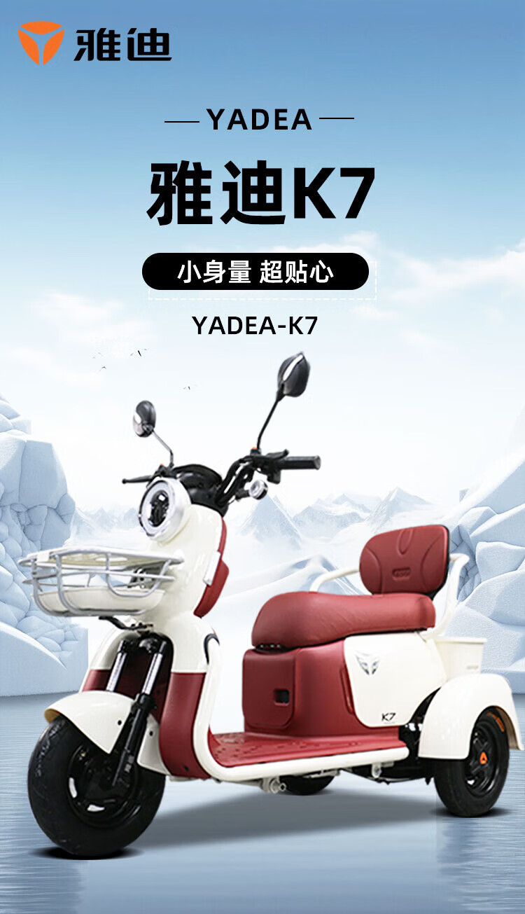 Yadi official 2025 new K7 electric tricycle for home small ladies to pick up children and the elderly mobility battery car K7 Chile red + 20A graphene lead-acid package installation