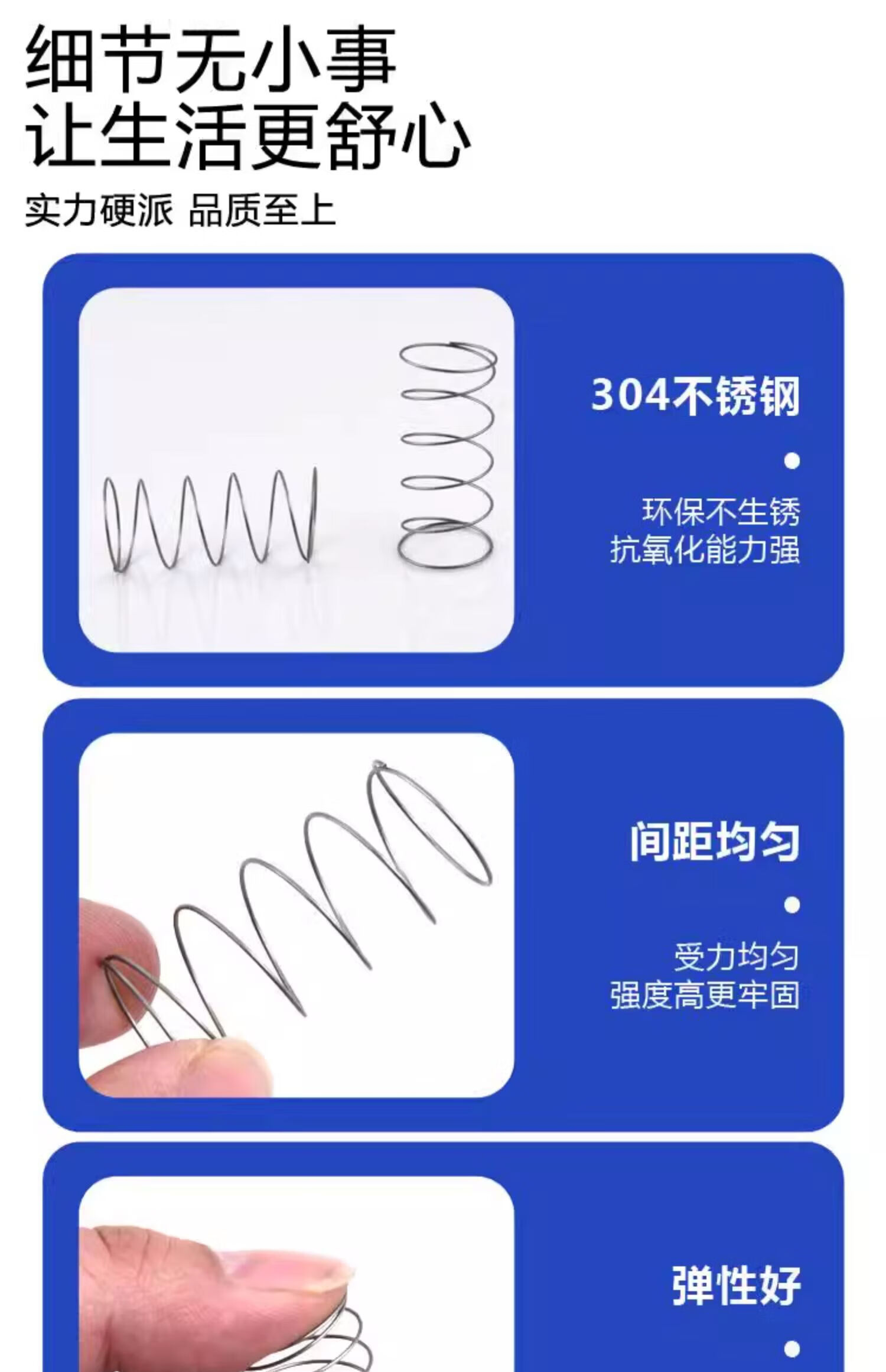 Shantou Lincun toilet spring 304 stainless steel water tank return small compression spring flush cover button drain valve applicable spring 4 pack toilet cover button applicable spring